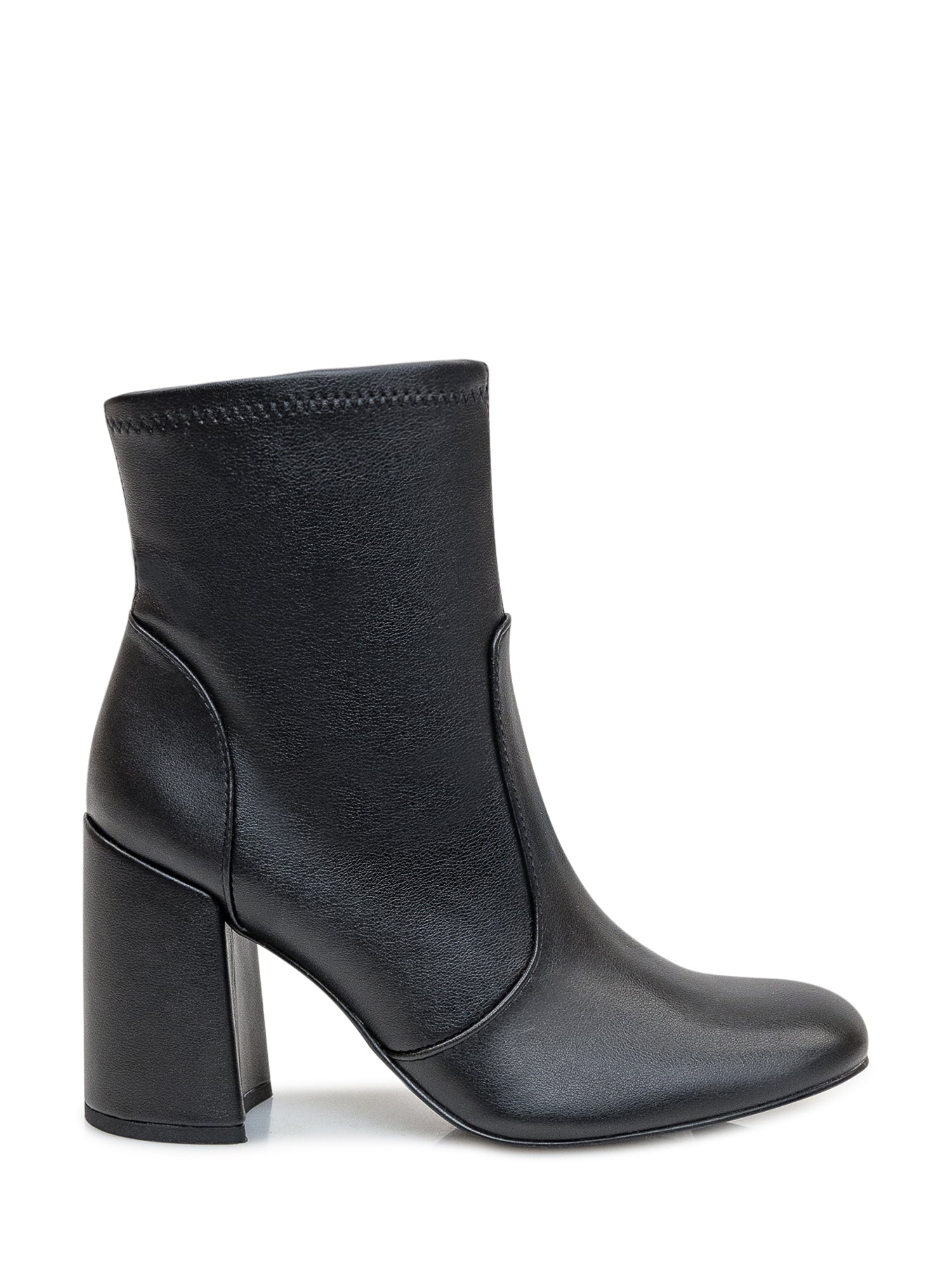 Black eco-leather boot. Zip closure on the side. Square toe. SM logo on the sole.