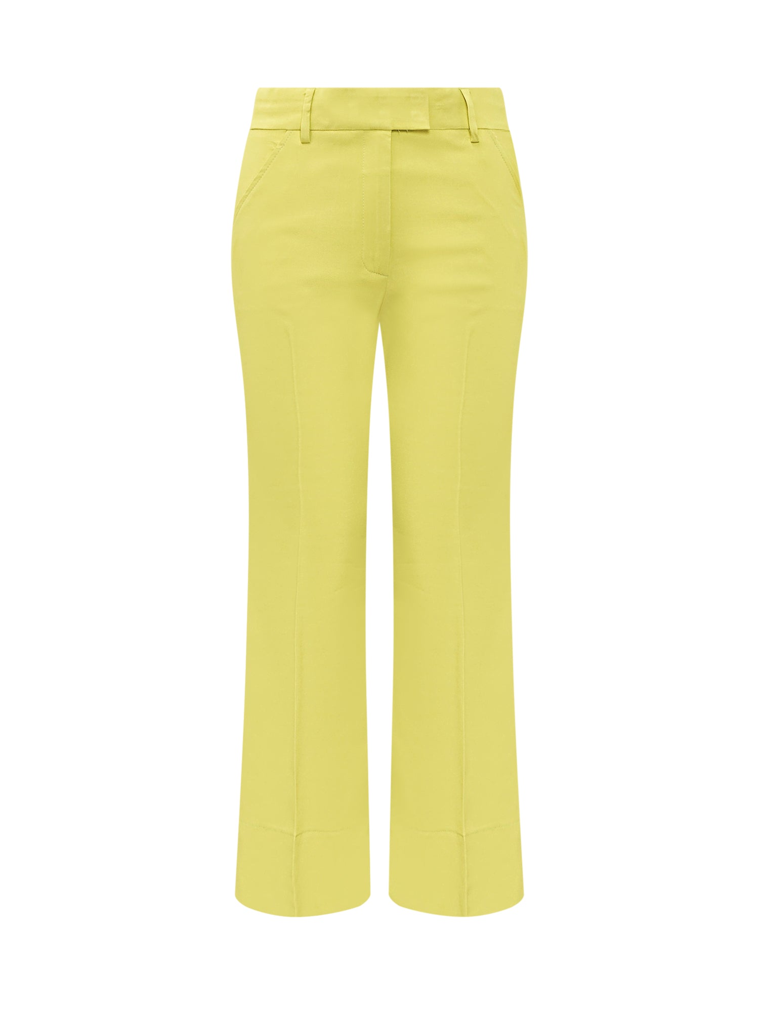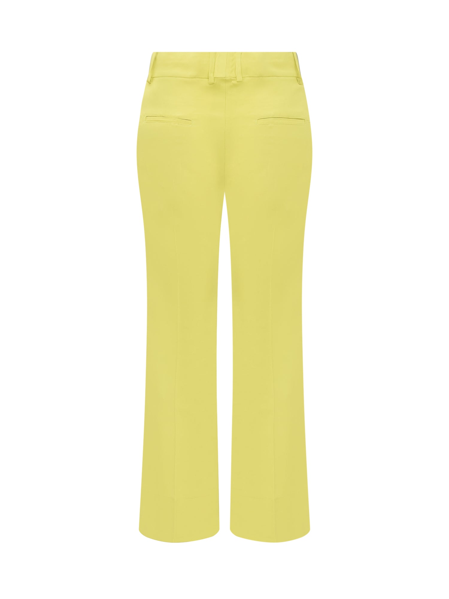 Long pants. Closure with buttons, hook and zip. Two side pockets and two on the back. Belt loops.
