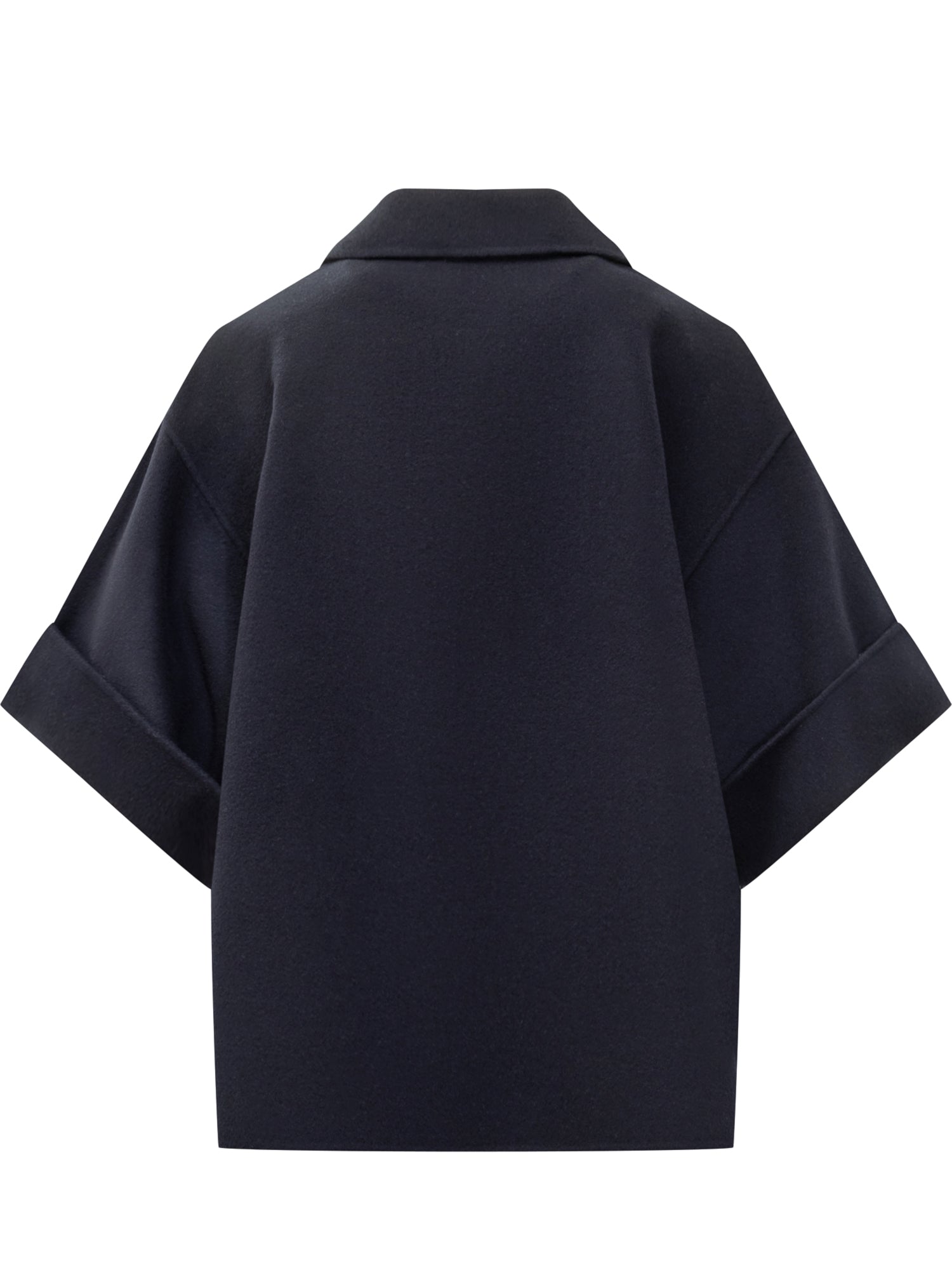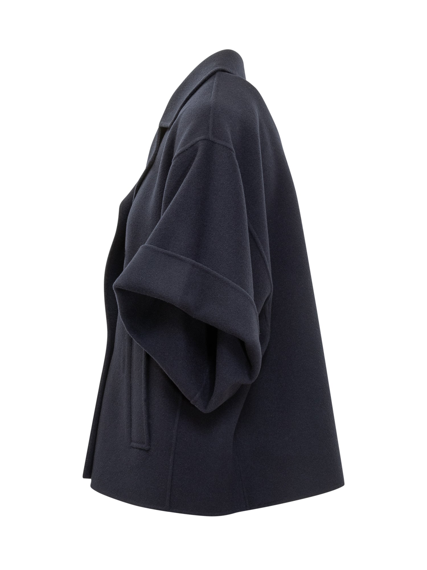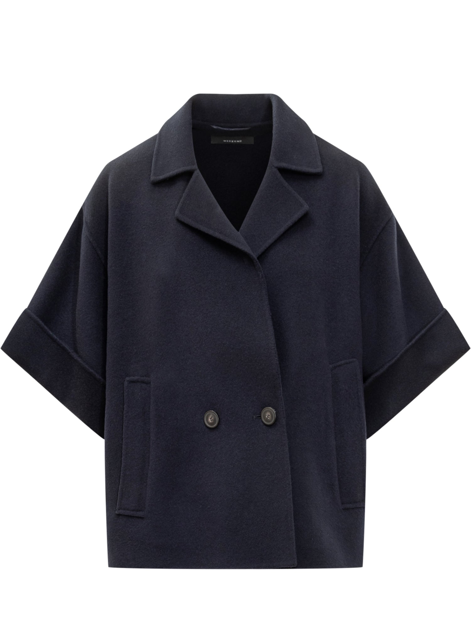 Weekend Max Mara short double-breasted wool coat in navy blue with short sleeves and patch pockets.