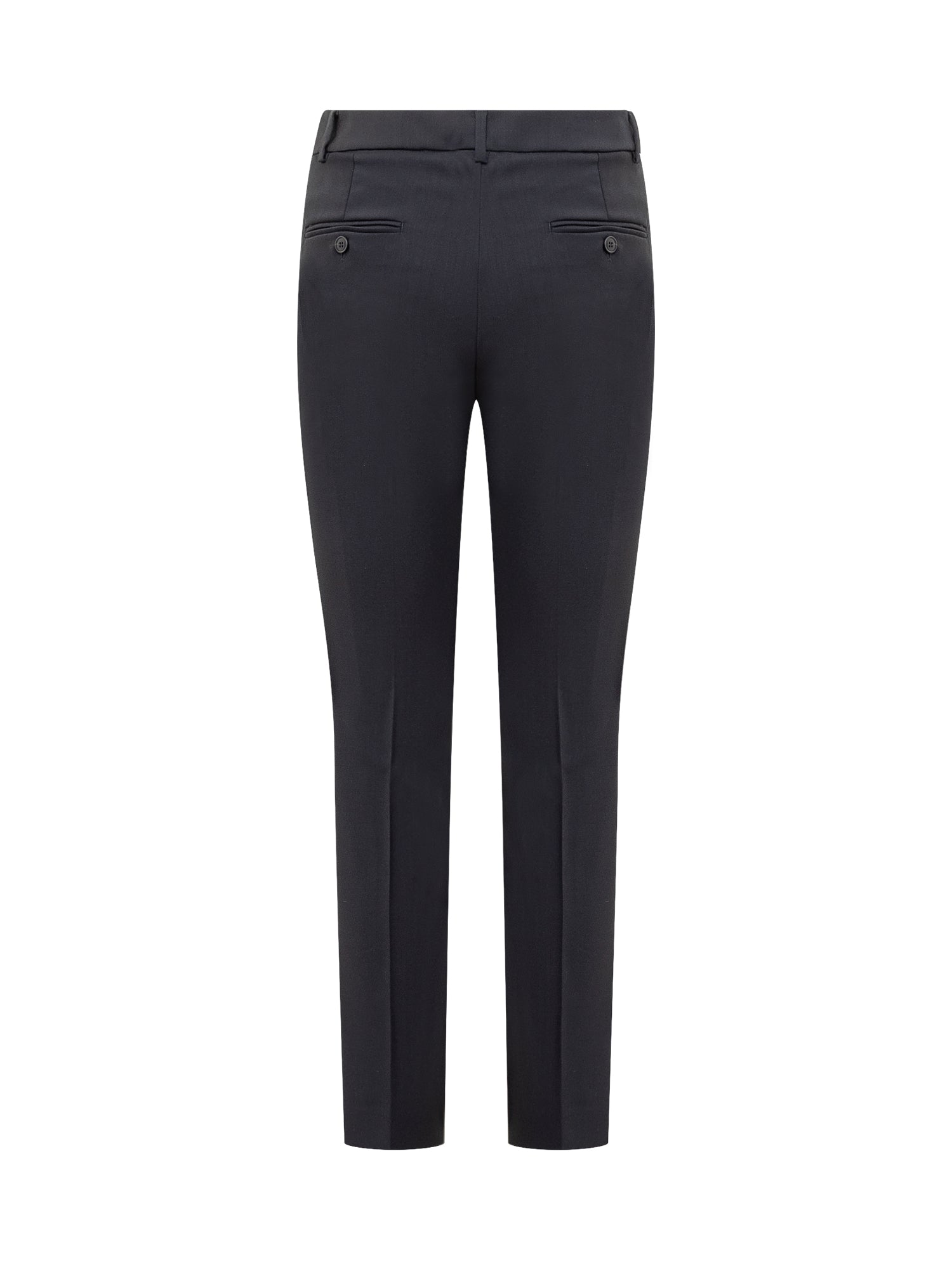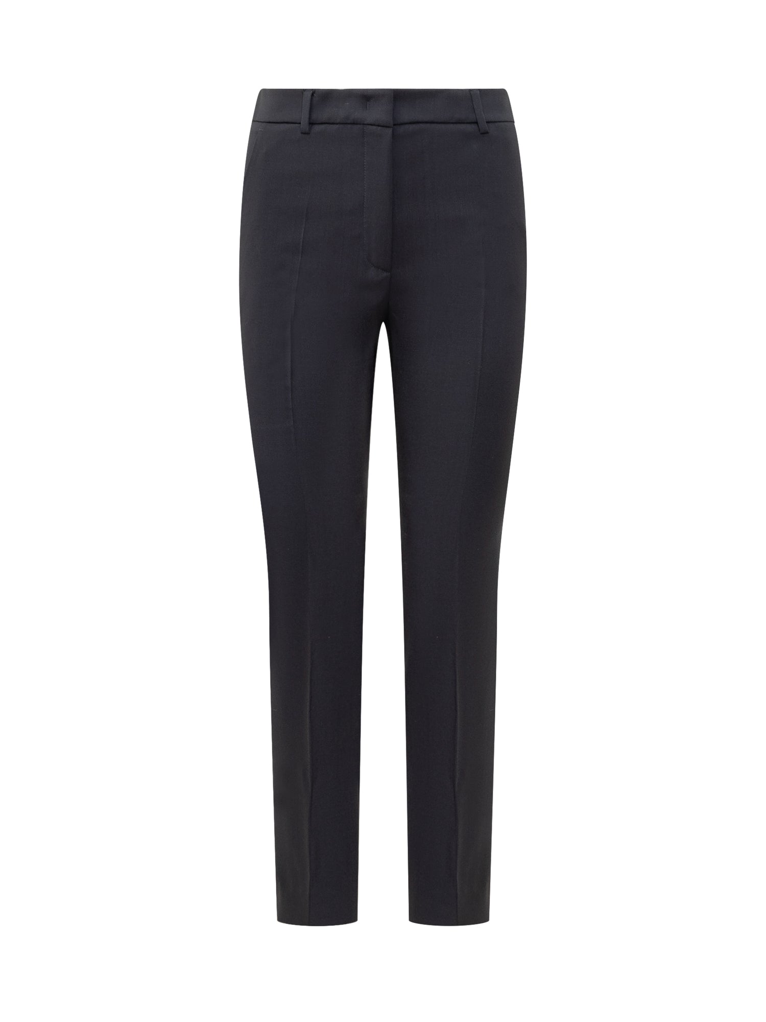 Cigarette pants. Button, hook and zipper closure. Belt loop. Four pockets.