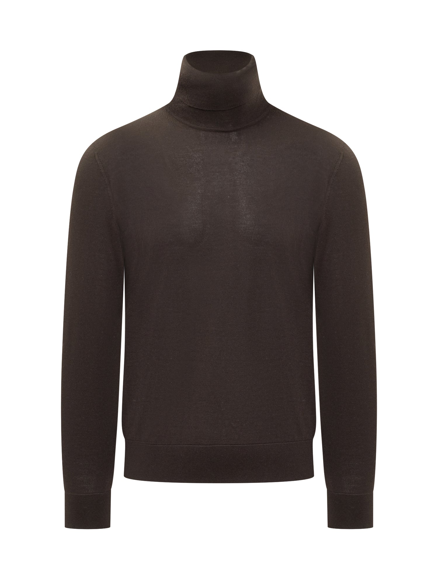 Zegna brown lightweight wool turtleneck with a refined minimal design.