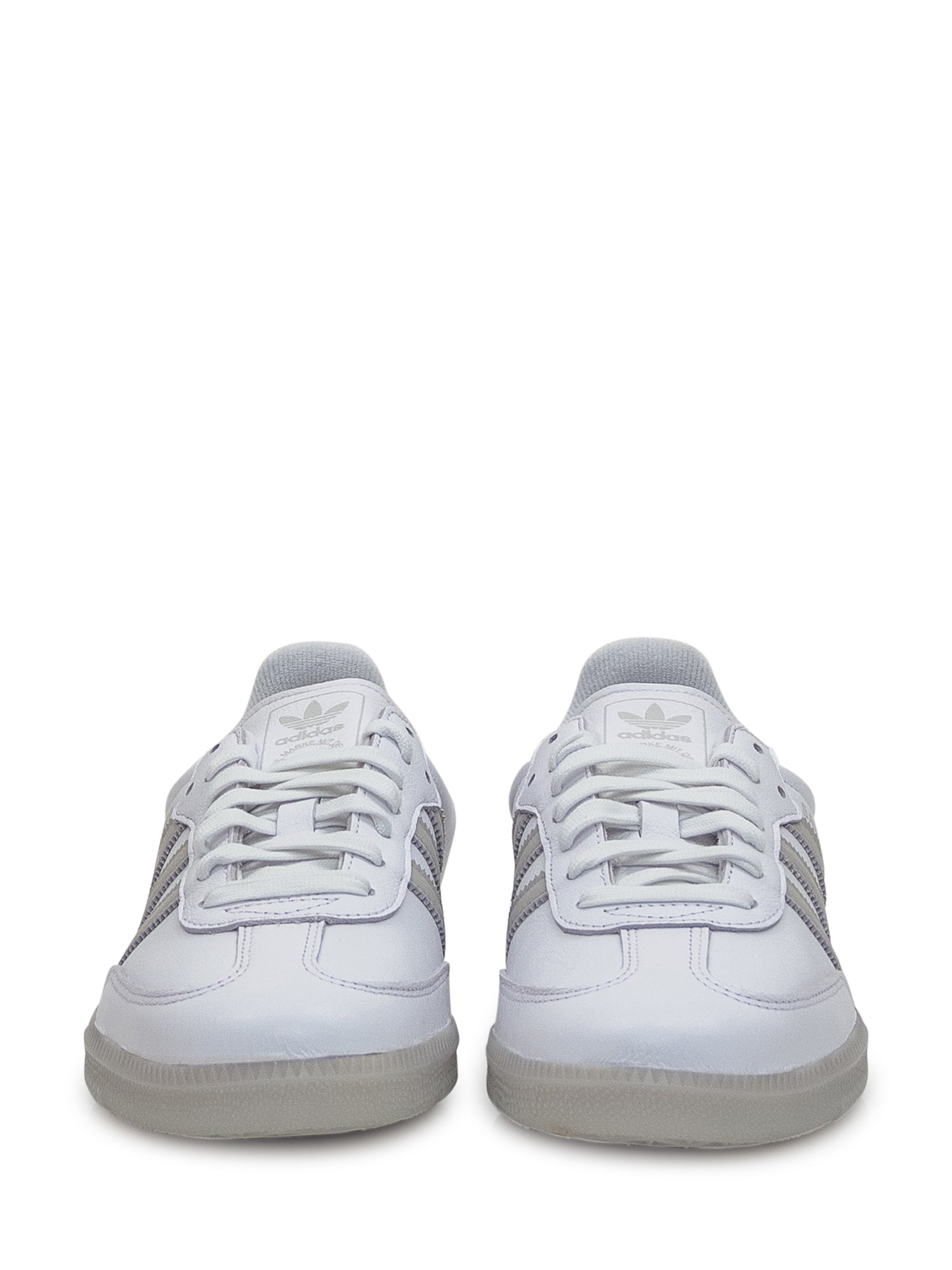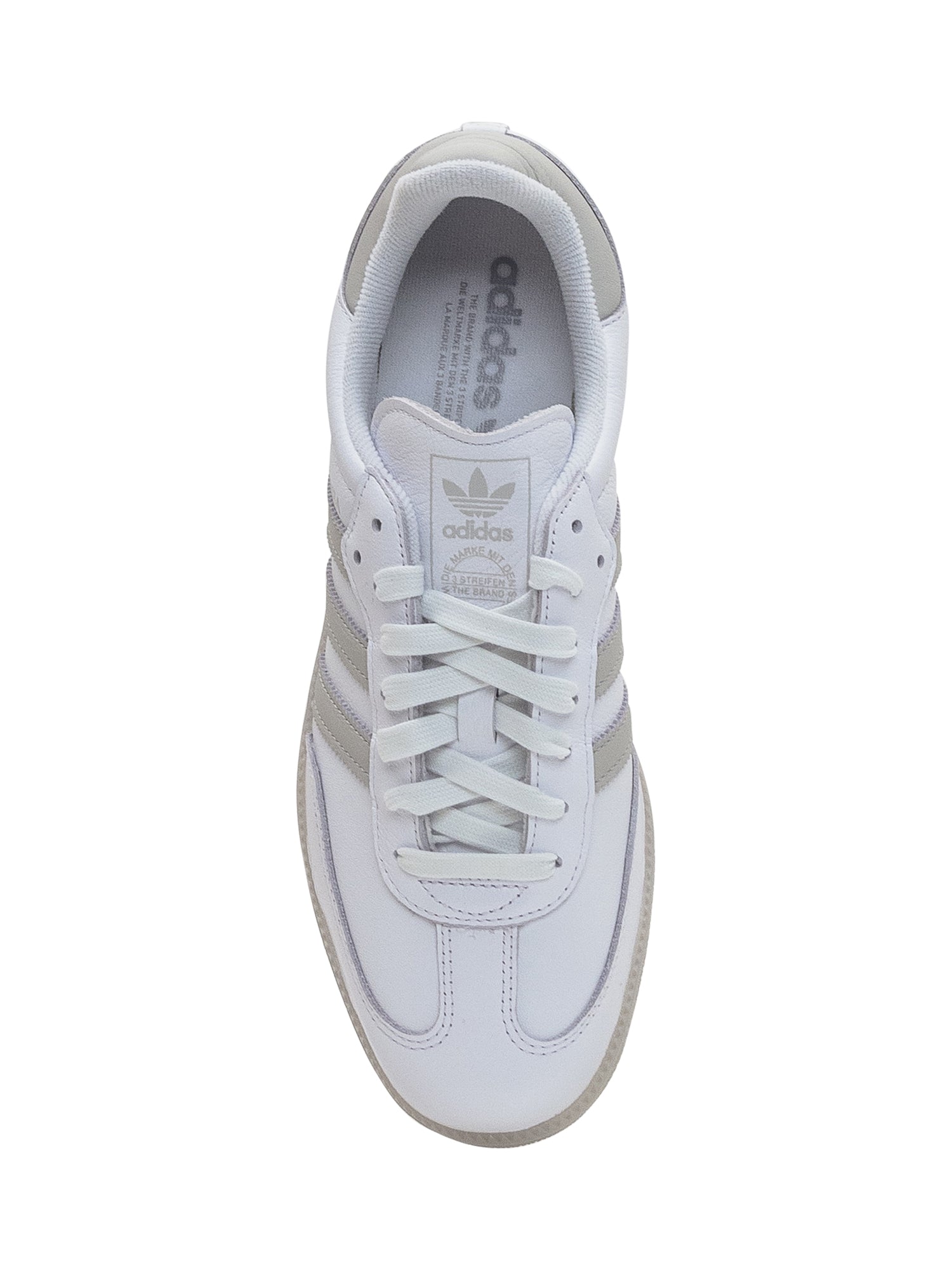 Sneaker in white and grey leather. Full grain leather upper with suede upholstery and gold foil details. Synthetic material lining; Rubber sole. Natural rubber midsole.