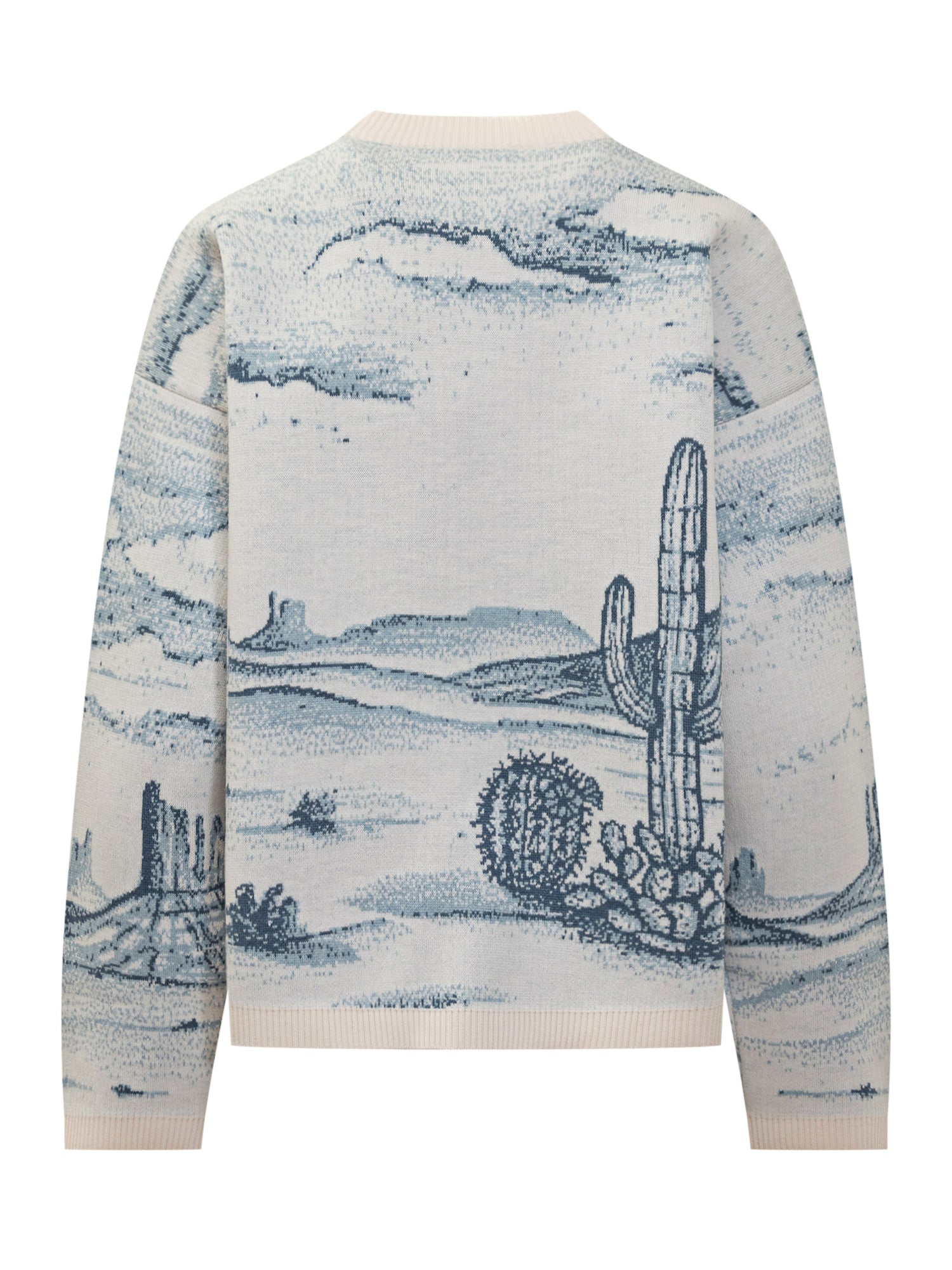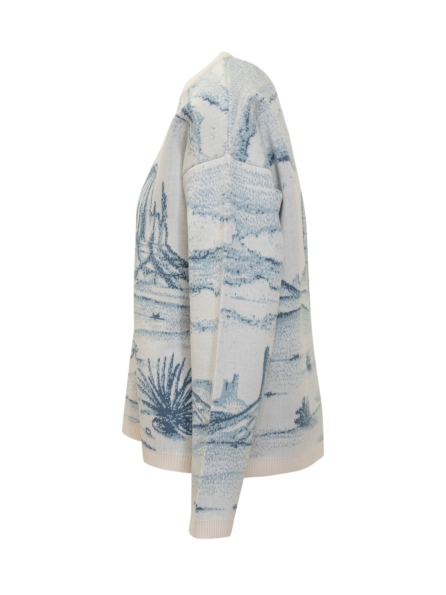 Alanui Silent Rider sweater featuring jacquard western scene with cowboy on horseback.