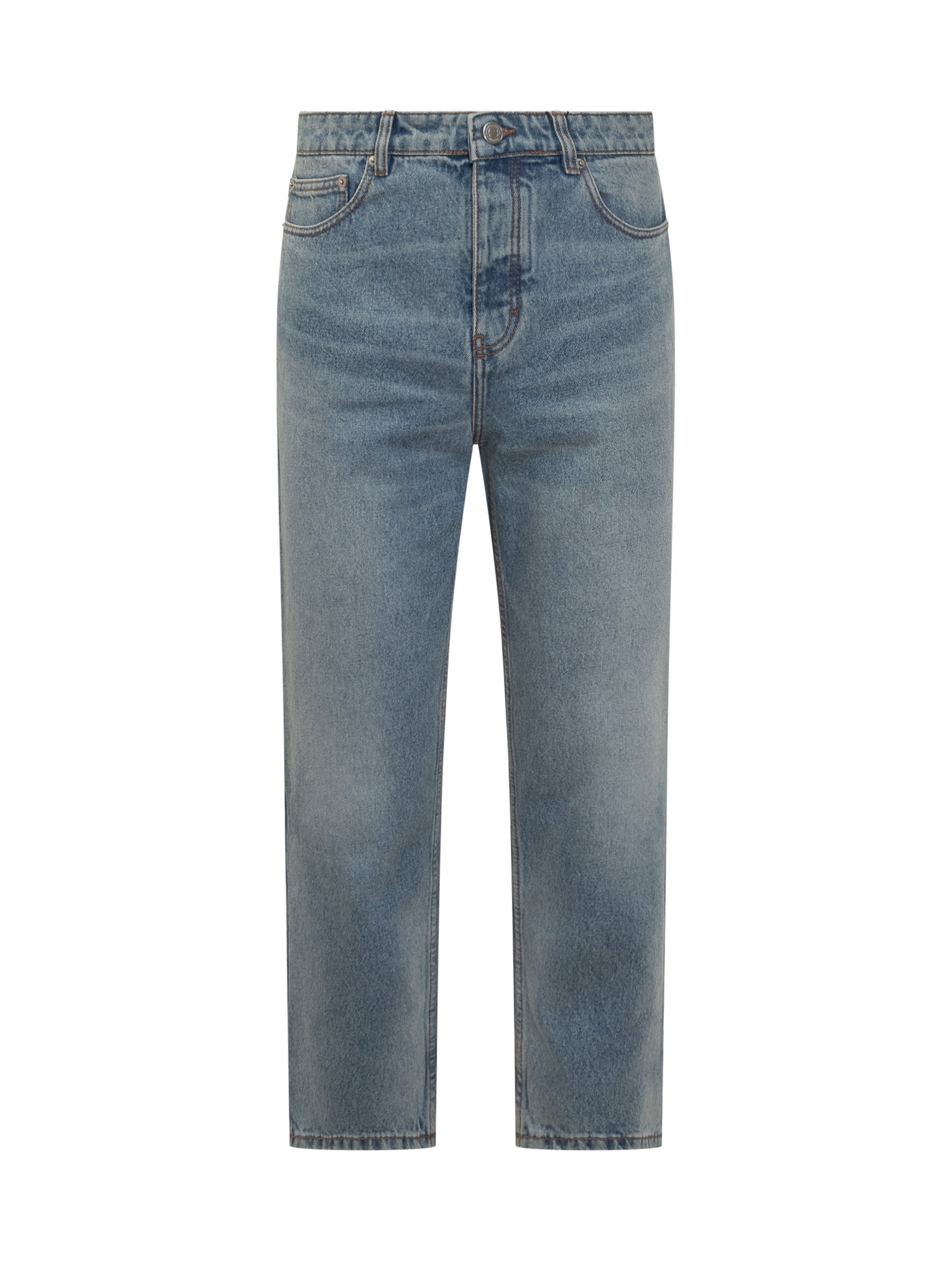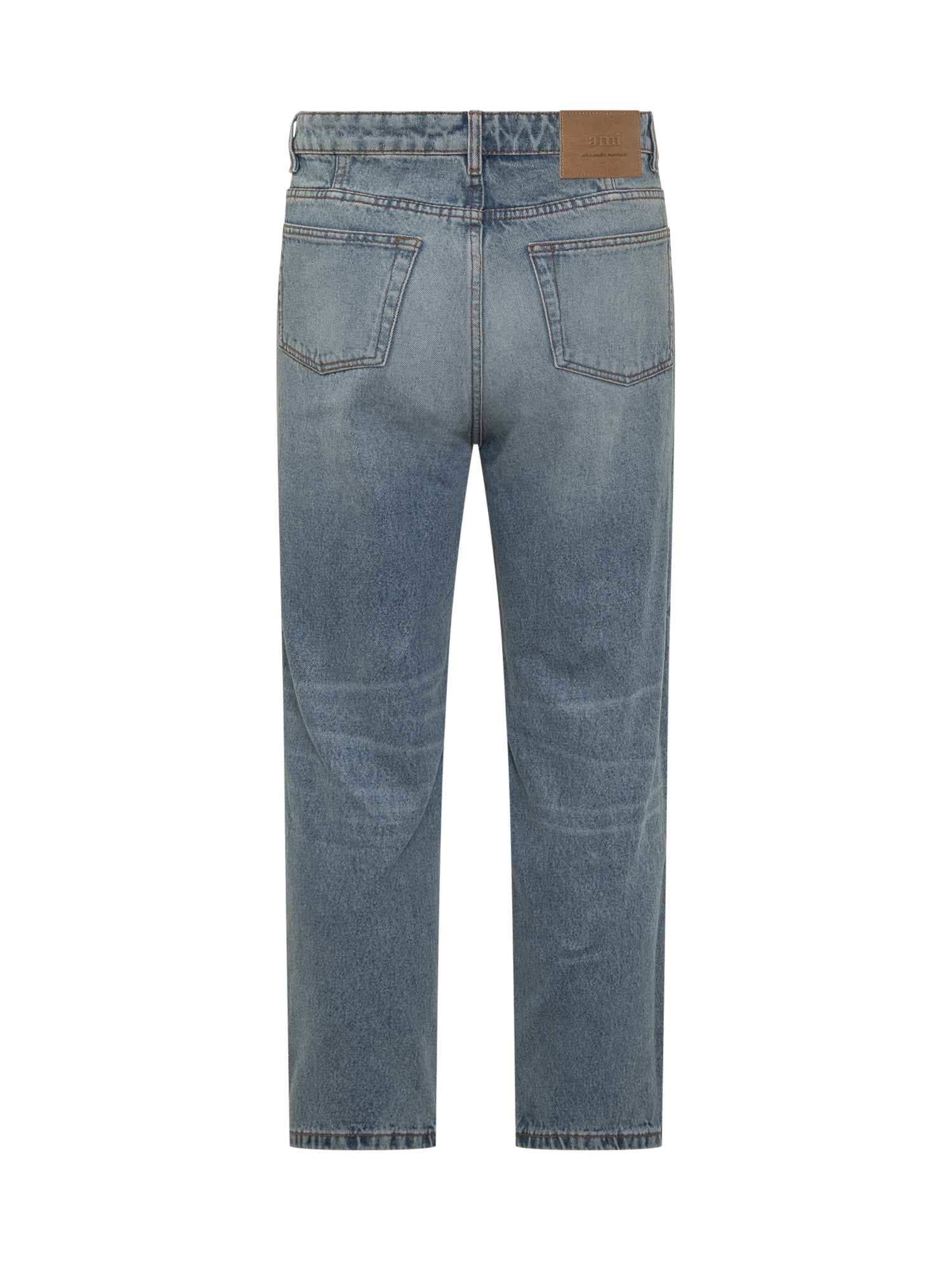 AMI Paris jeans in faded blue denim with a straight leg and high waist. Minimal design with five pockets and contrast stitching.