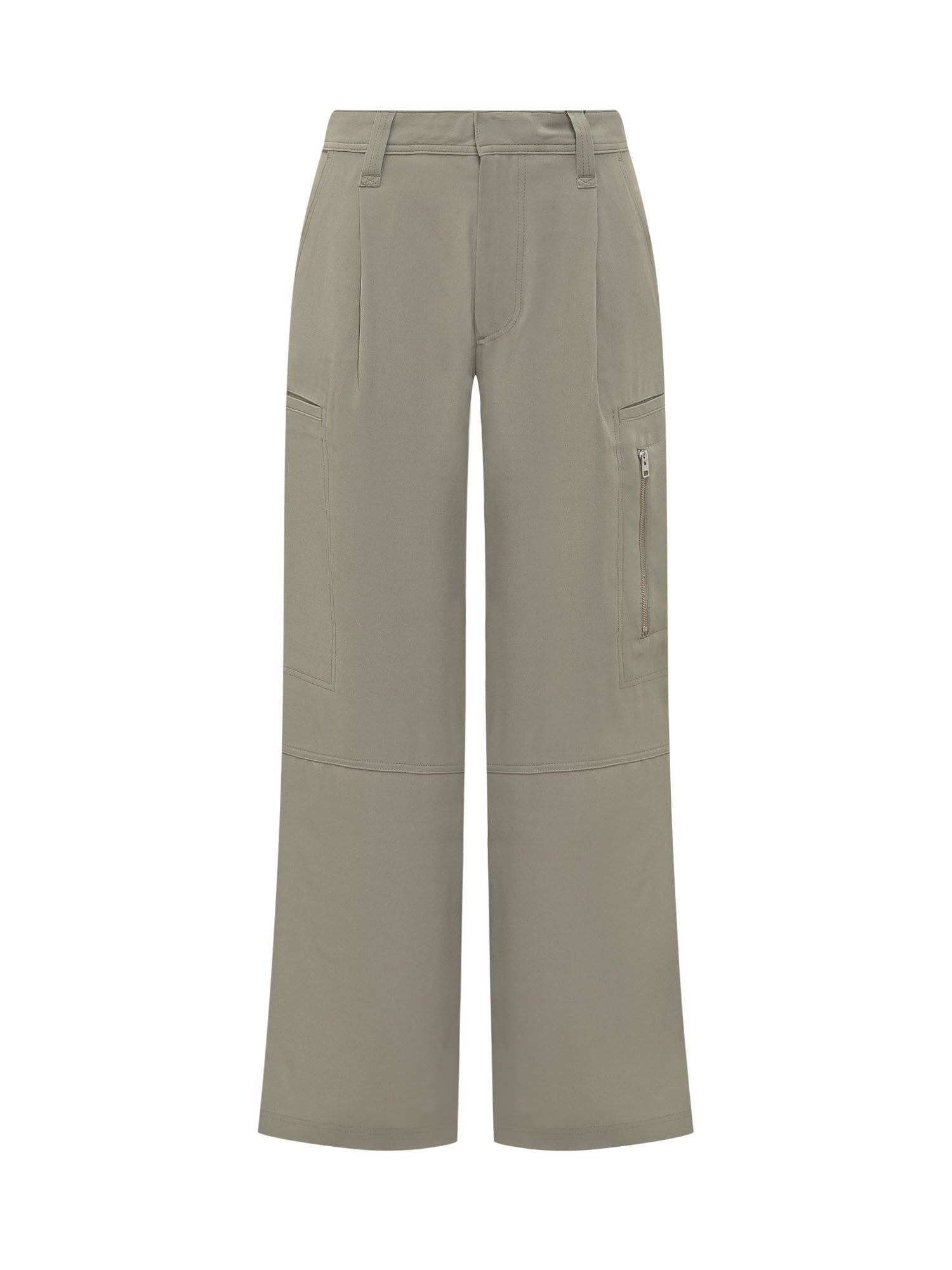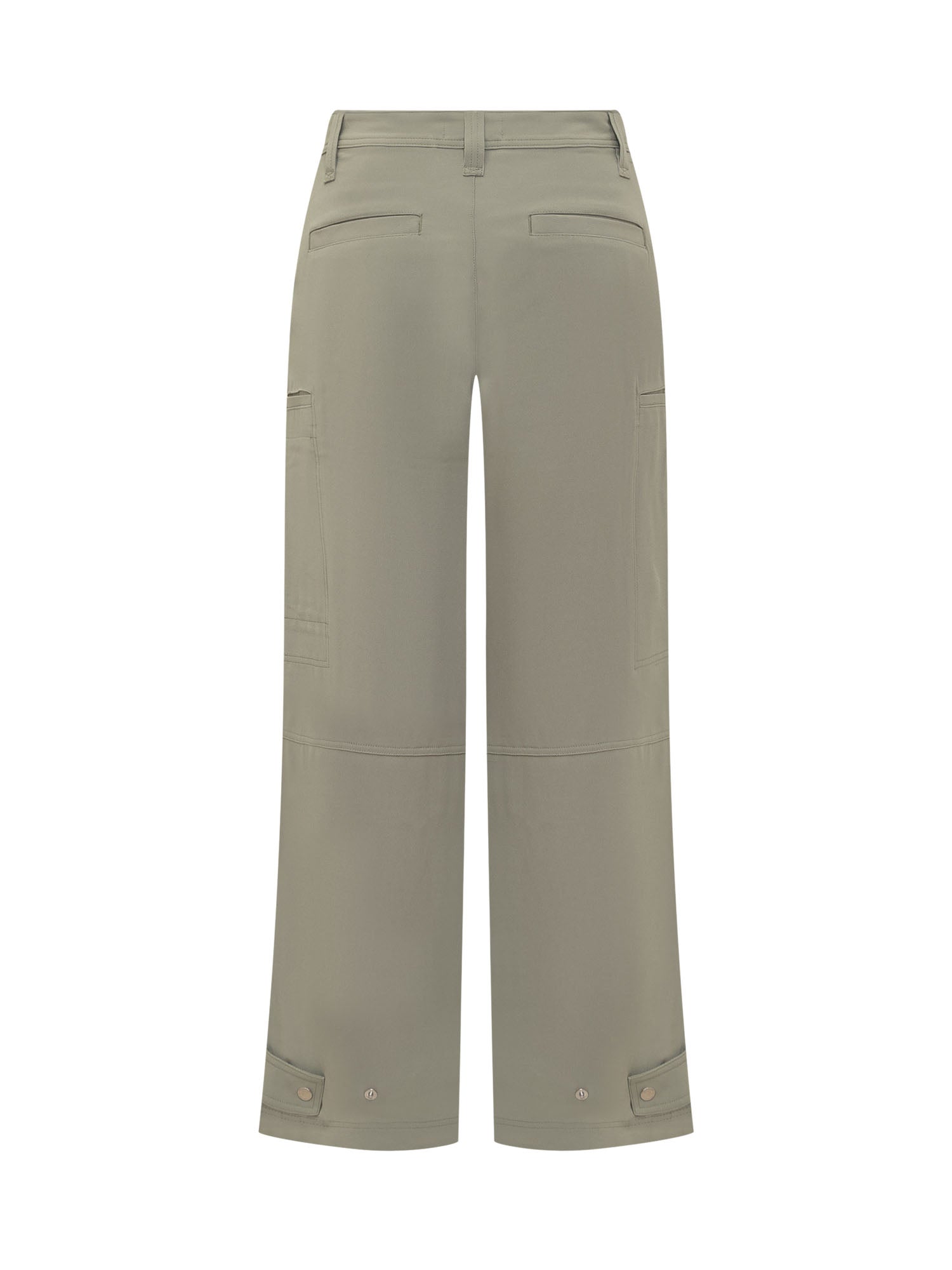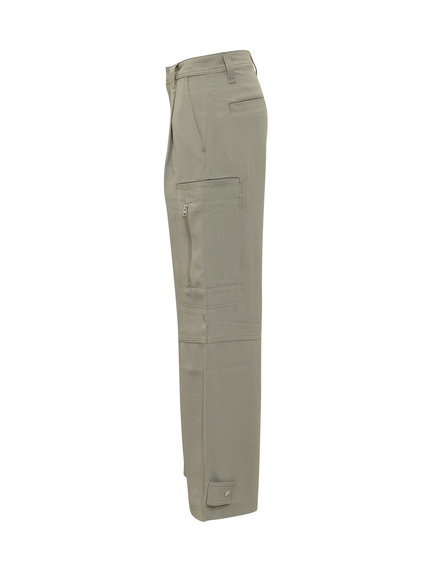 Cargo pants. Closure with button, hook and zip. Belt loops. Adjustable straps on the bottom. Two oblique pockets on the front. Two welt pockets on the back. Three cargo pockets.