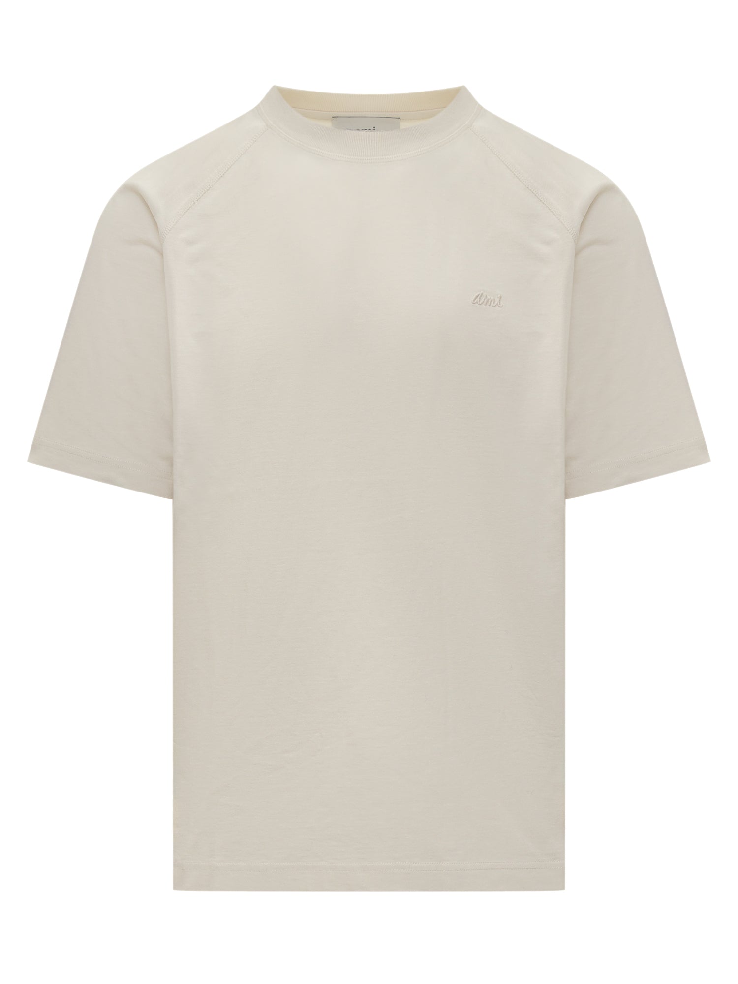 Ami Paris T-shirt in cream, crafted from soft cotton with tonal embroidered Ami logo on the chest.