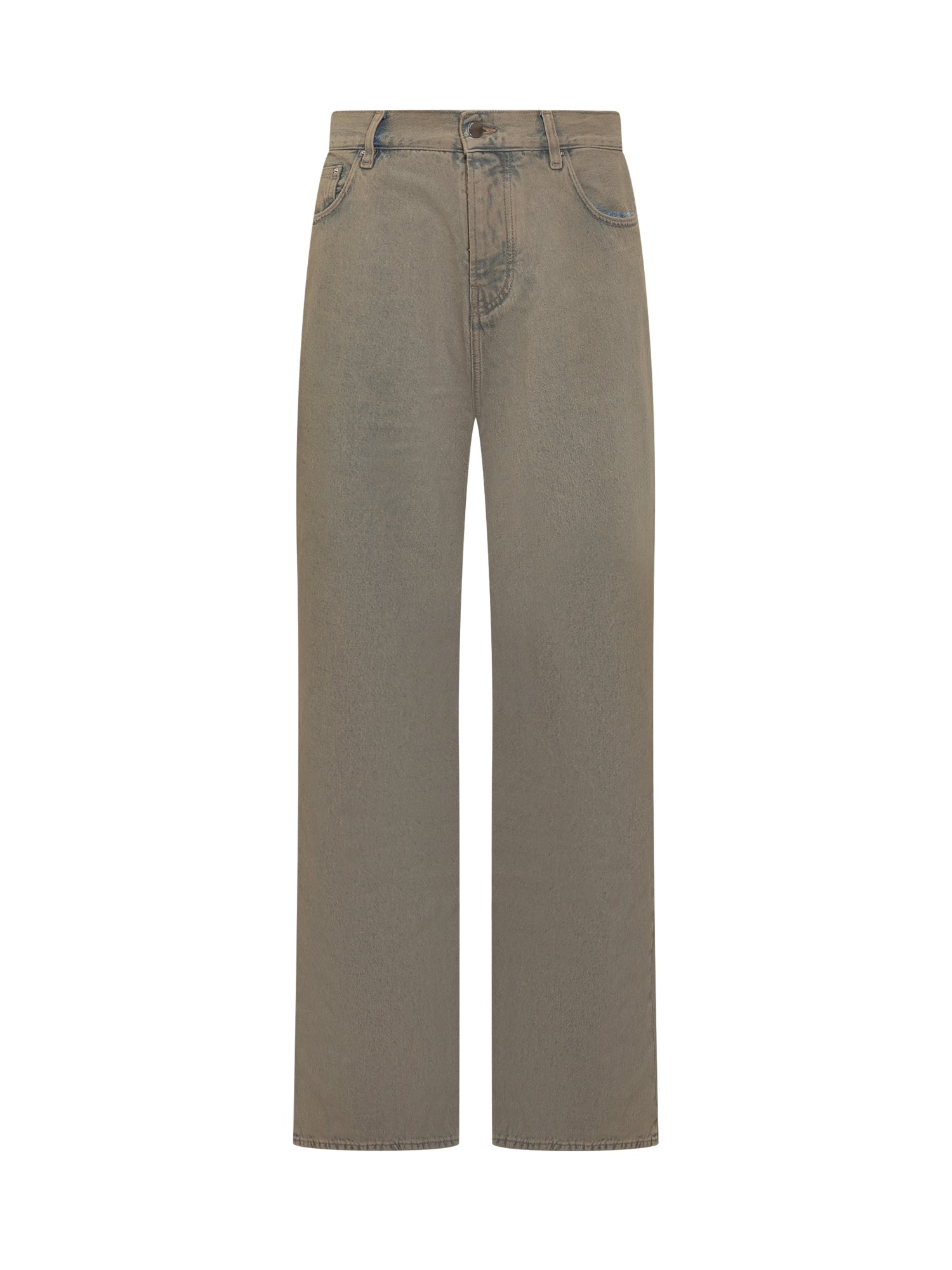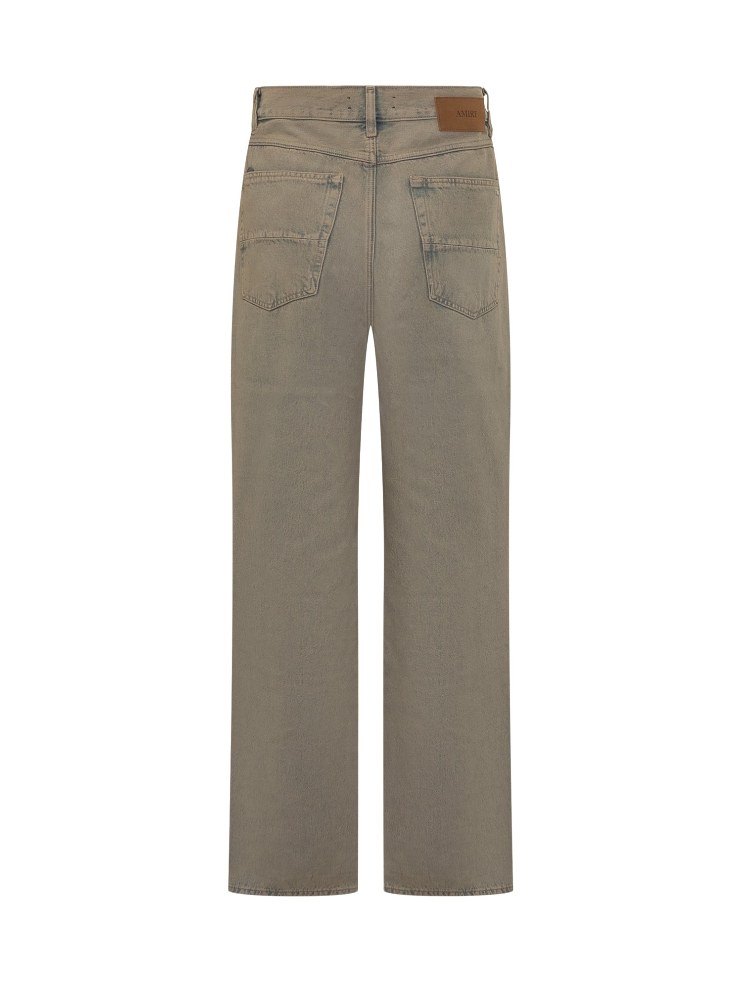 Amiri grey denim jeans with vintage-wash finish and wide-leg cut.