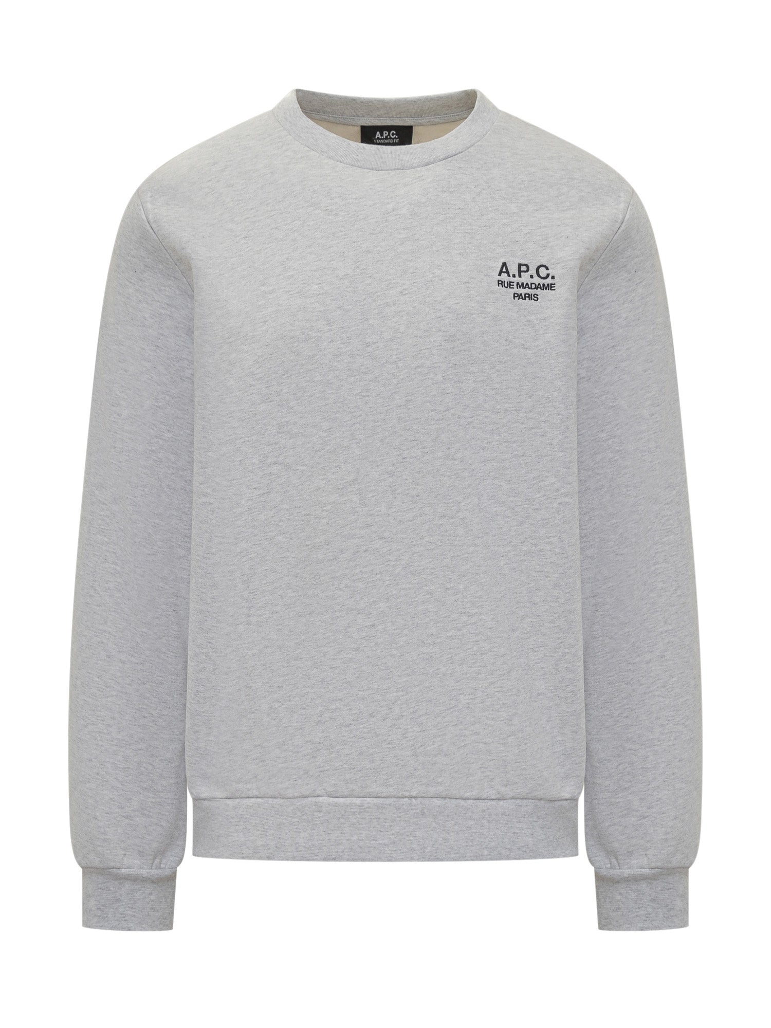 A.P.C. grey cotton sweatshirt with crew neck and long sleeves. Minimal and versatile, enriched with black Rue Madame Paris logo embroidered on the chest.