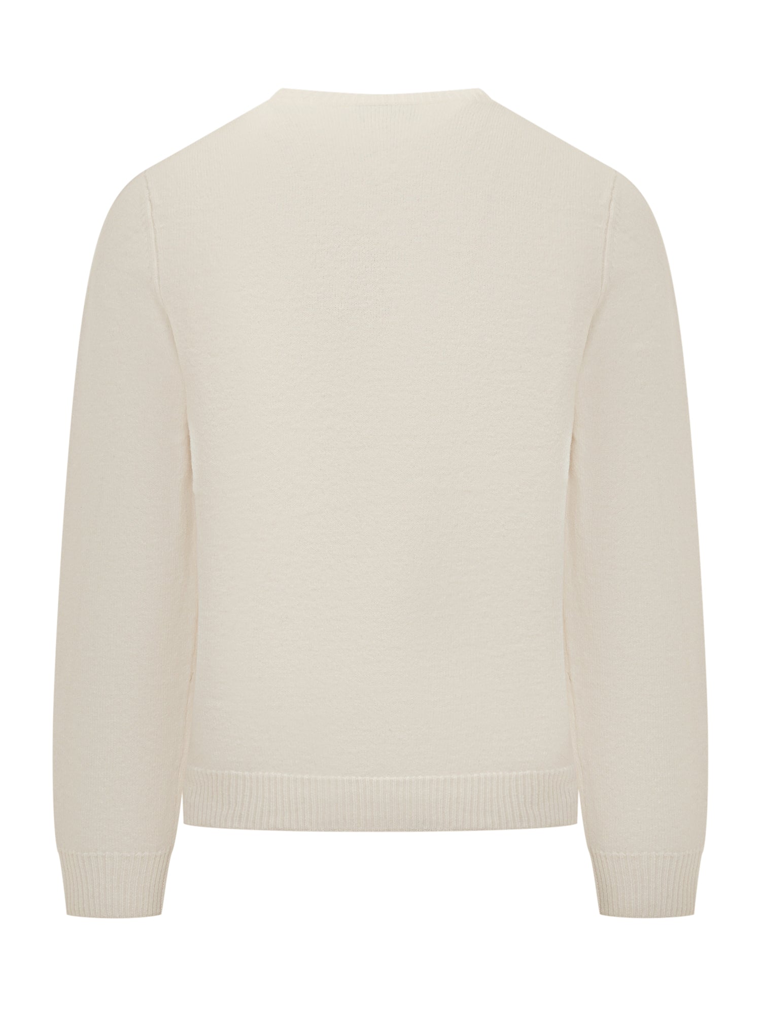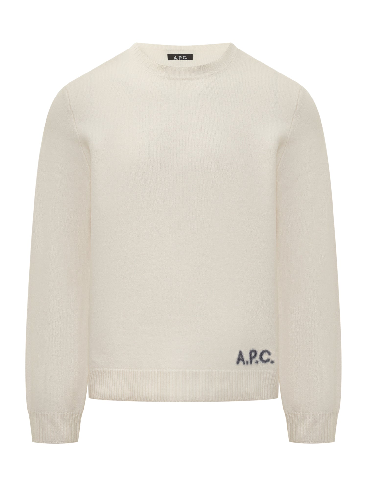 A.P.C. wool sweater in white with crew neck and contrasting embroidered logo at the hem.