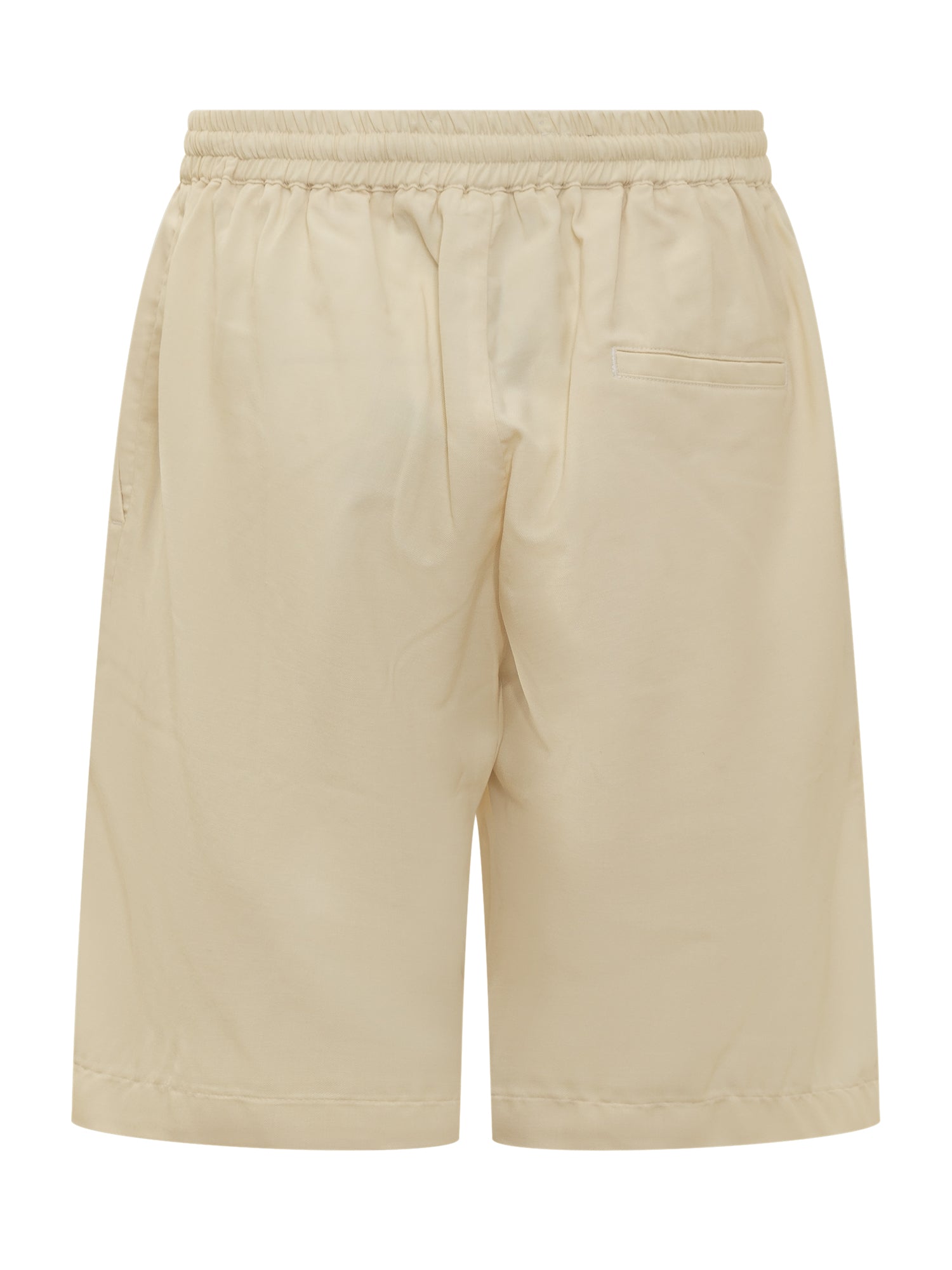 Shorts with elastic waist. Two side pockets and one on the back.