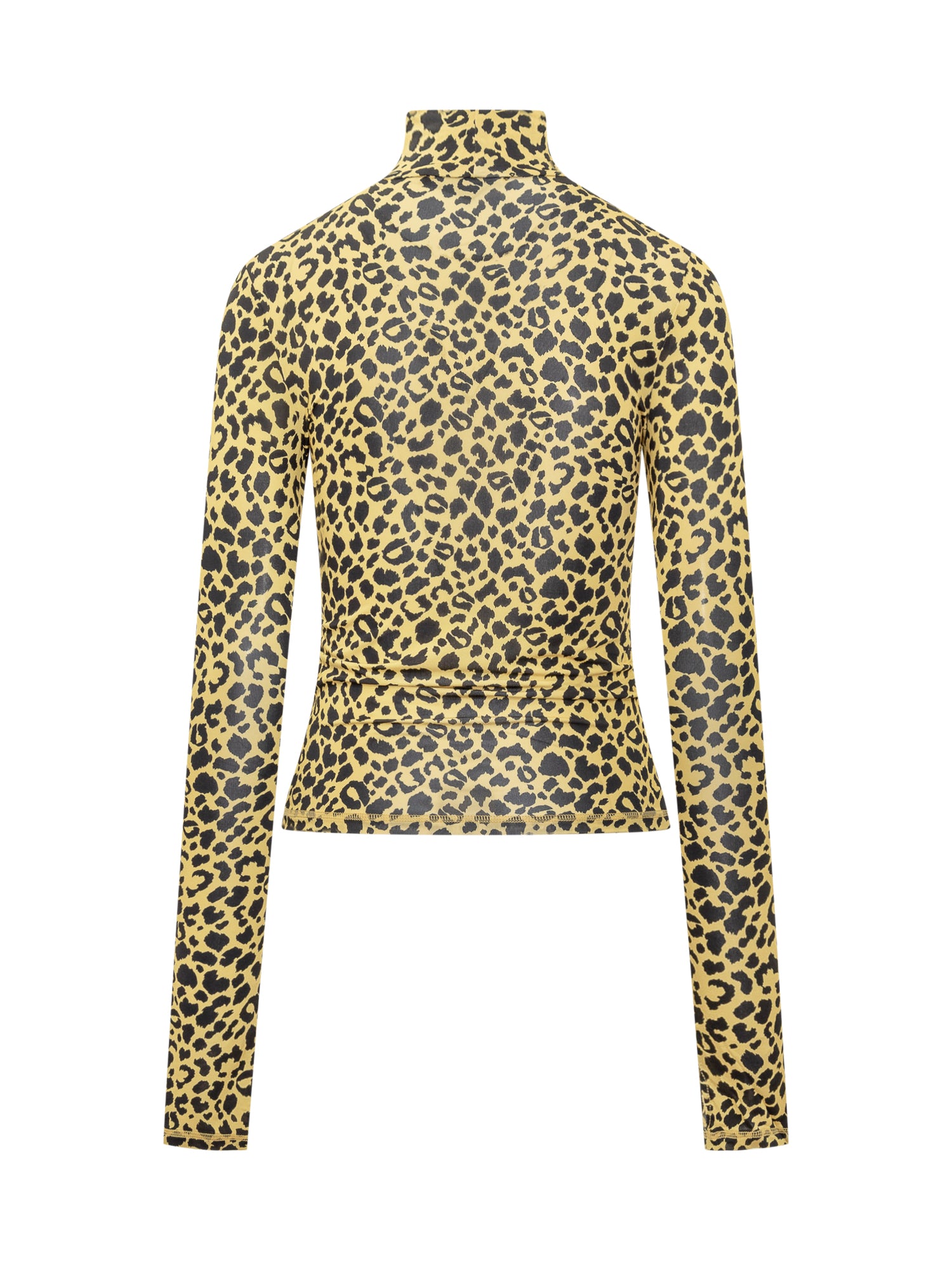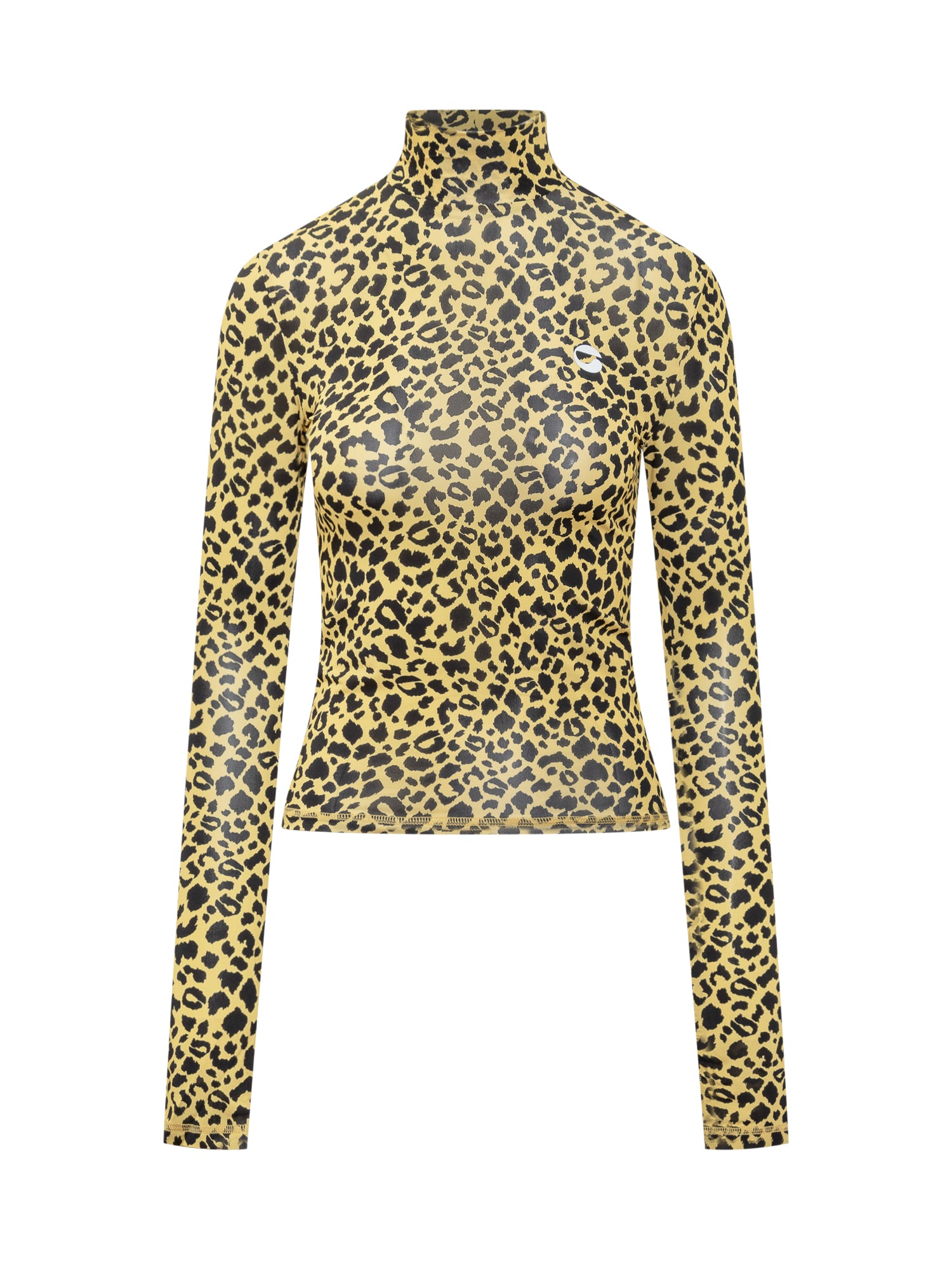 Coperni stretch jersey turtleneck top featuring a leopard print and contrasting logo.