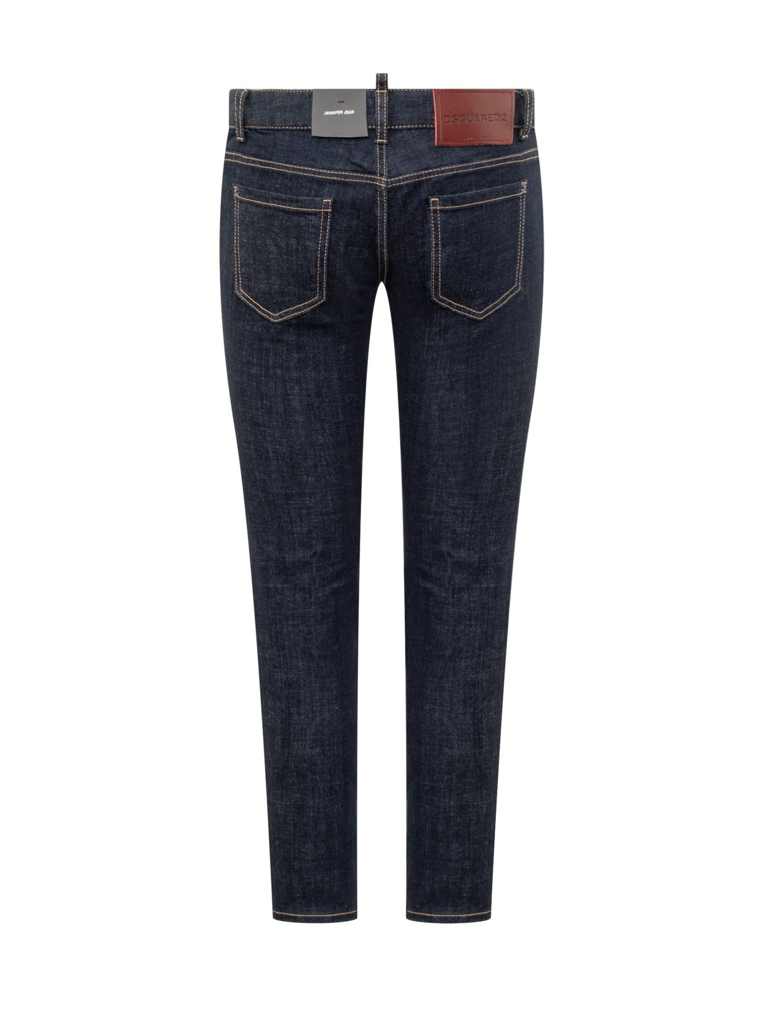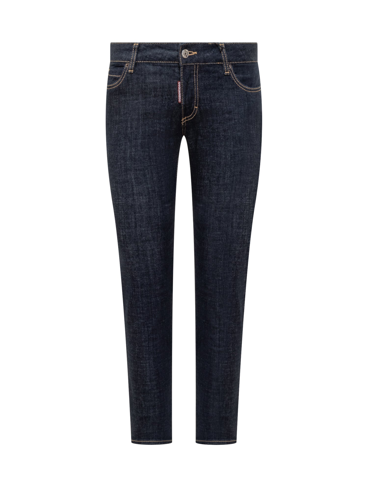 Dsquared2 Jennifer women s jeans in dark blue denim. Slim fit, mid-rise waist, and contrast stitching.