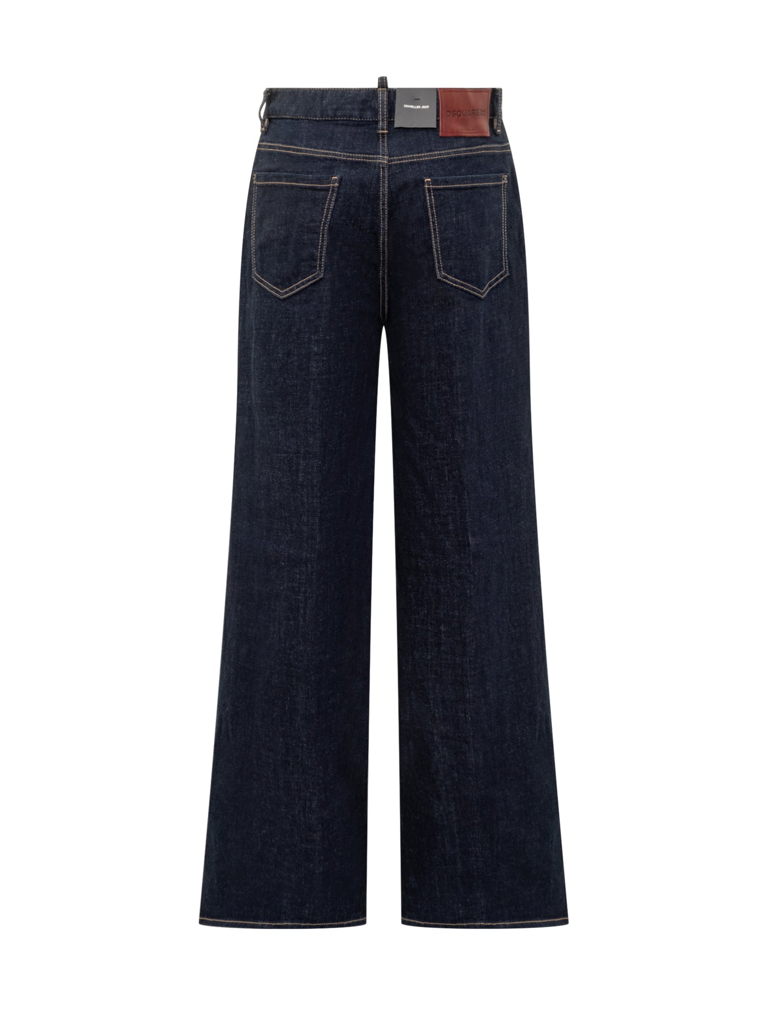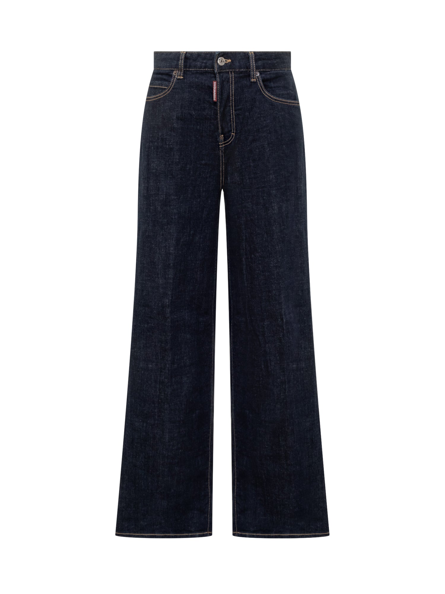Dsquared2 Traveller women s jeans in dark blue denim. Wide-leg fit, mid-rise waist, and contrast stitching.