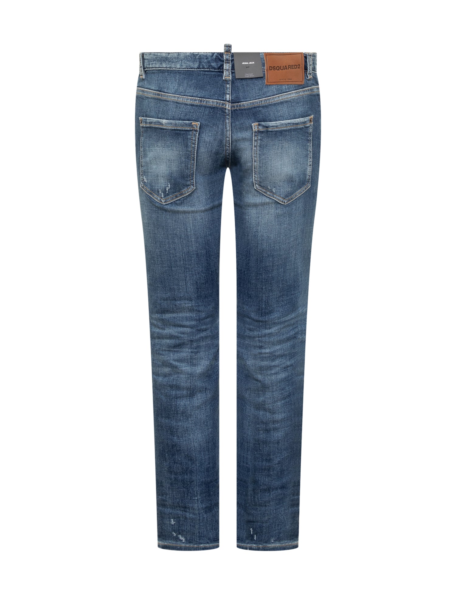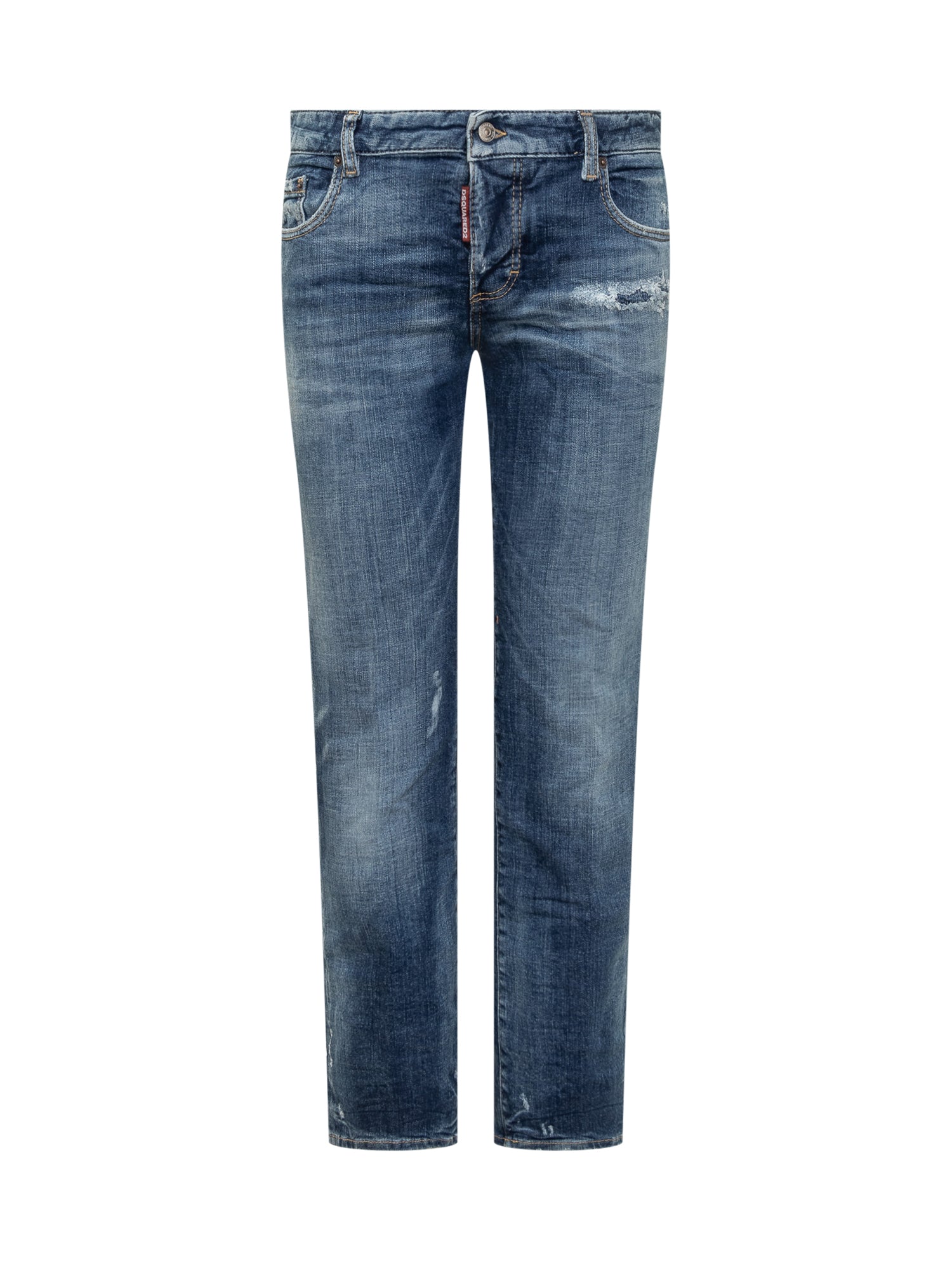 Dsquared2 Jenna jeans for women in blue used-effect denim with light distressing and straight fit.