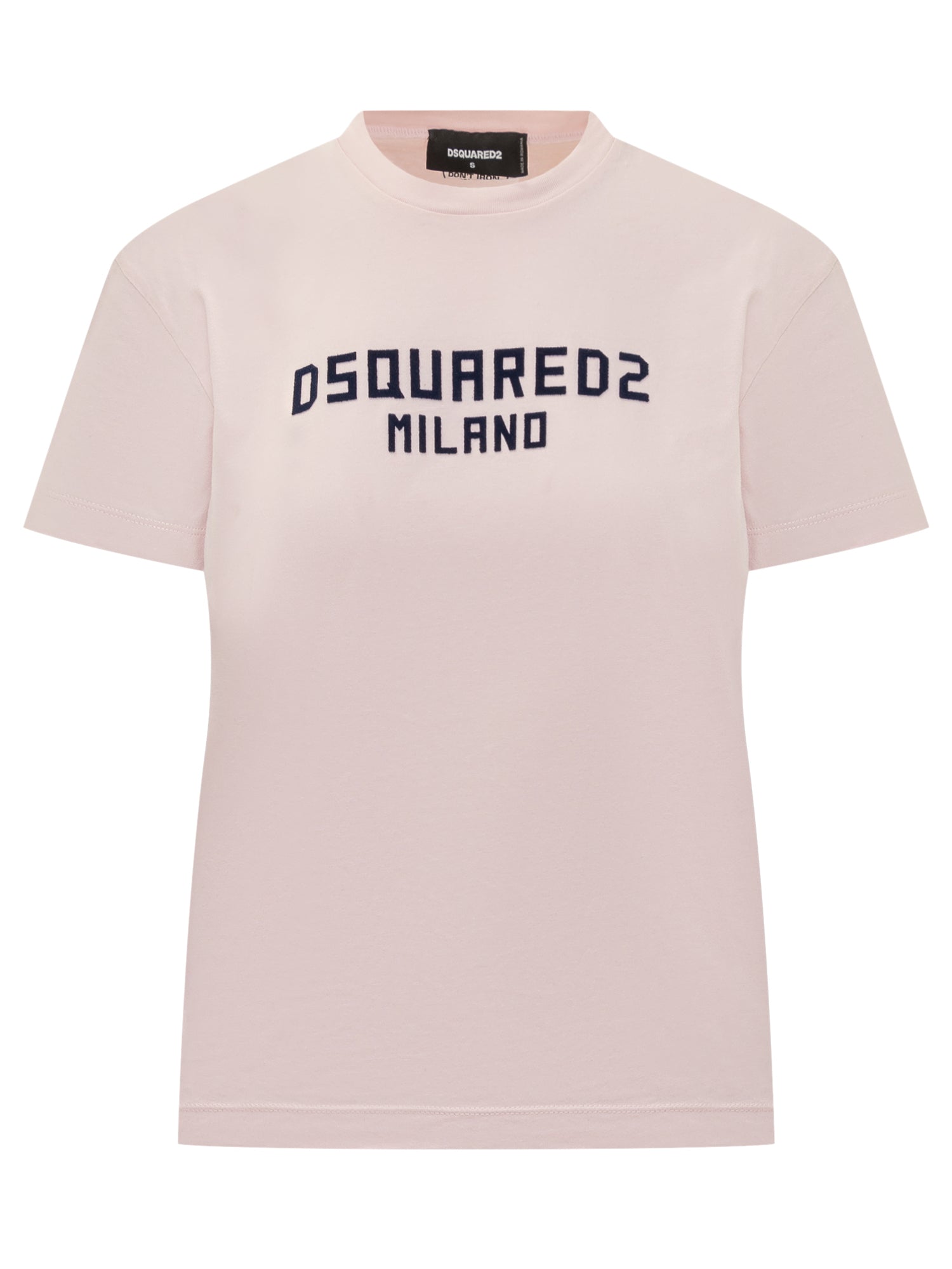 Pink DSQUARED2 T-shirt with embroidered logo on chest. Made of soft cotton.