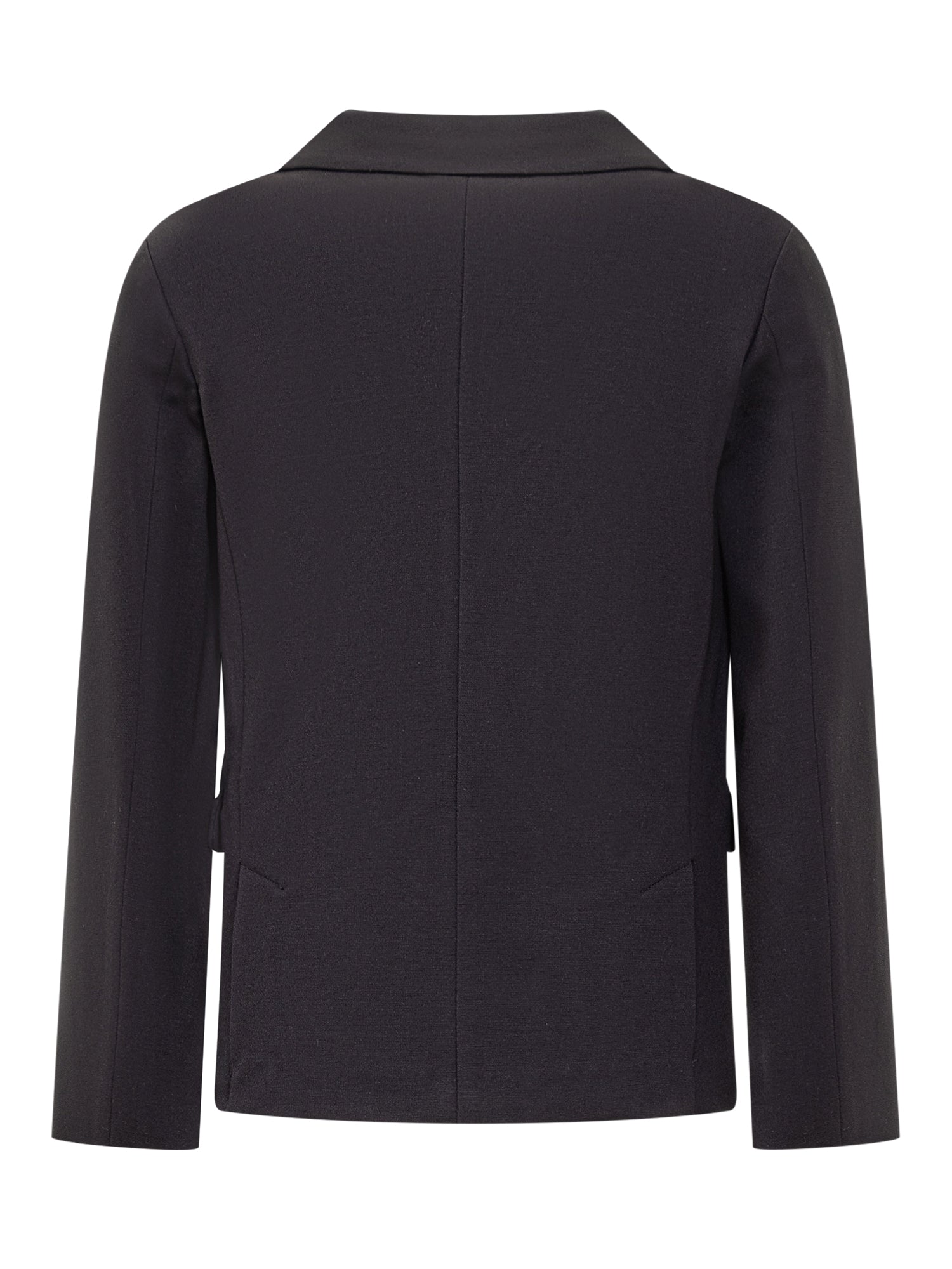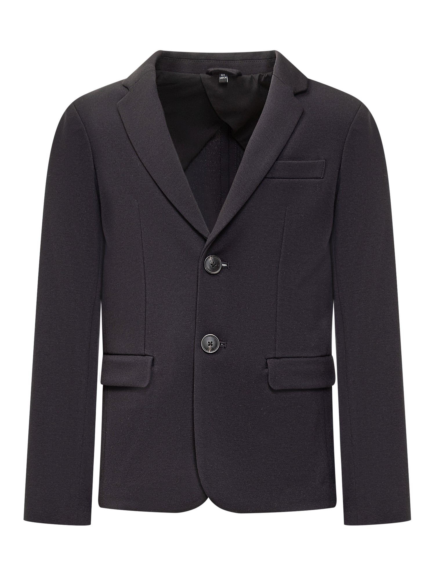 Blue blazer jacket. Button fastening. Reverse collar. Flap pockets. Breast pocket.