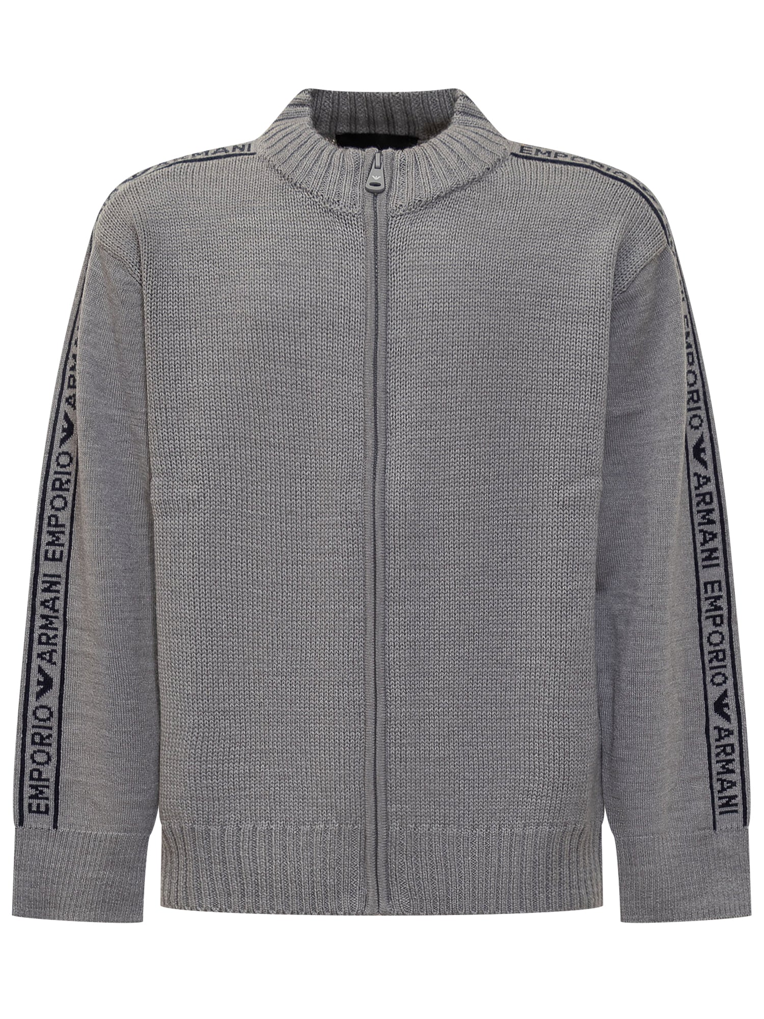 Sweater with crew neck. Ribbed hems. Zipper closure. Jacquard logo on sleeves.