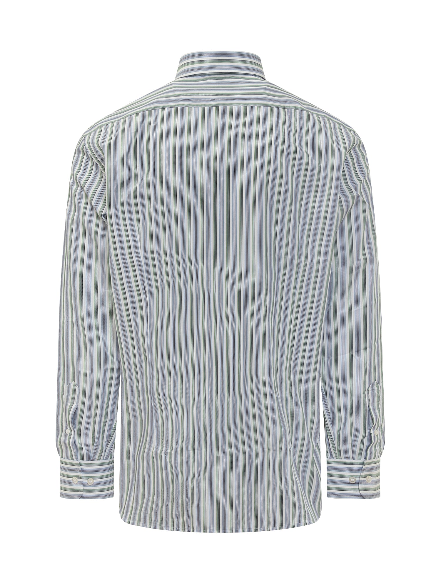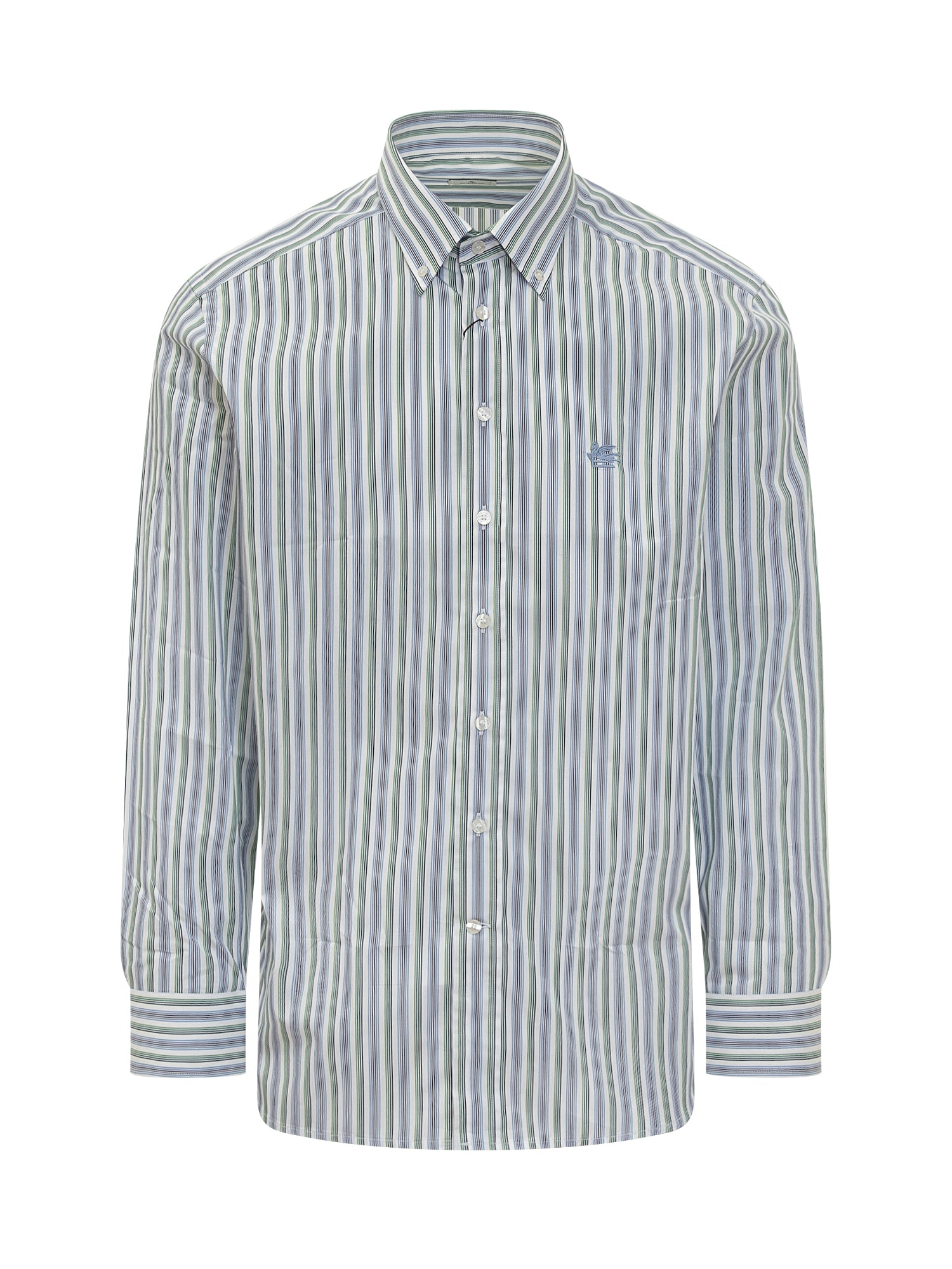 Multicolor striped Etro shirt with button-down collar and embroidered chest logo.
