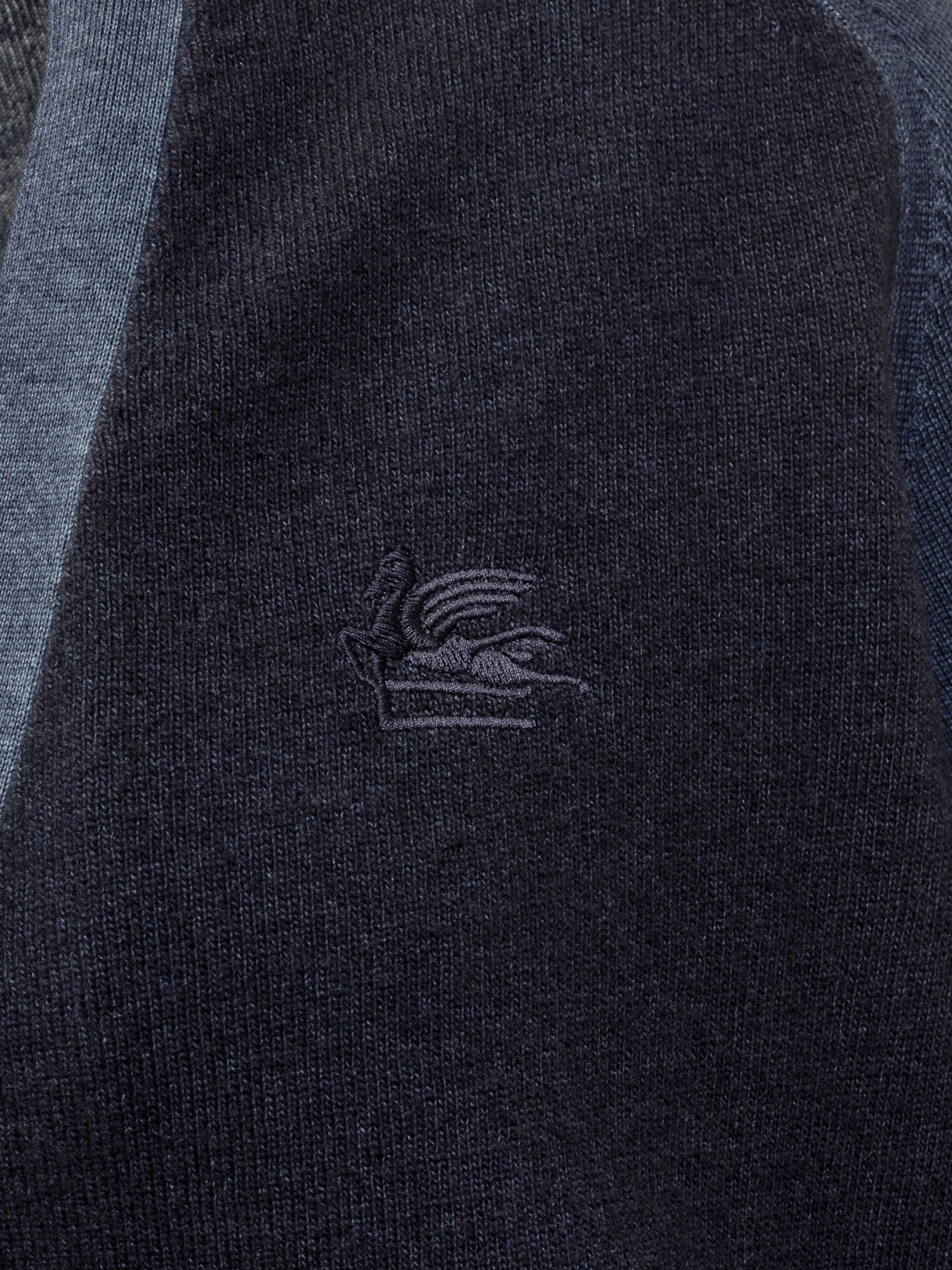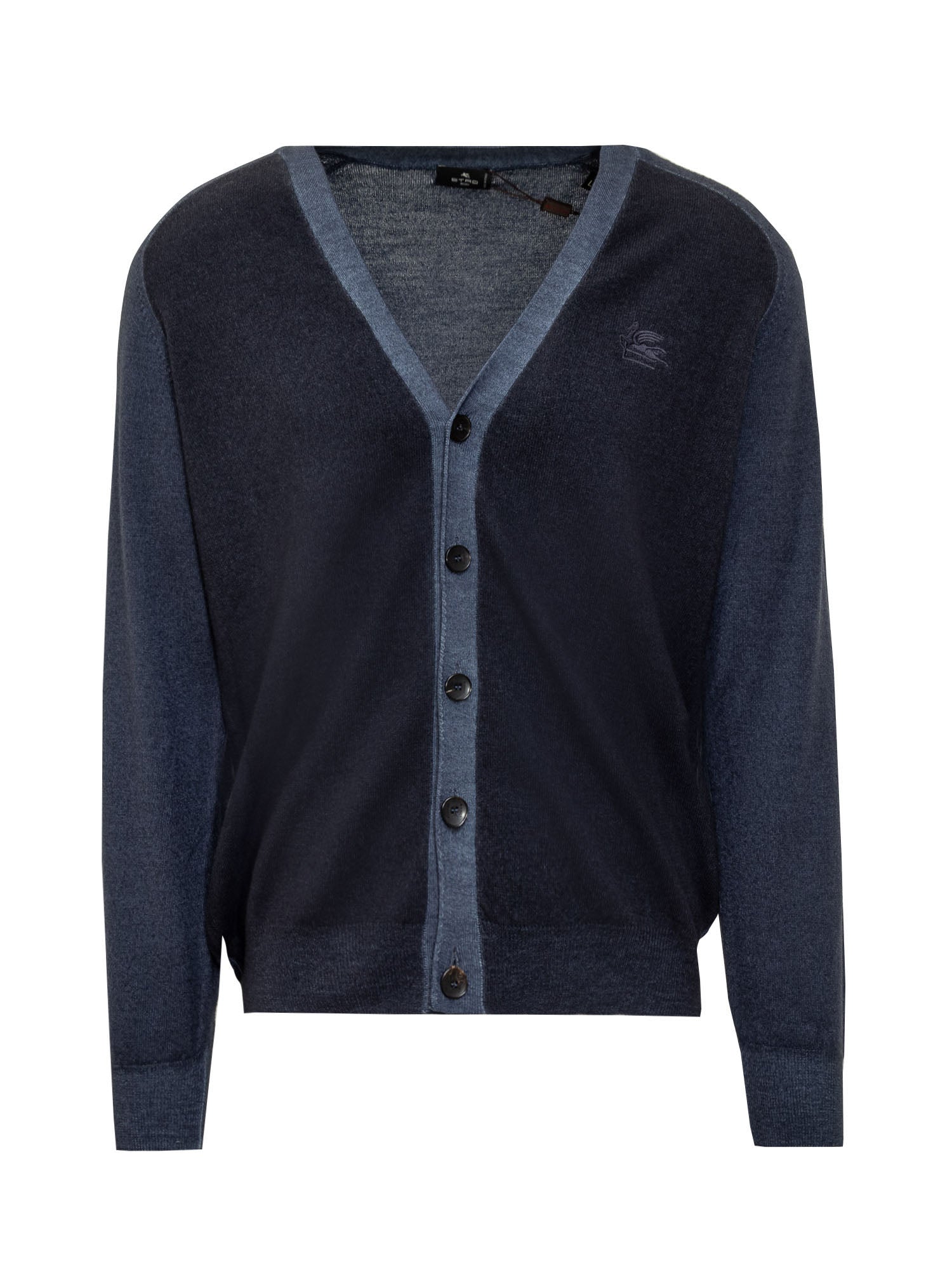 Wool long-sleeved cardigan. V-neck. Button closure. Ribbed and contrasting hems. Embroidered Pegasus logo on the front.