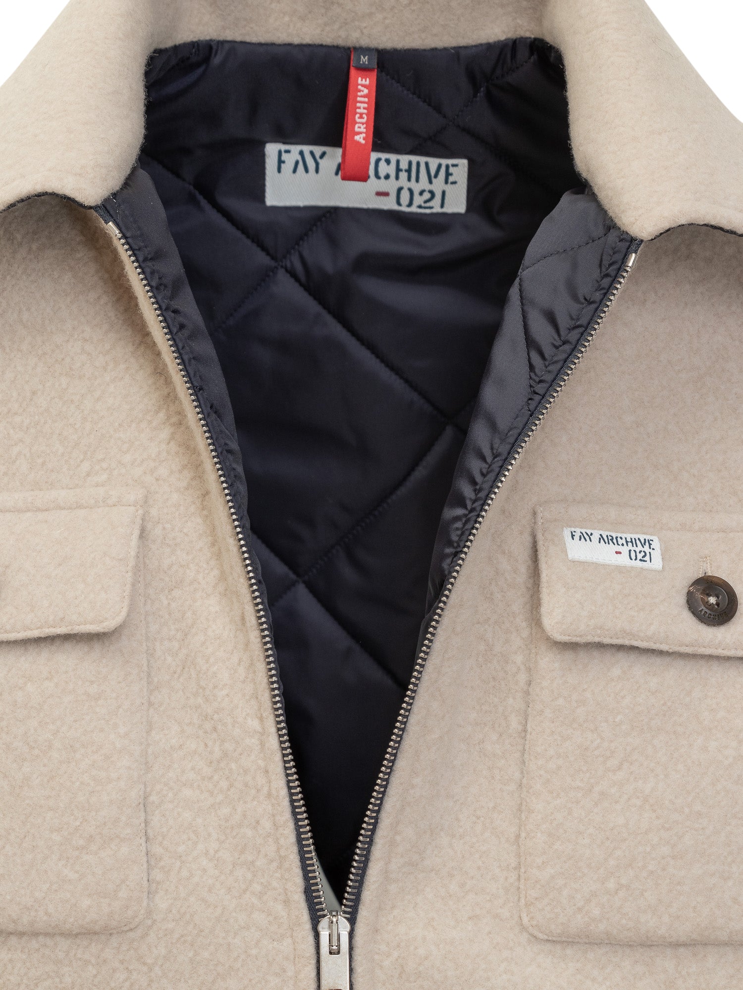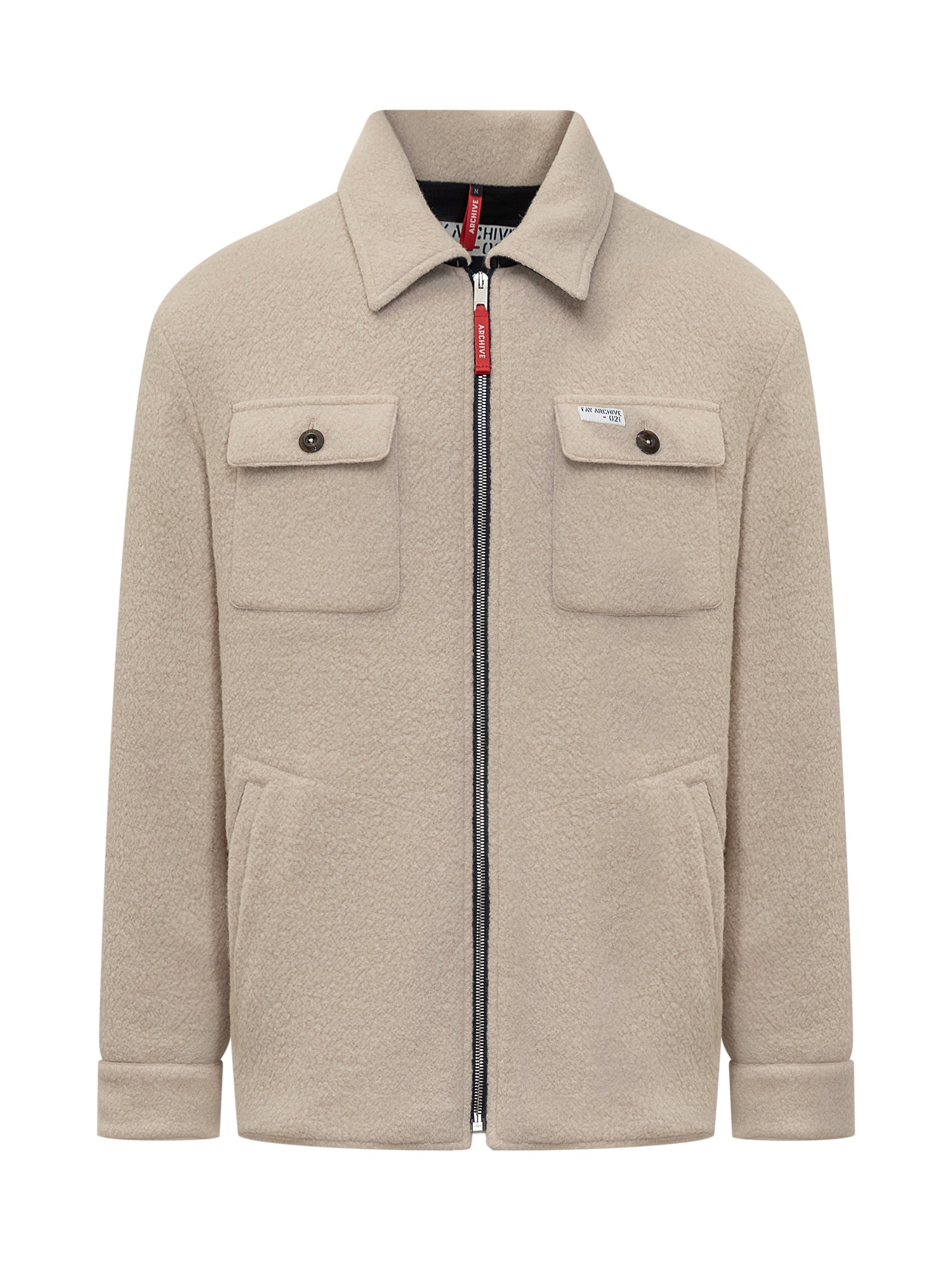 Over shirt with classic collar. Zipper closure. Button cuffs. Four pockets. Embroidered logo on front.