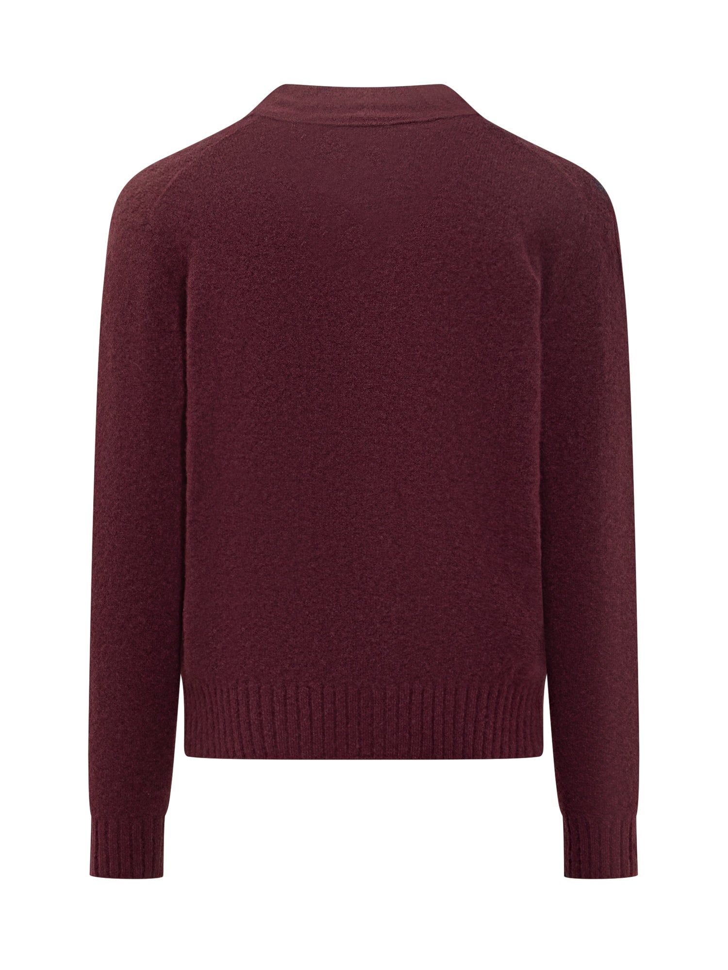 Filippo De Laurentiis cardigan in soft bordeaux wool with V-neck, buttons and front pockets.