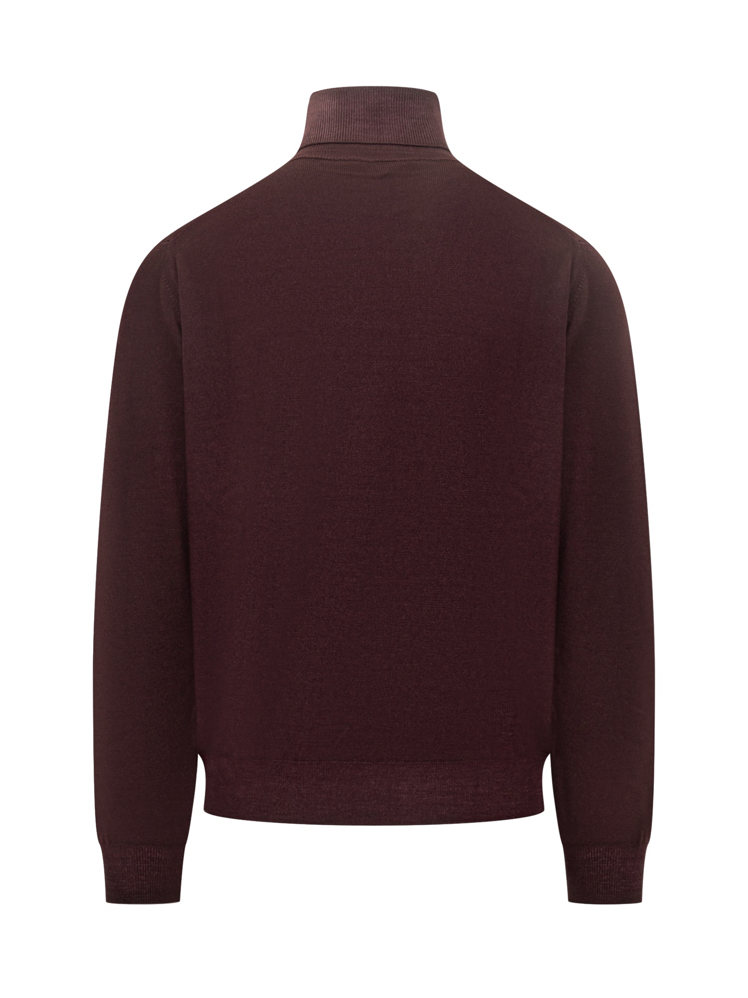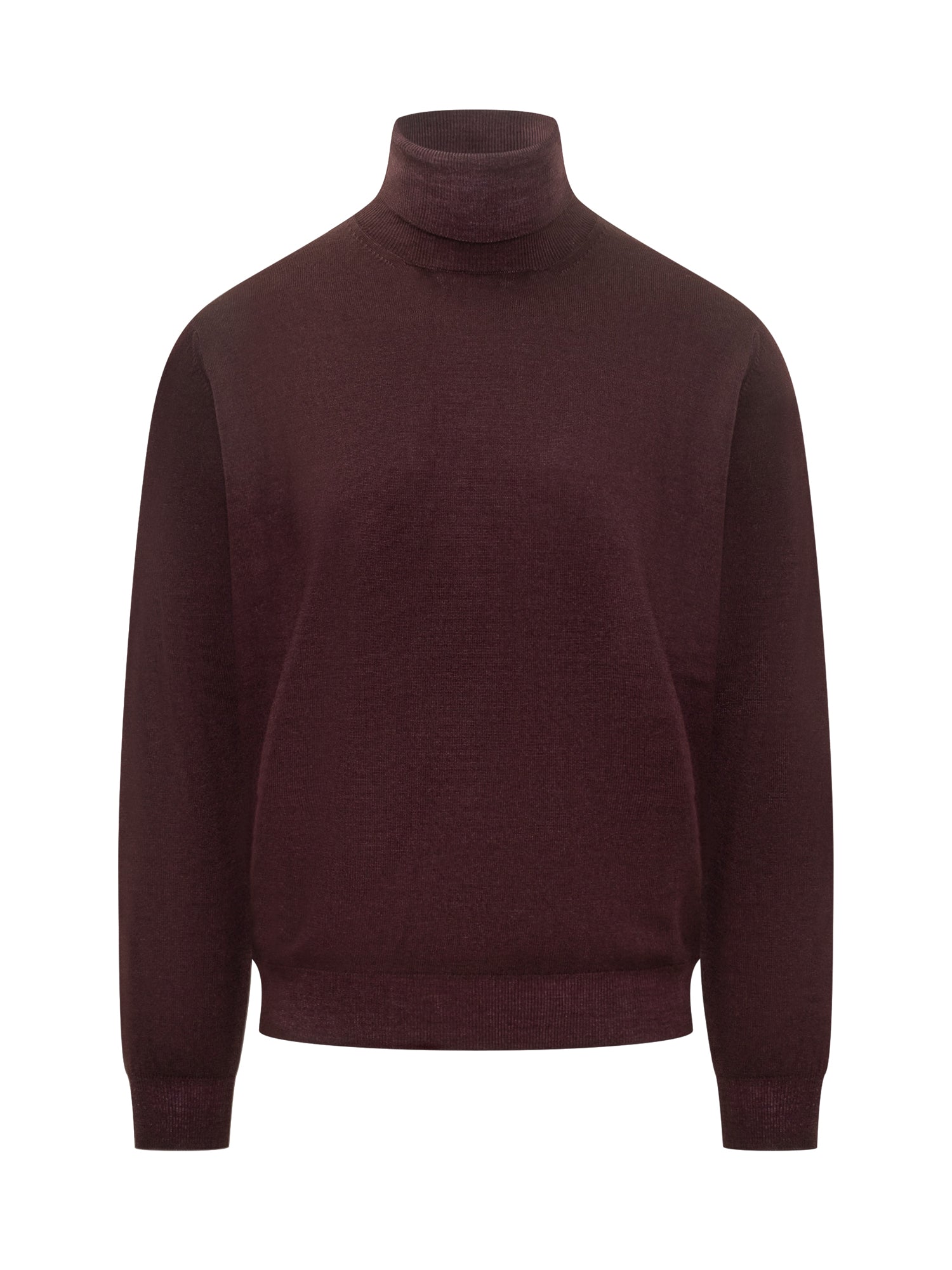 Filippo De Laurentiis turtleneck sweater in bordeaux wool with minimal design and ribbed trims.