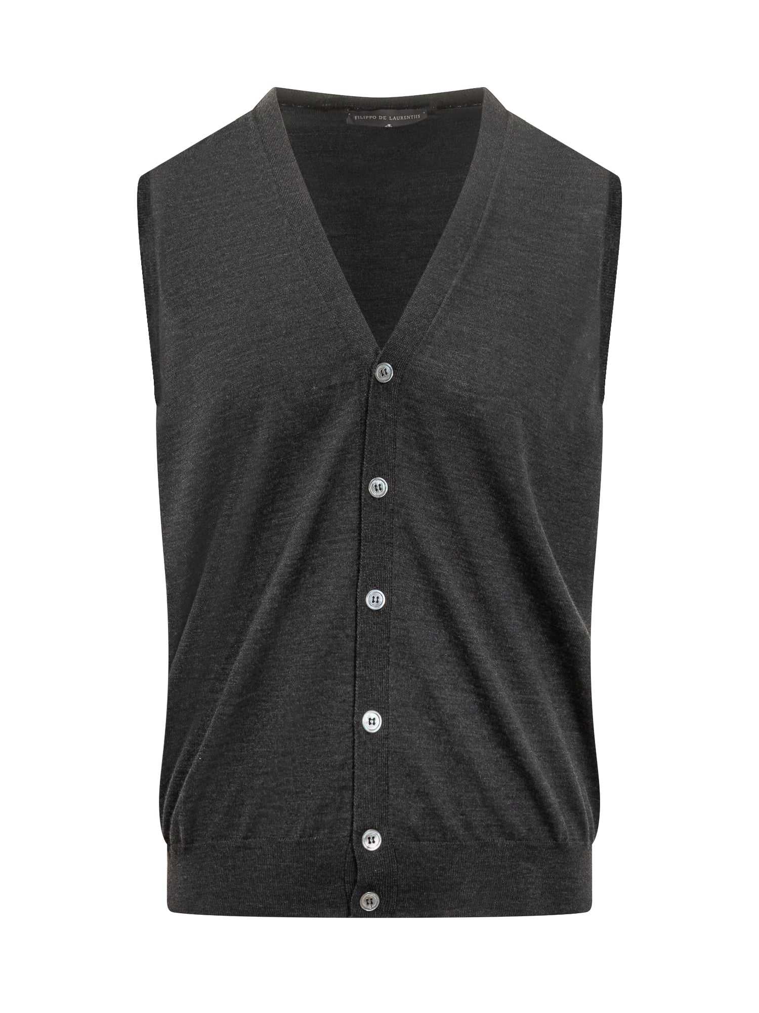 Filippo De Laurentiis grey wool vest with V-neck and button closure.