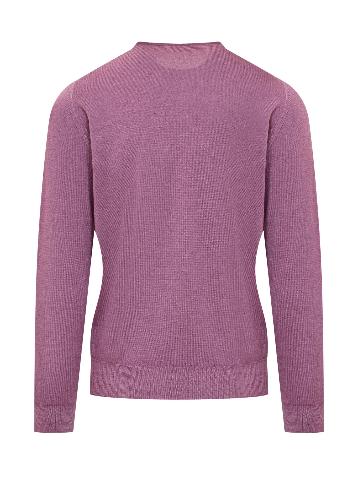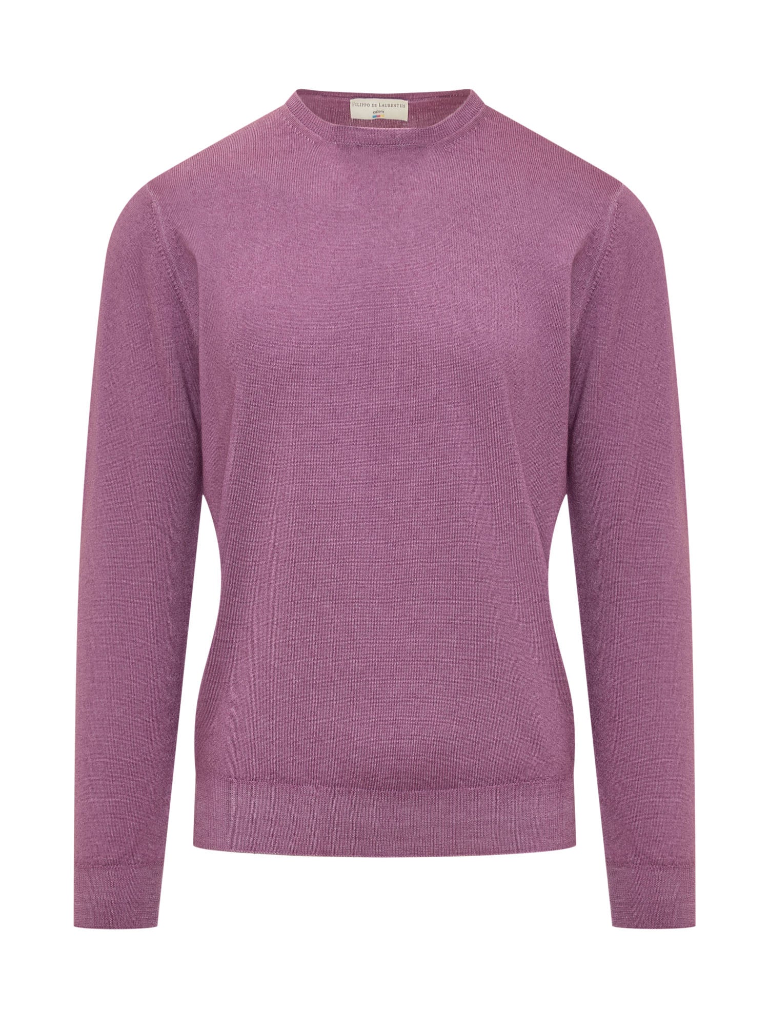 Crew neck sweater. Long sleeves. Ribbed collar, hem and cuffs. Purple color.