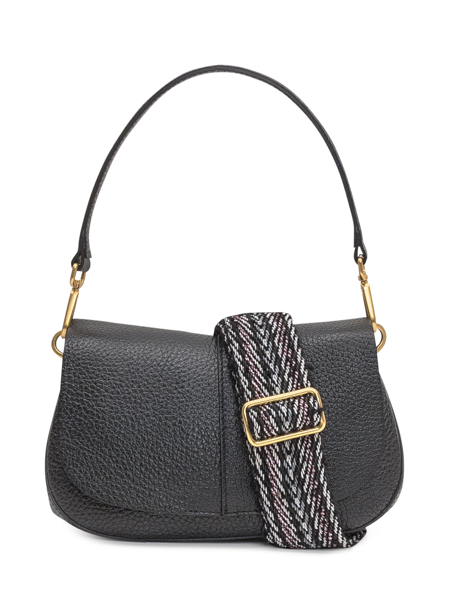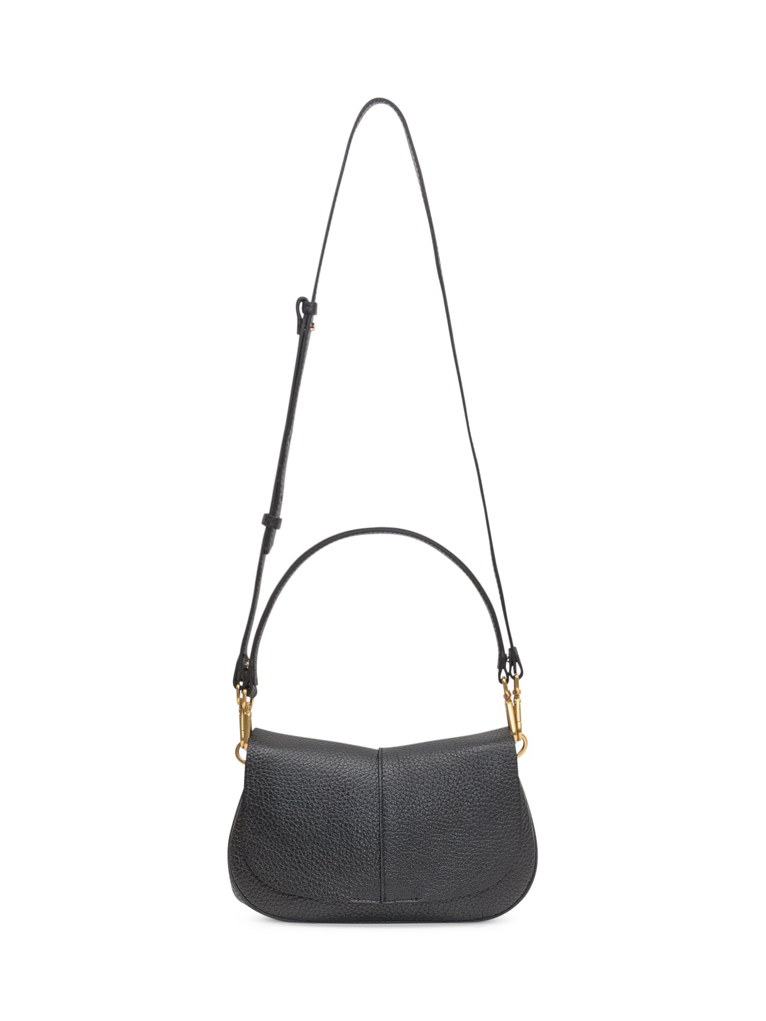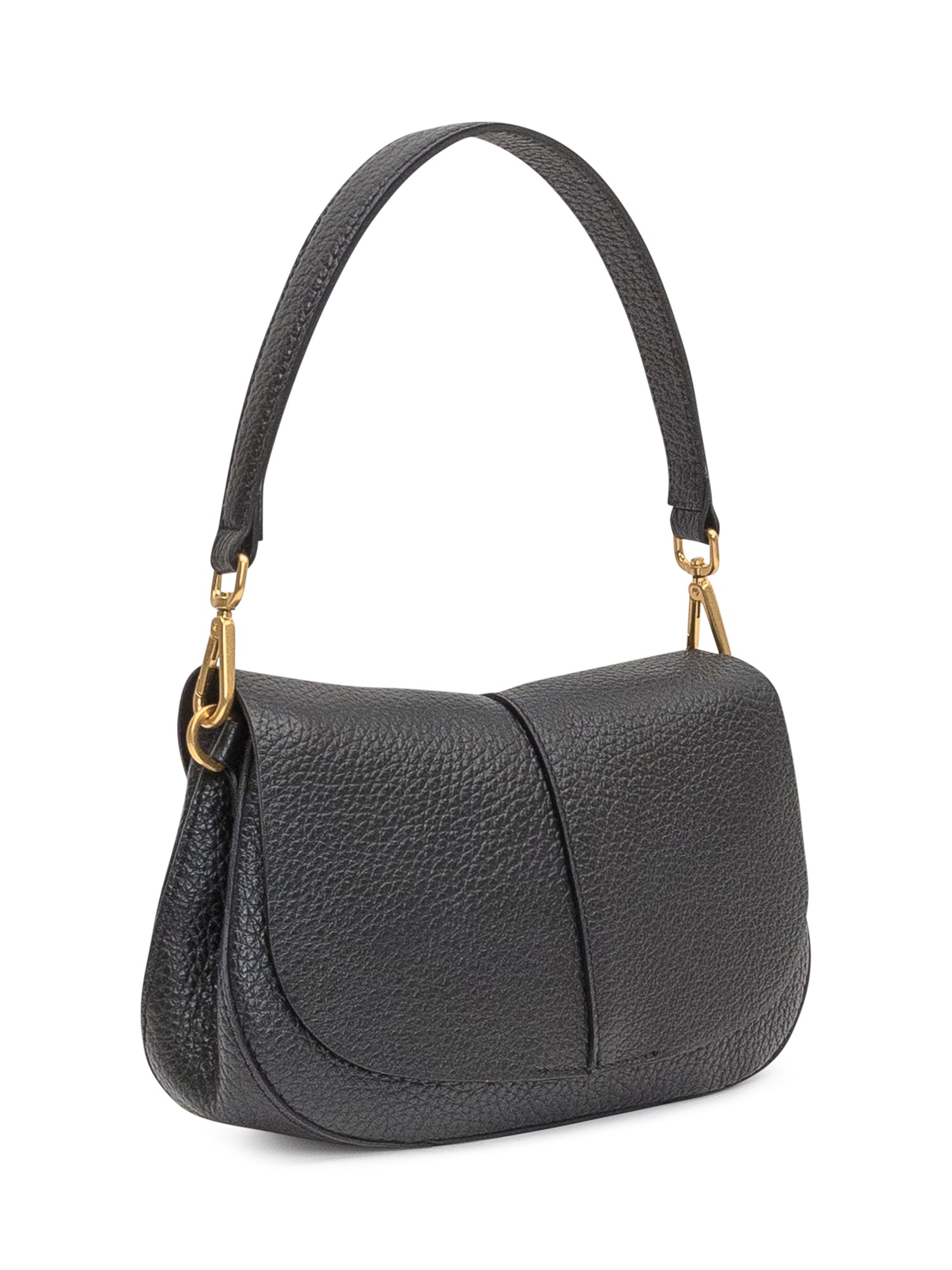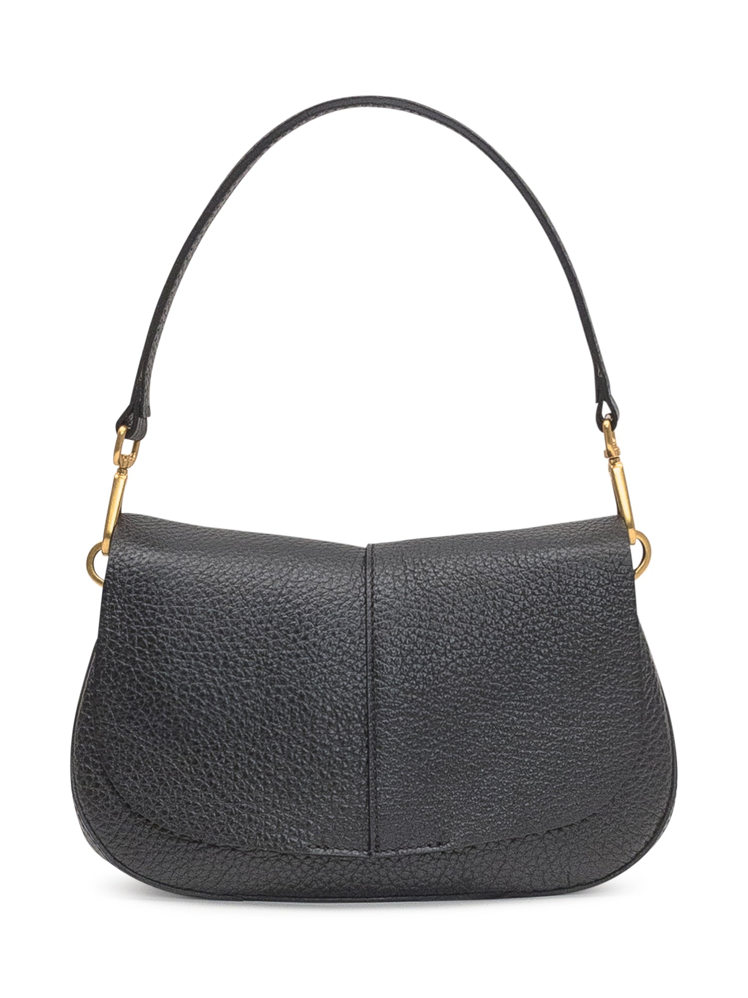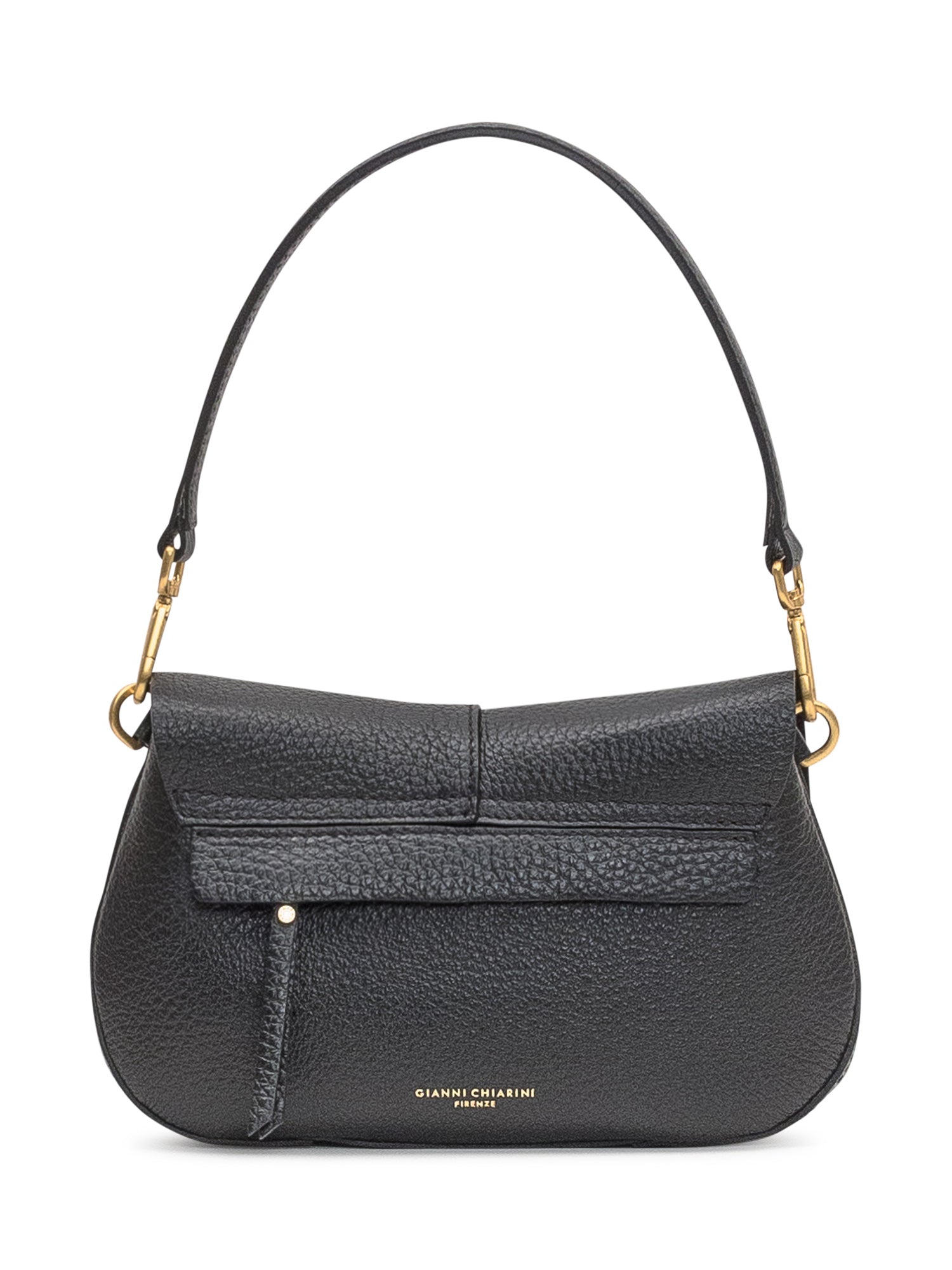 Gianni Chiarini shoulder bag in black pebbled leather with short handle and gold-tone details.