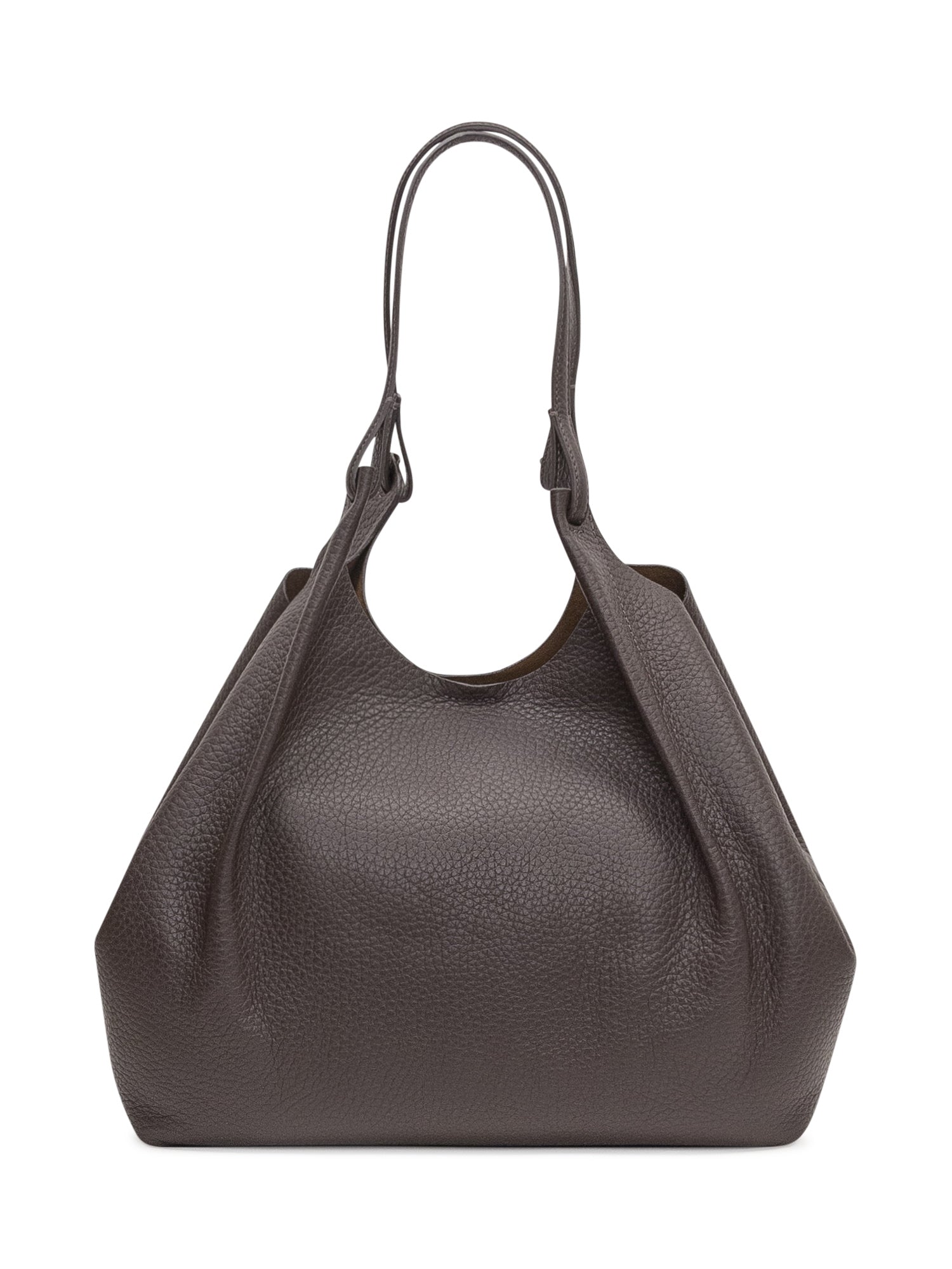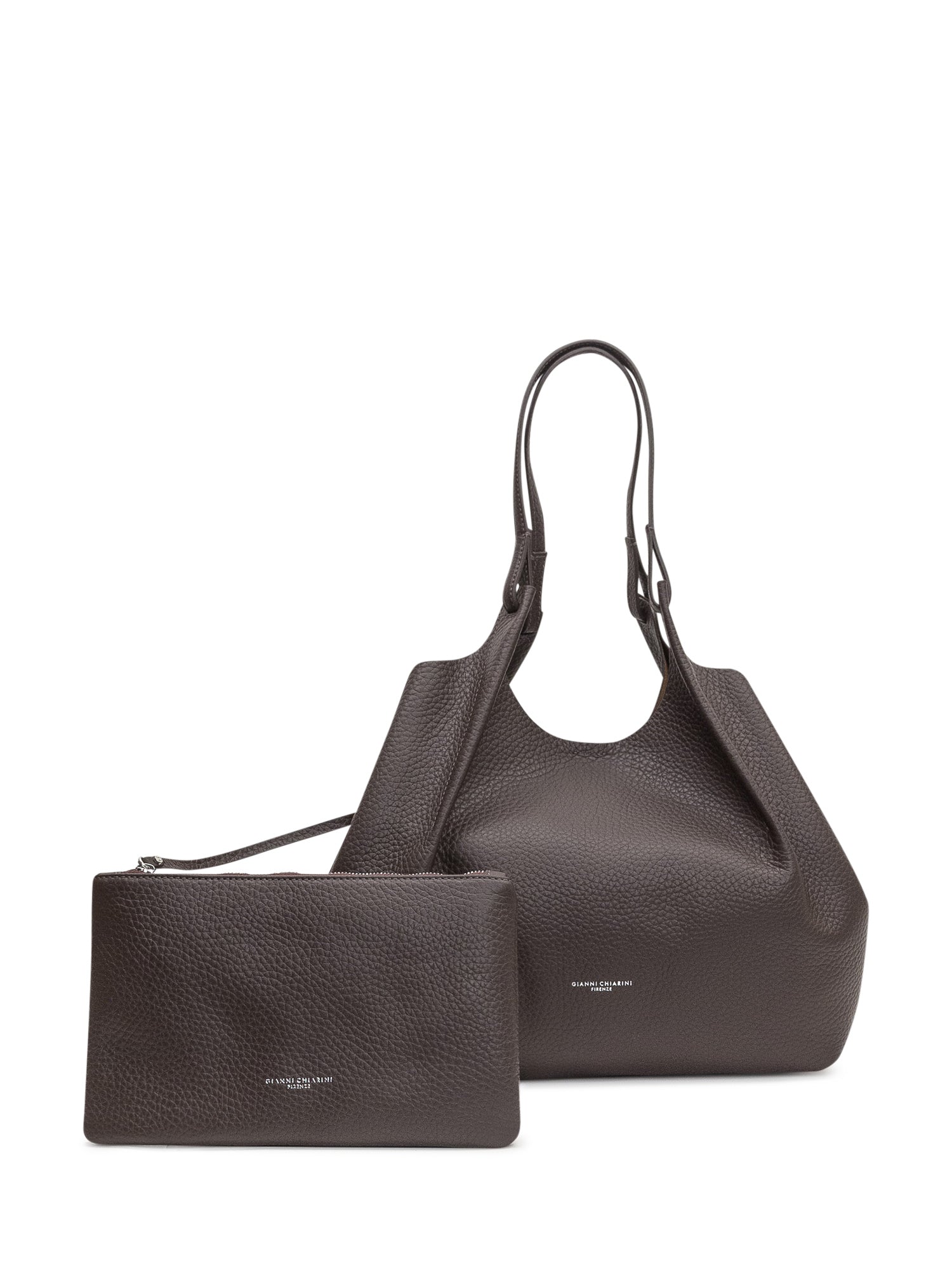 Gianni Chiarini bag in chocolate pebbled leather with soft structure and knotted handles.