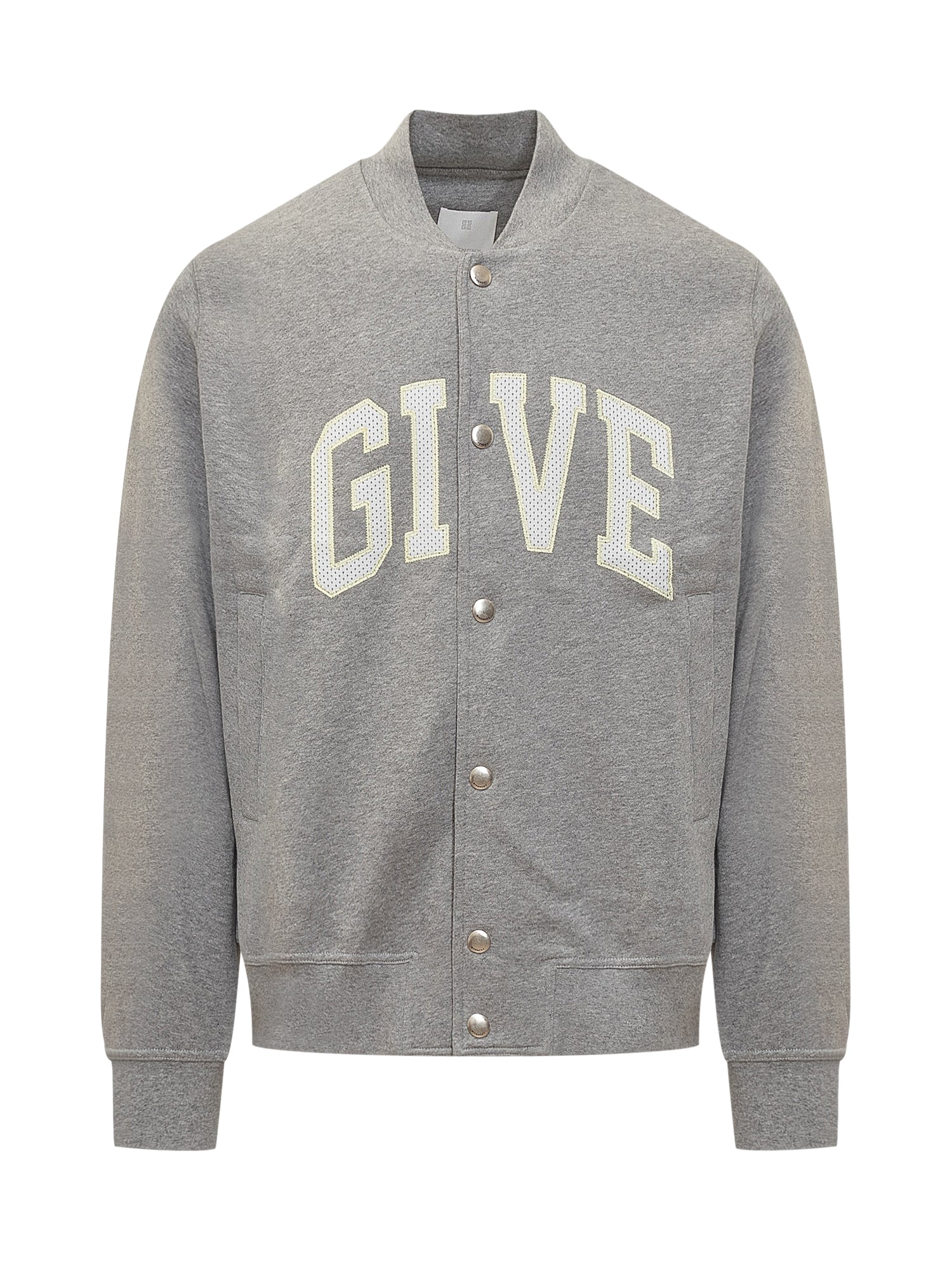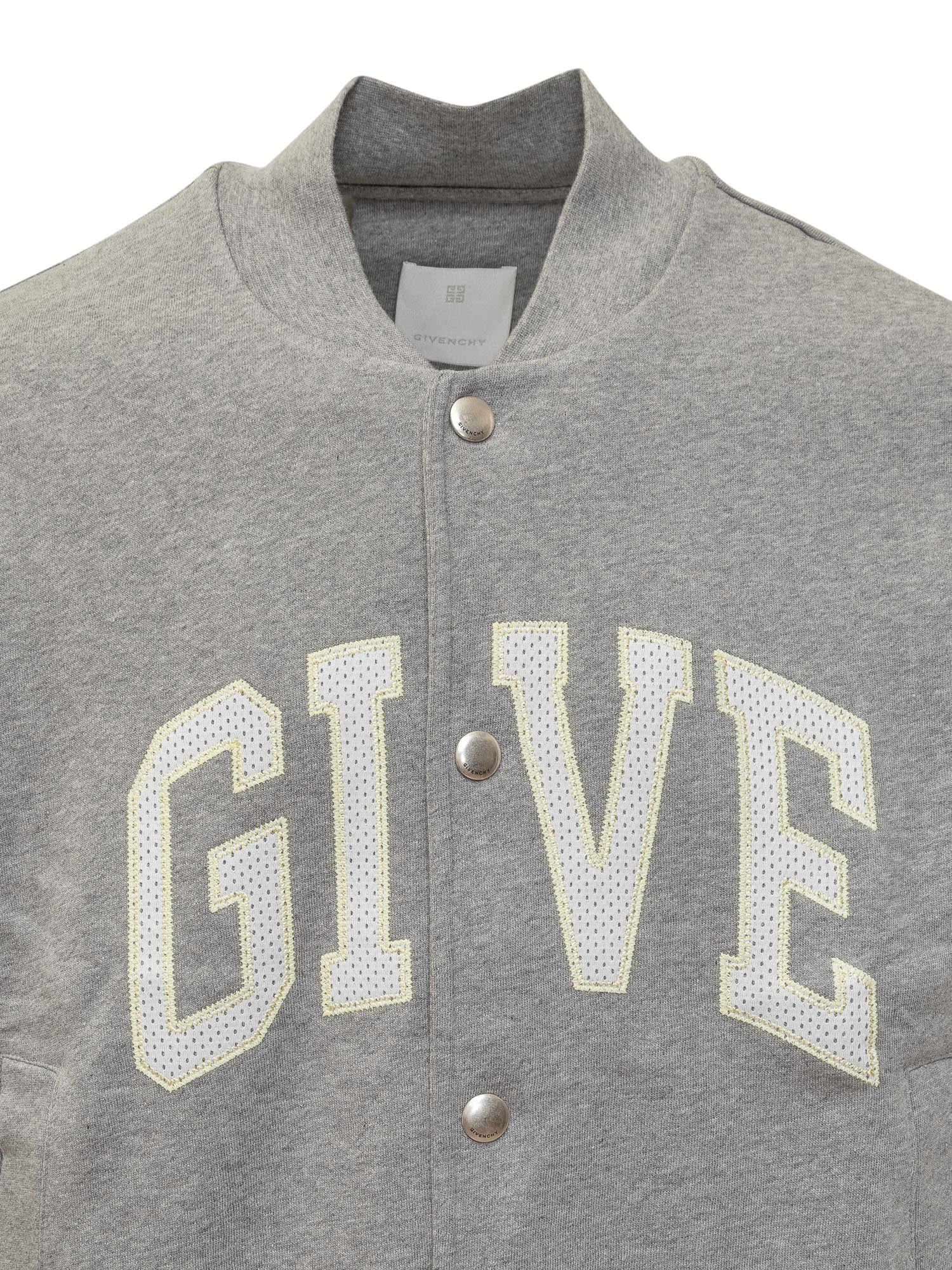 Long-sleeved cotton sweatshirt. High neck. Button fastening. Two pockets on the front. Givenchy logo with perforated effect on the front and back.