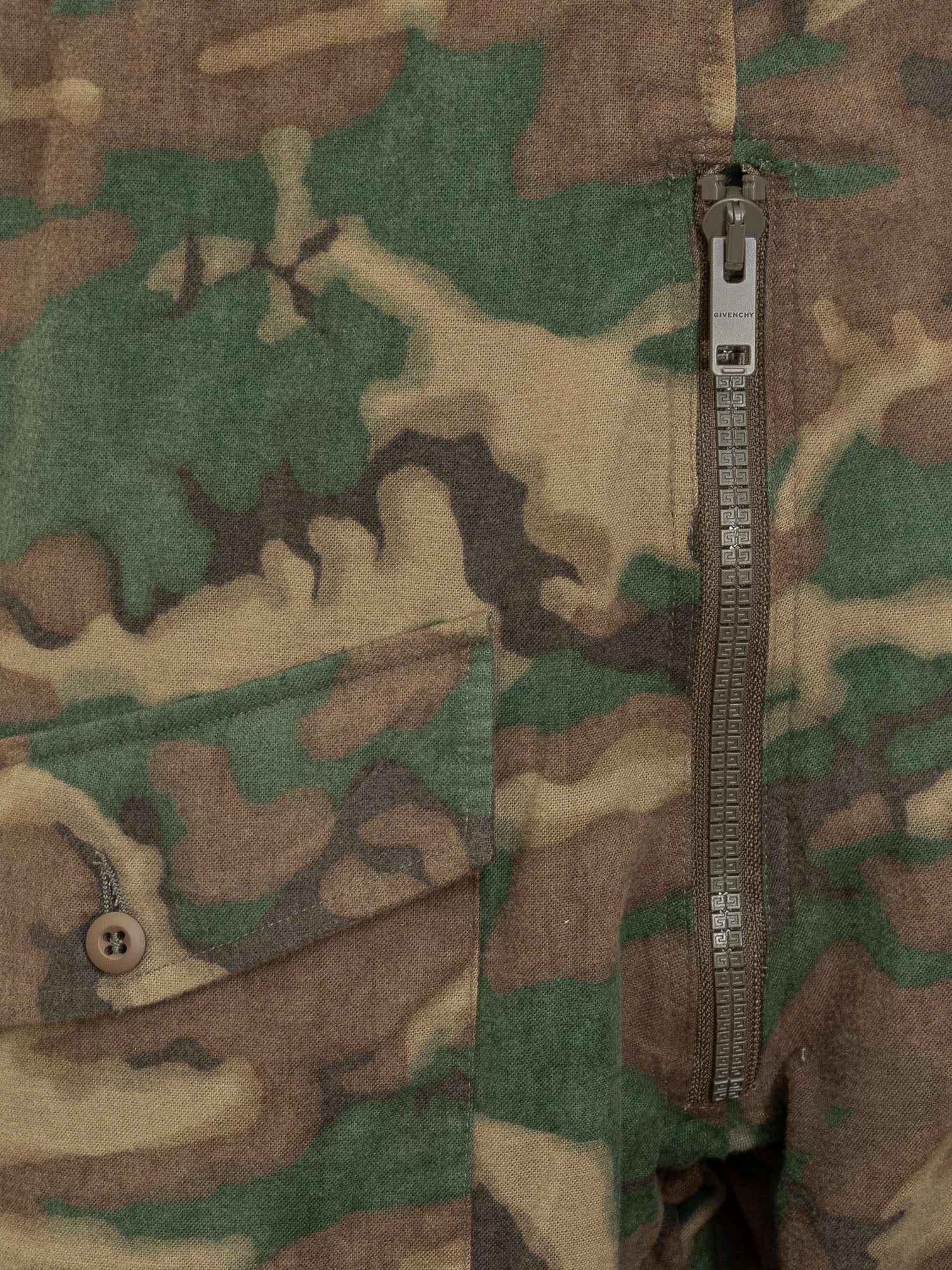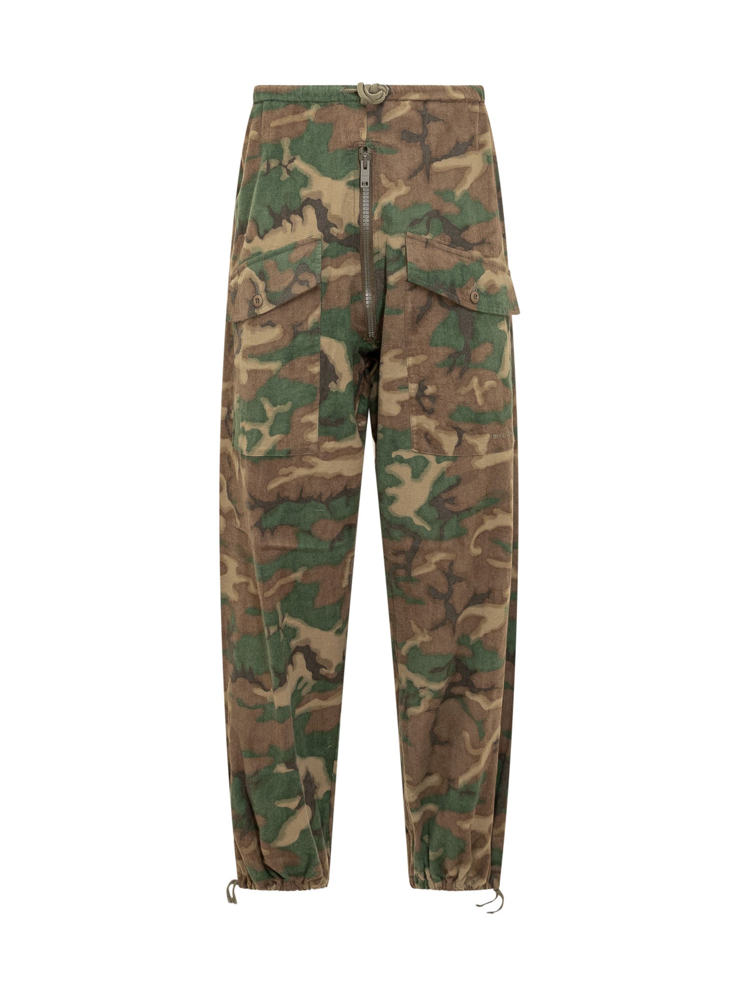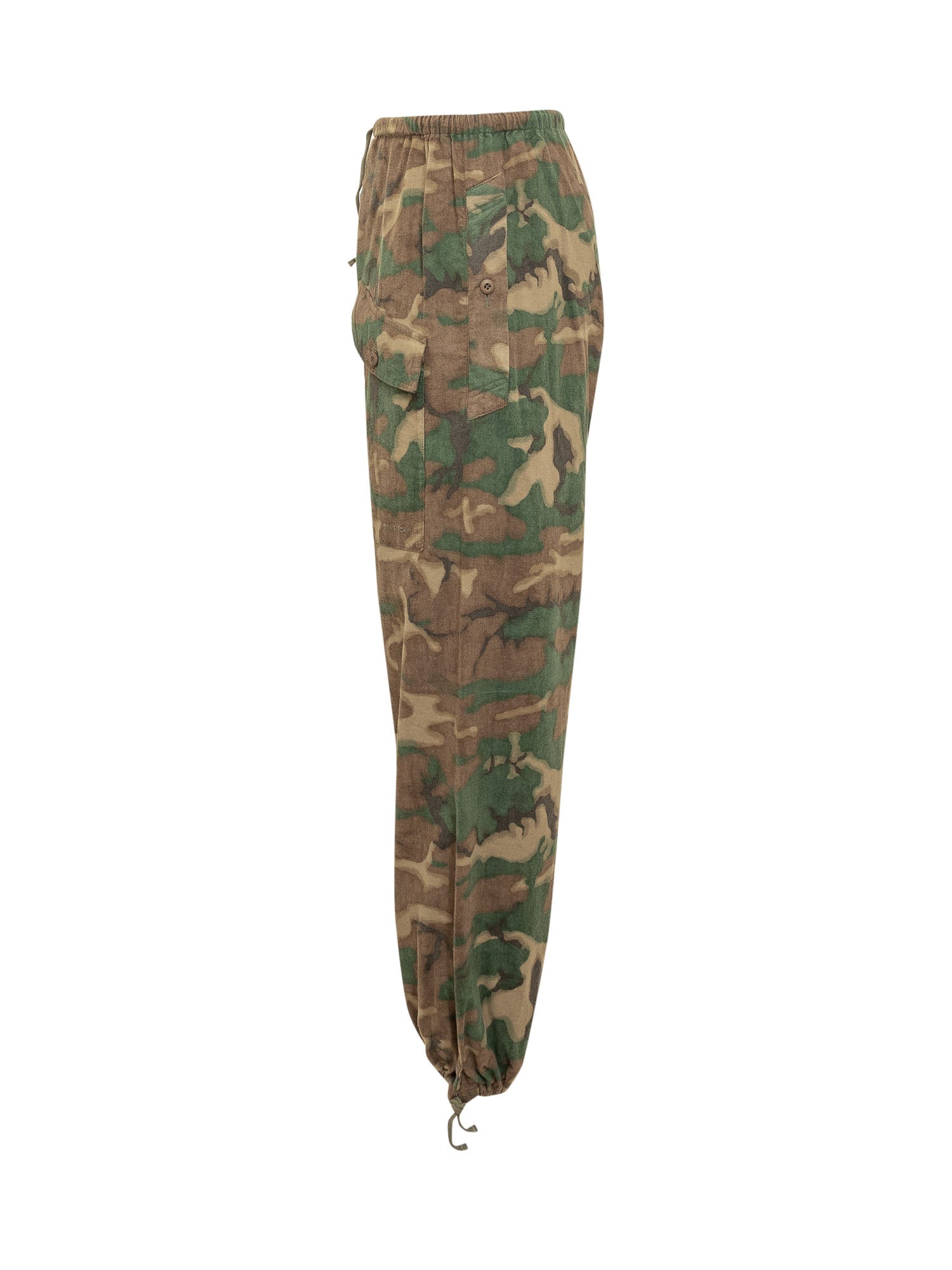 Long camouflage pants. Zip and drawstring closure. Front and side pockets. Drawstring at the ankles.