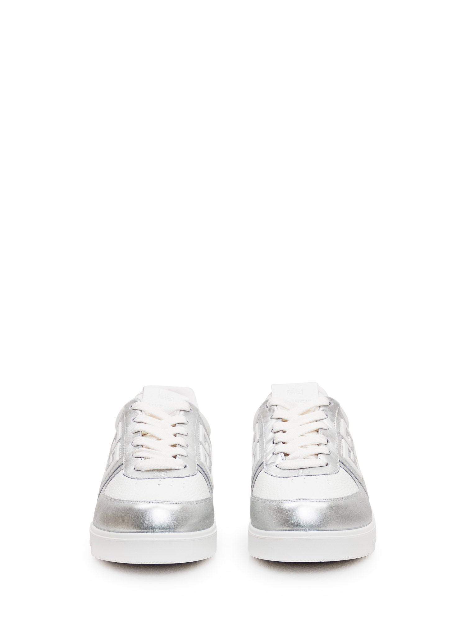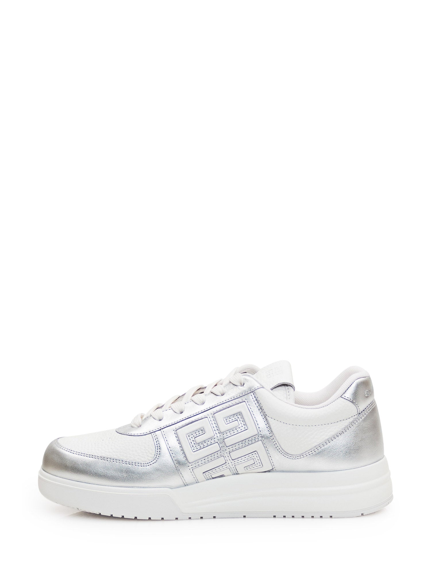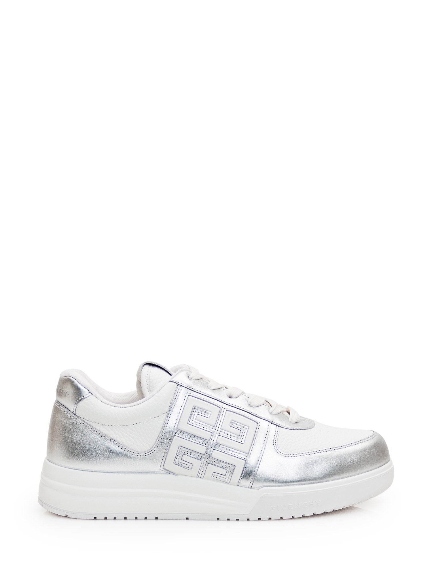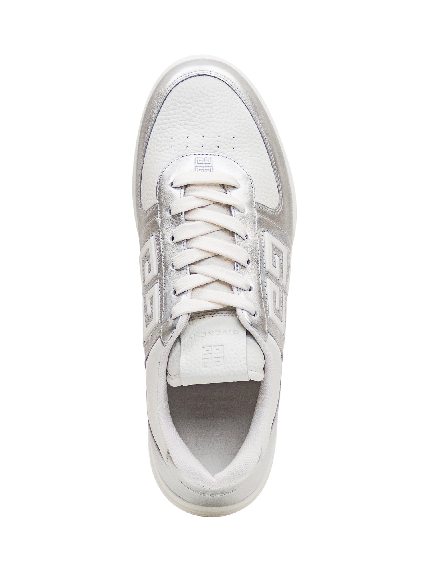 Silver calfskin sneaker. Closure with laces. Leather inserts on the tongue and toe. GIVENCHY signature on tongue and heel. 4G logo on both sides.