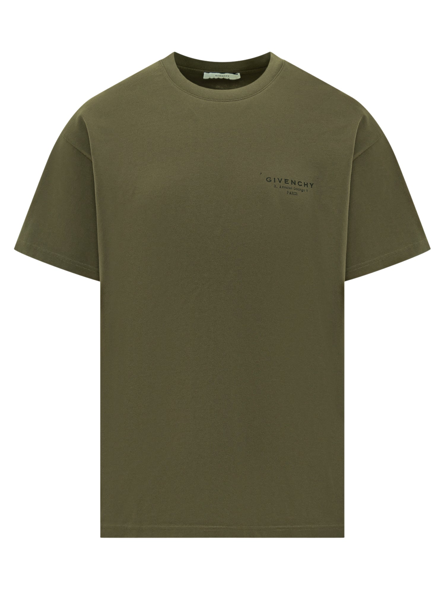 Military green Givenchy cotton t-shirt with printed logo on the chest.