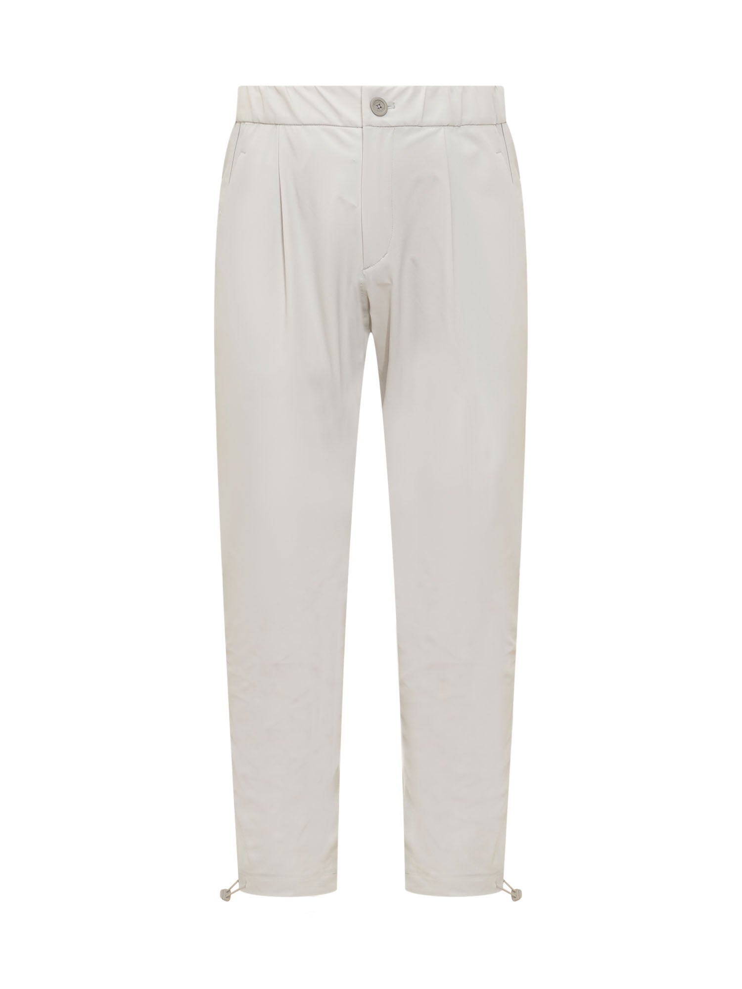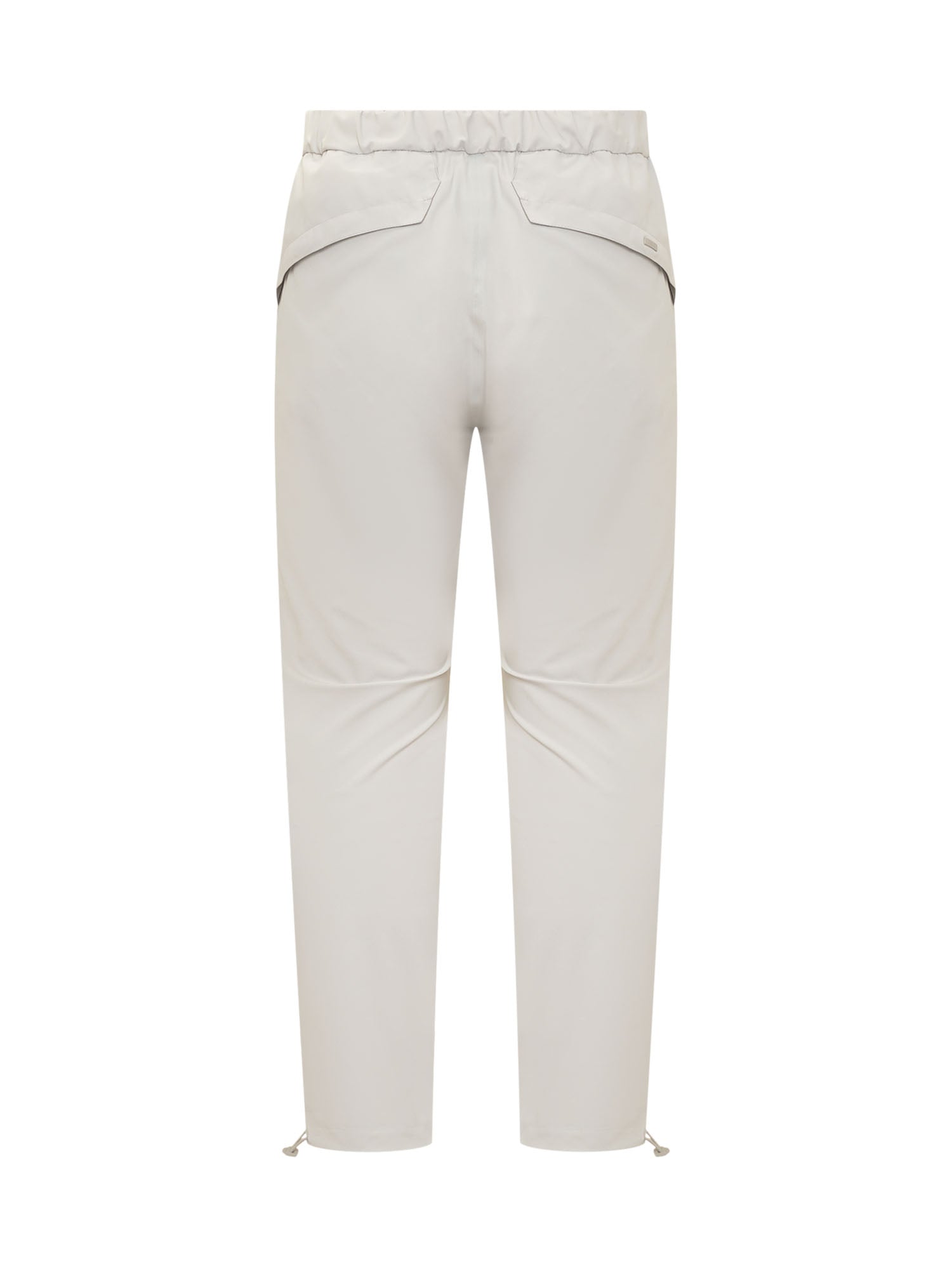 Long trousers. Button and zip closure. Welt pockets on the sides. Flap pockets on the back. Adjustable drawstring at the ankles.