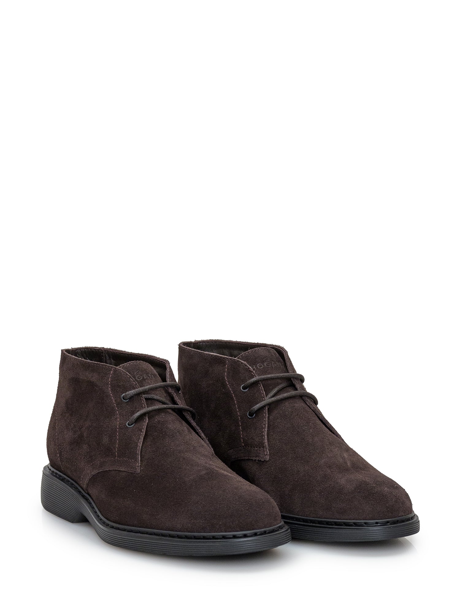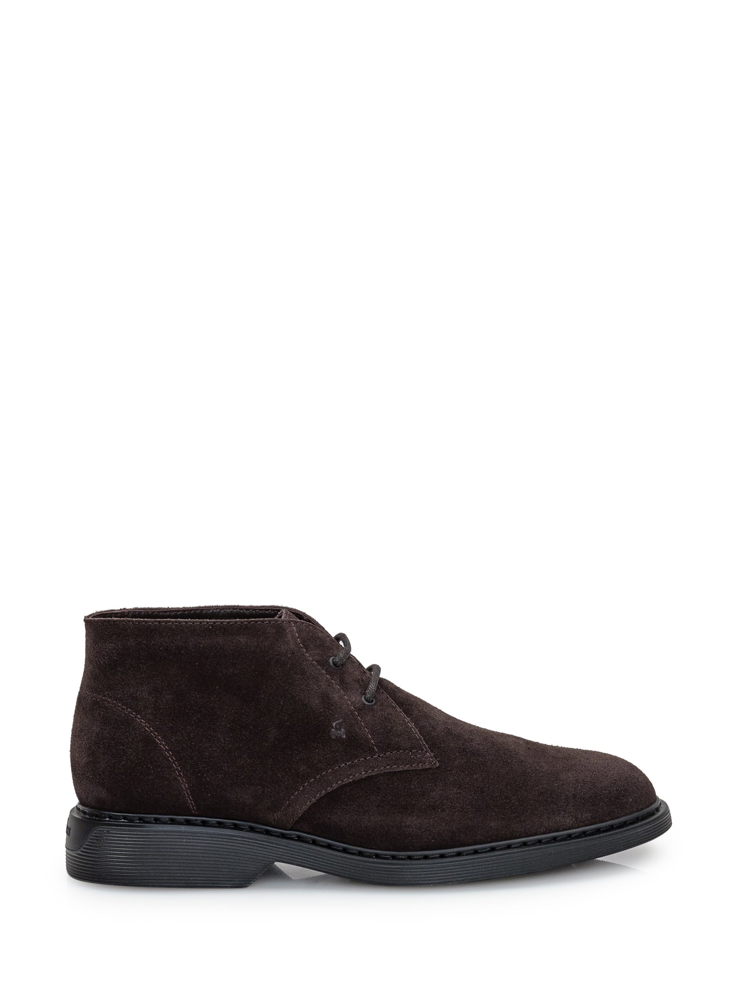 Suede lace-up. Closure with laces. Round toe. Logo embossed on the heel.