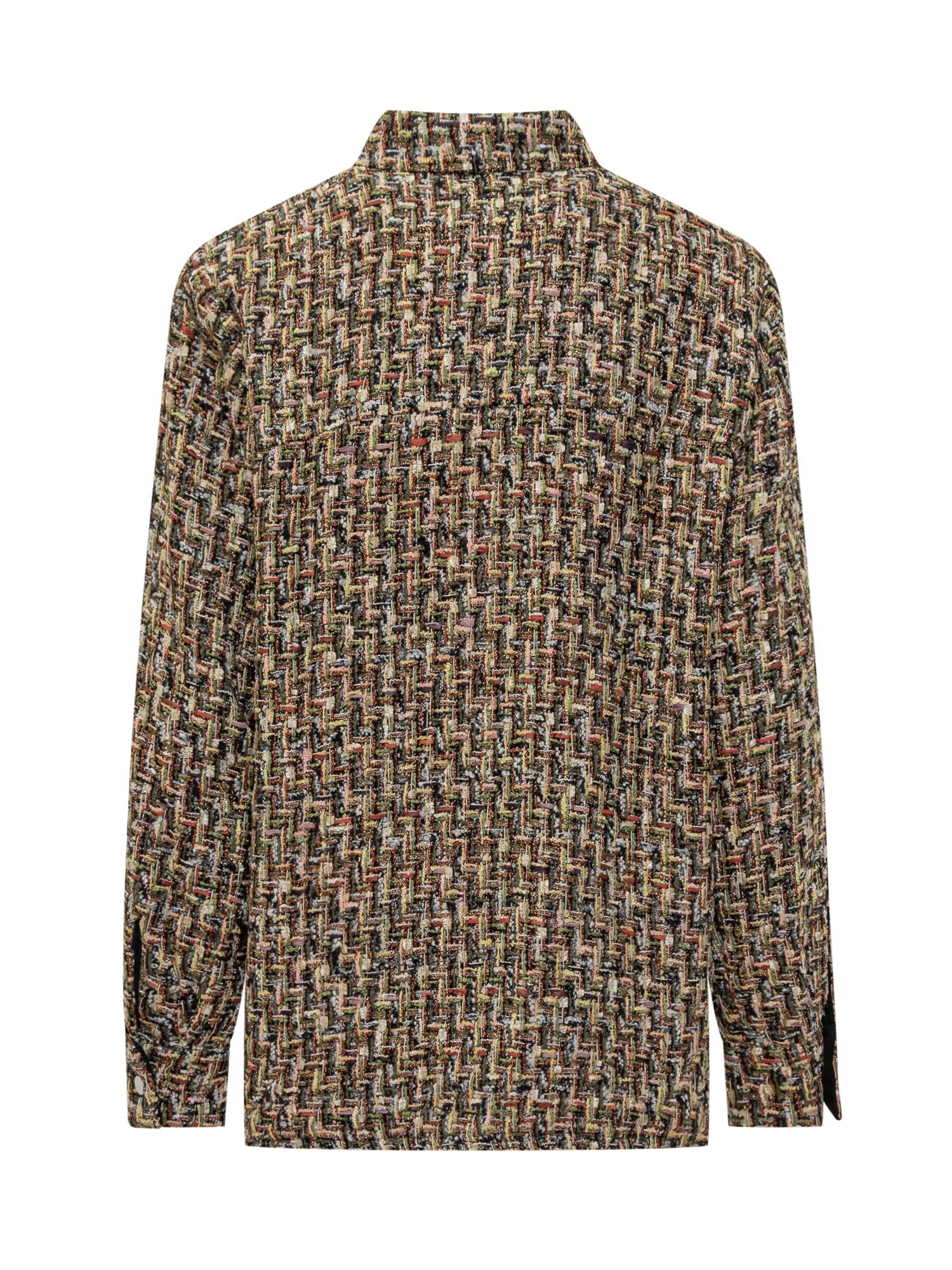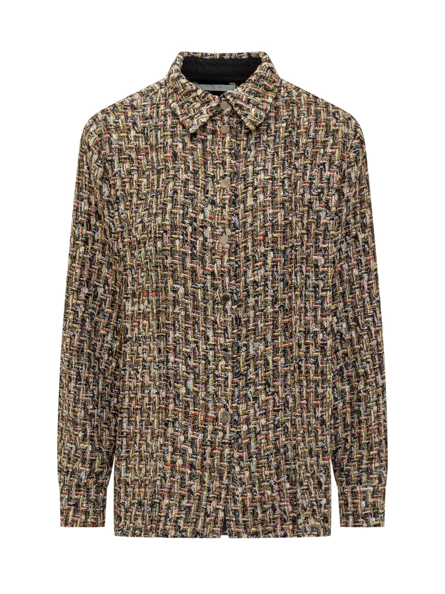 IRO multicolor tweed shirt featuring snap button closure and a classic collar.