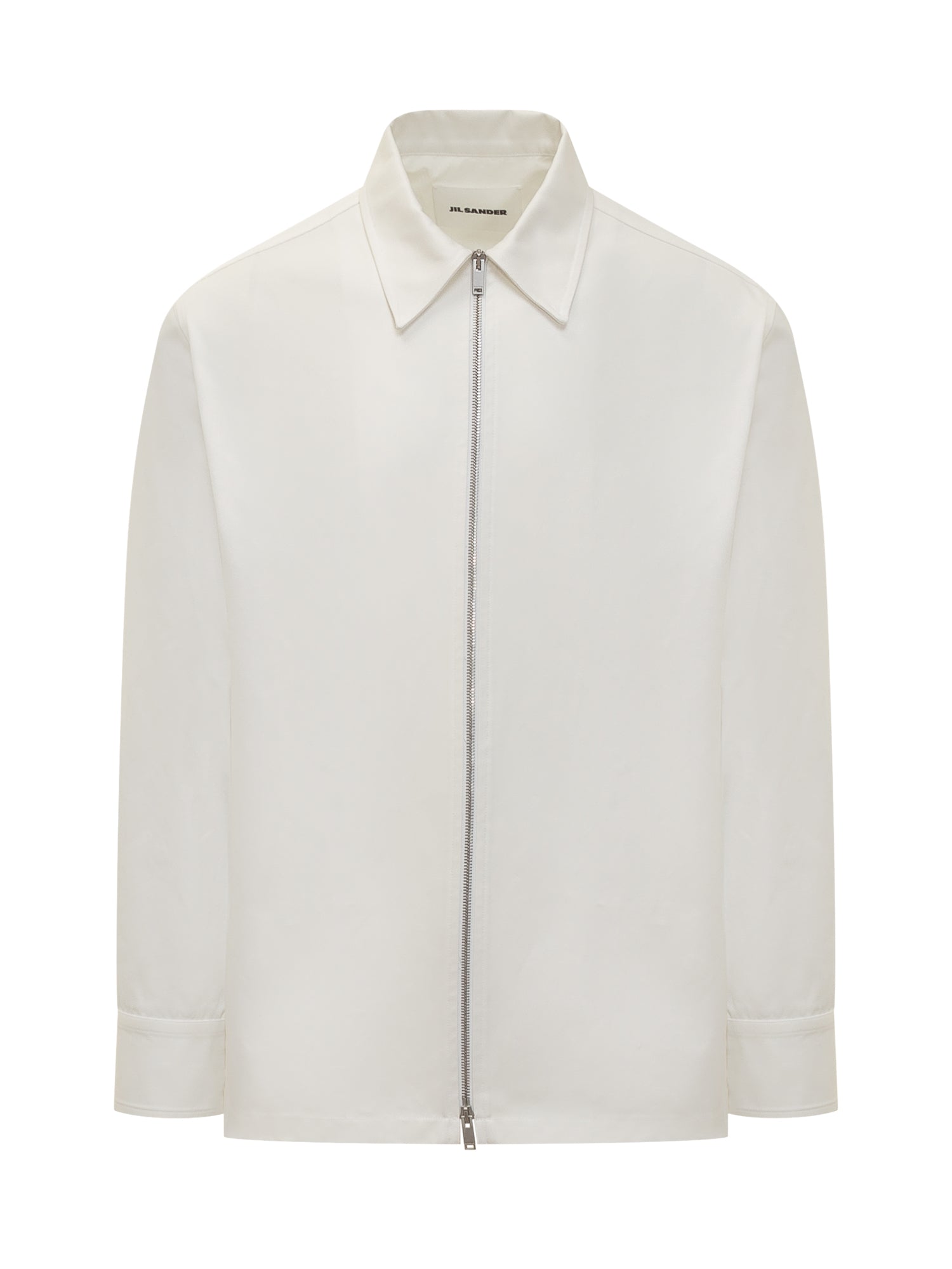 Long-sleeved shirt. Classic collar. Zipper closure. Button cuffs.