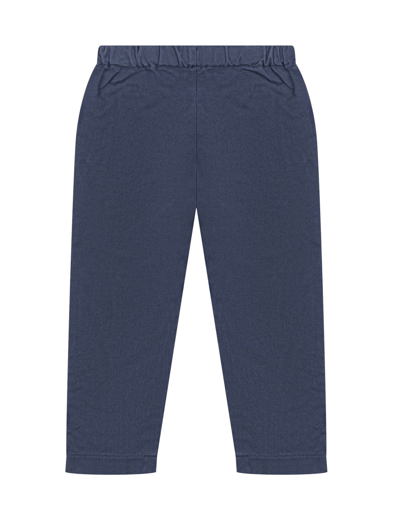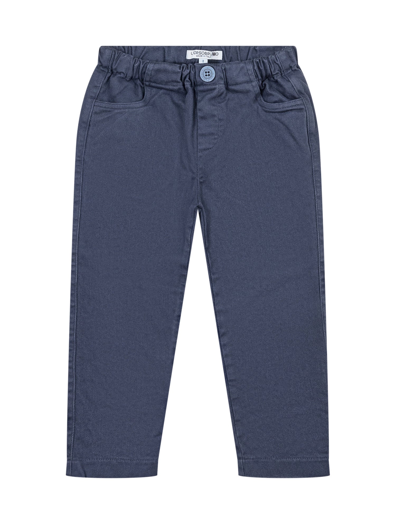 L Orso Bruno soft cotton pants in blue with elastic waistband and button.