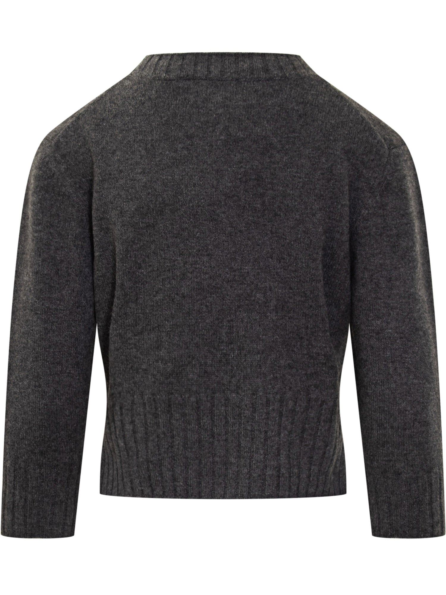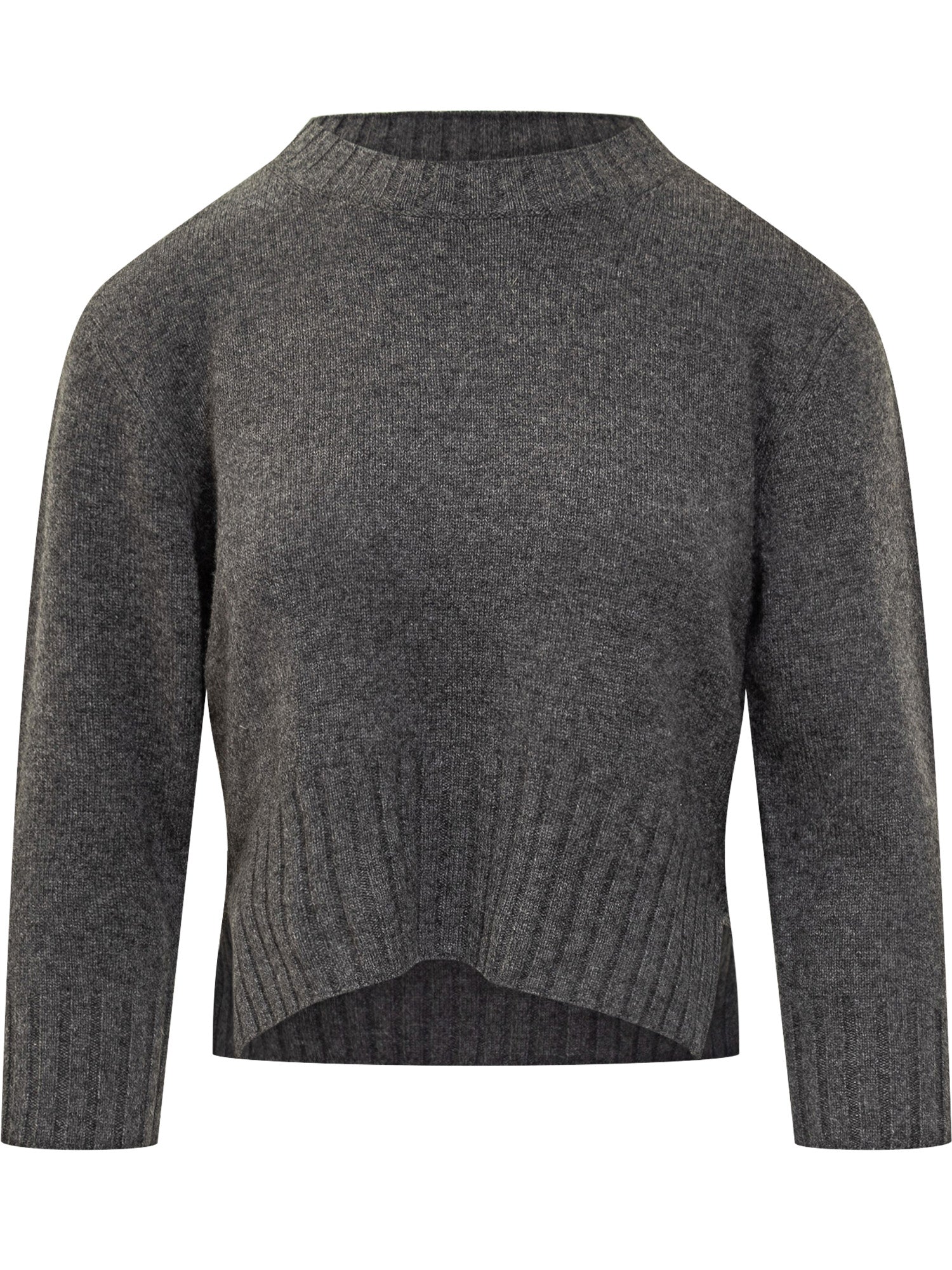 Grey sweater by Loulou Studio crafted from 100% pure cashmere. Featuring a relaxed silhouette with crew neck, extended back hem, and ribbed trims.