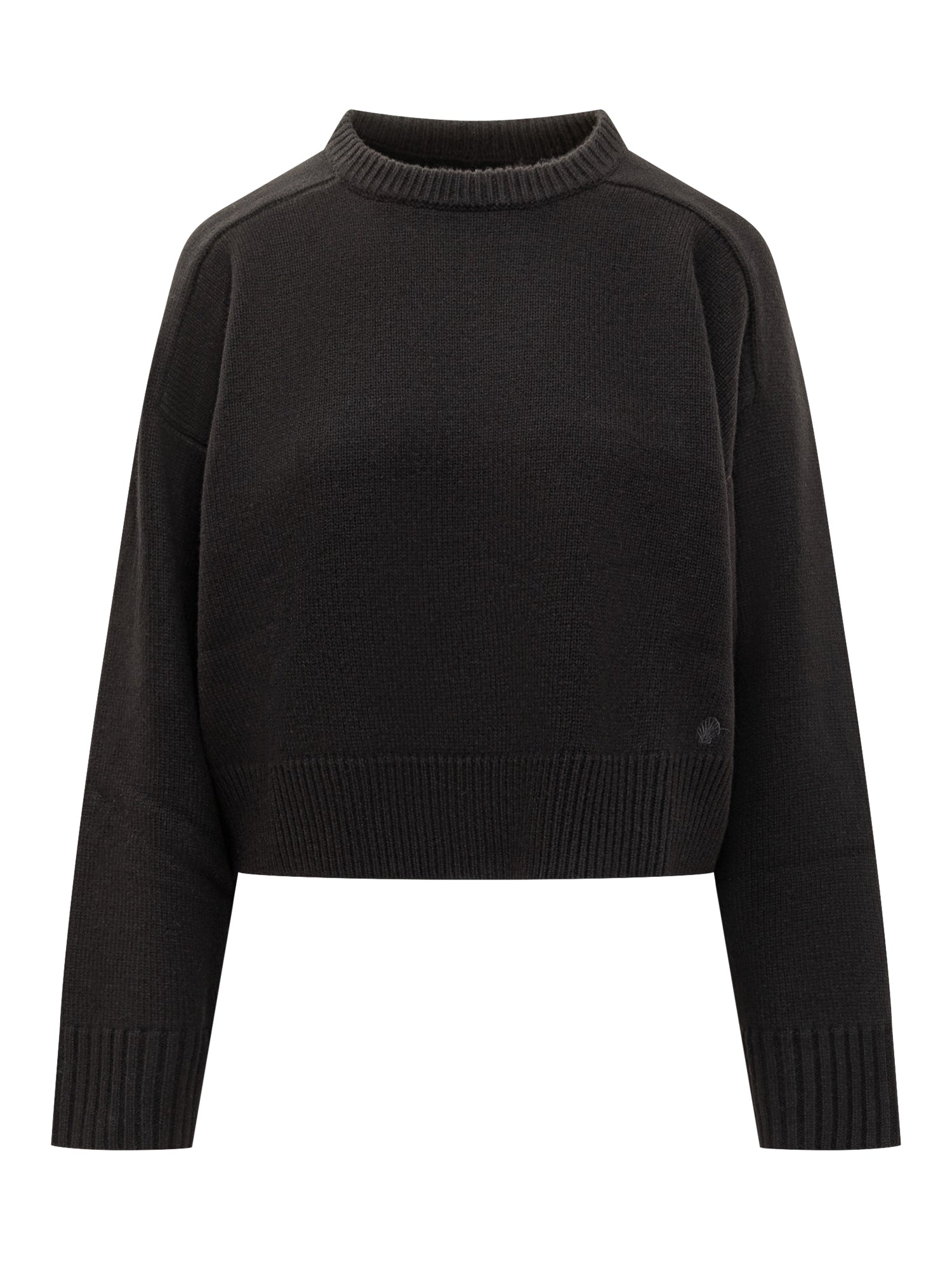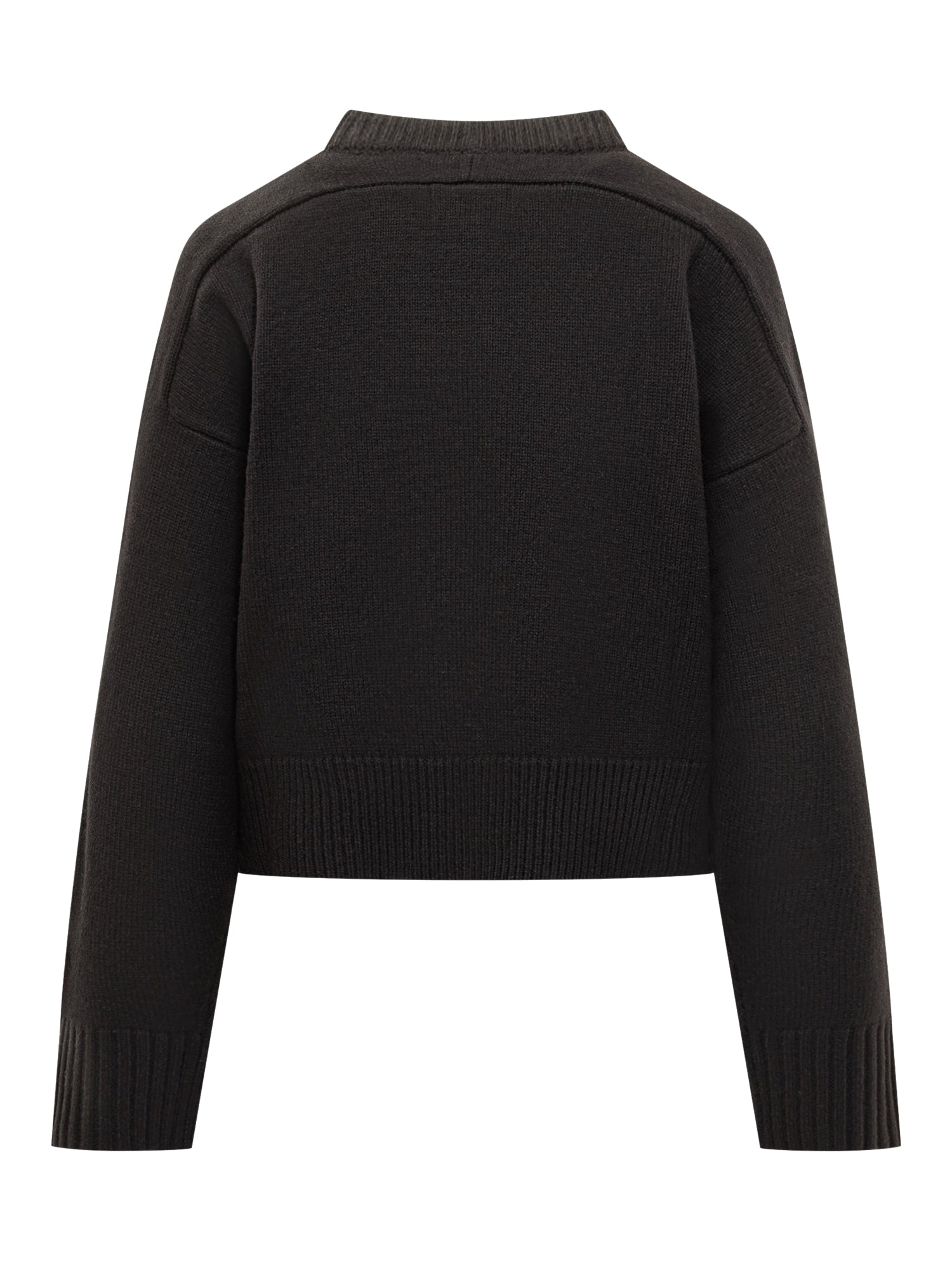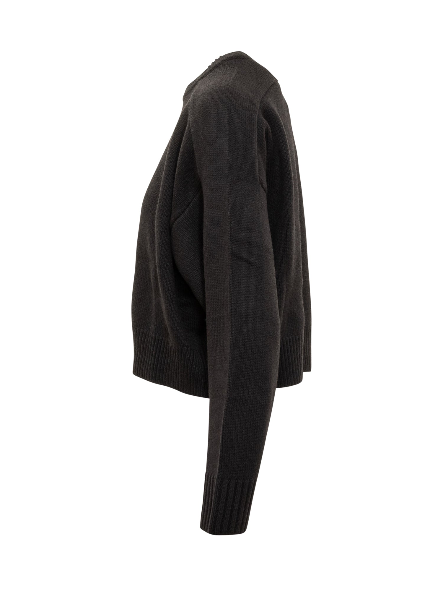LouLou Studio black wool sweater with crew neck and cropped cut. Minimal and versatile design.
