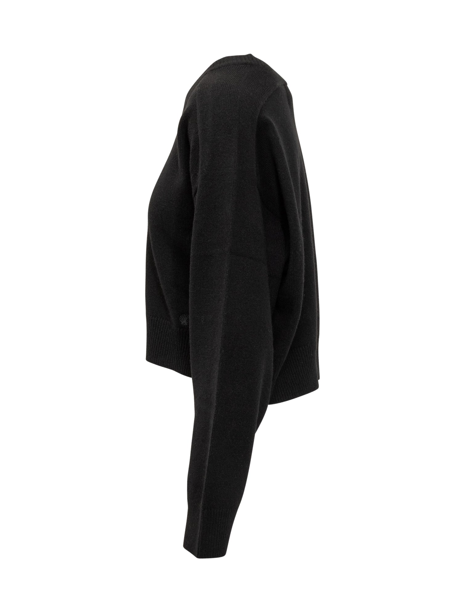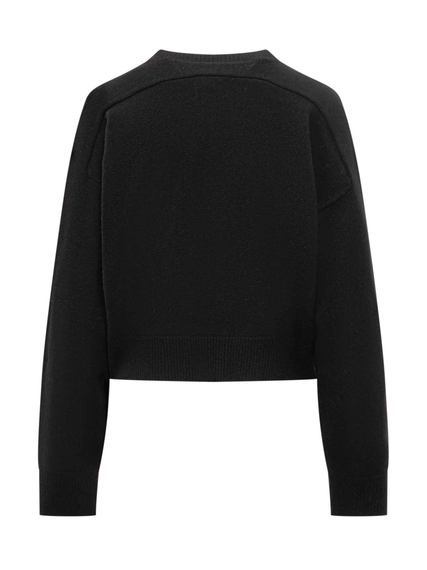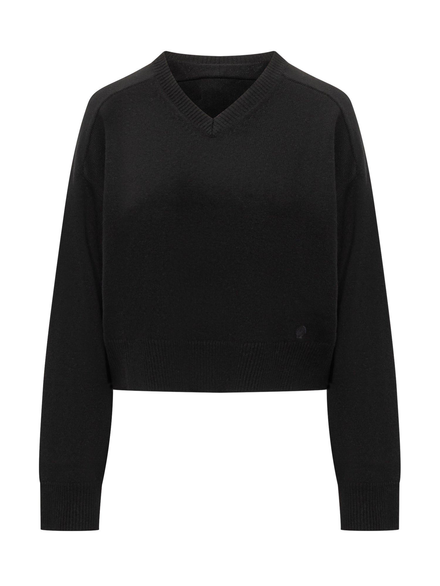 Loulou Studio sweater in soft black cashmere. Featuring a V-neckline and cropped fit, it s a timeless and refined piece.
