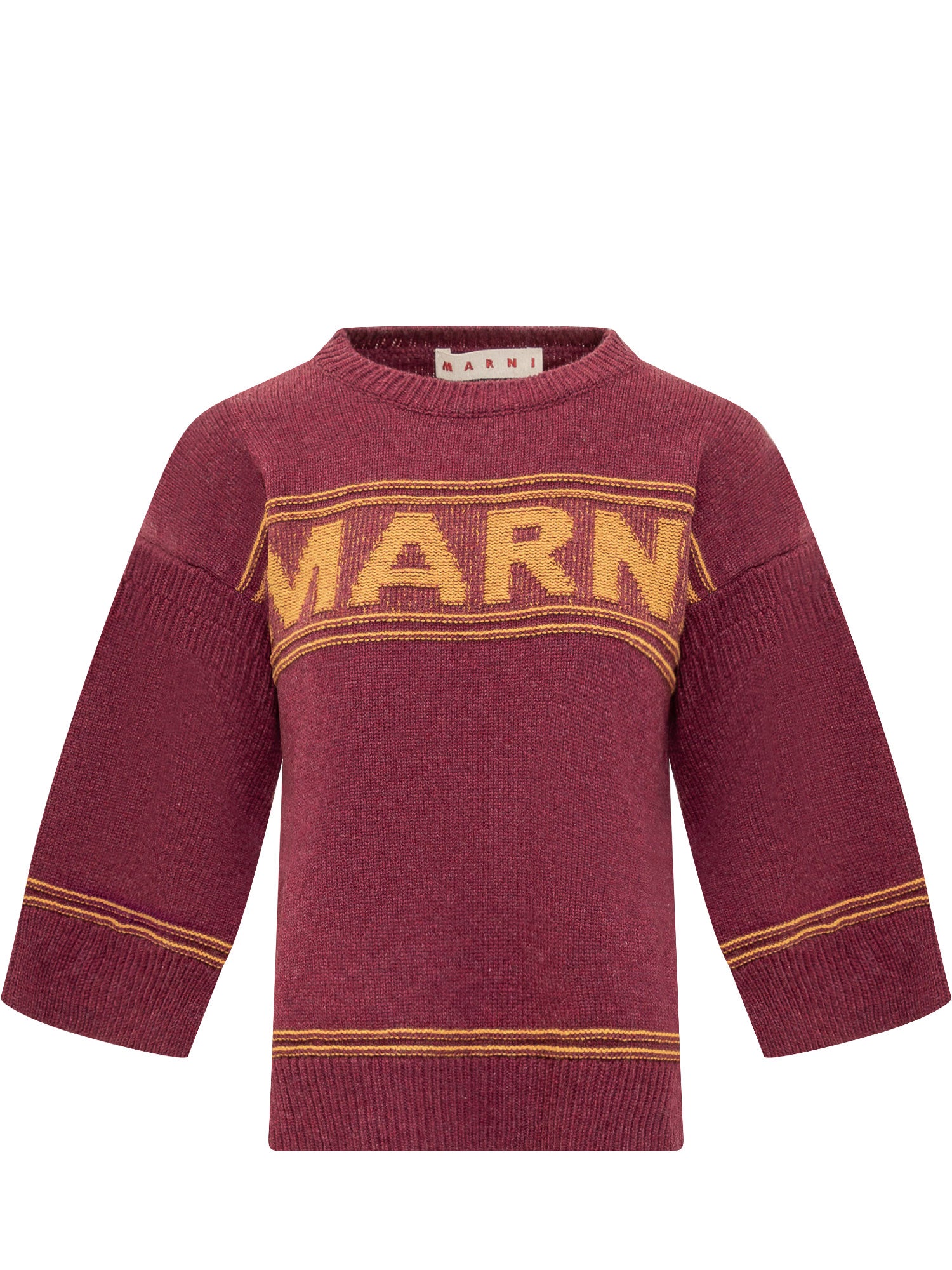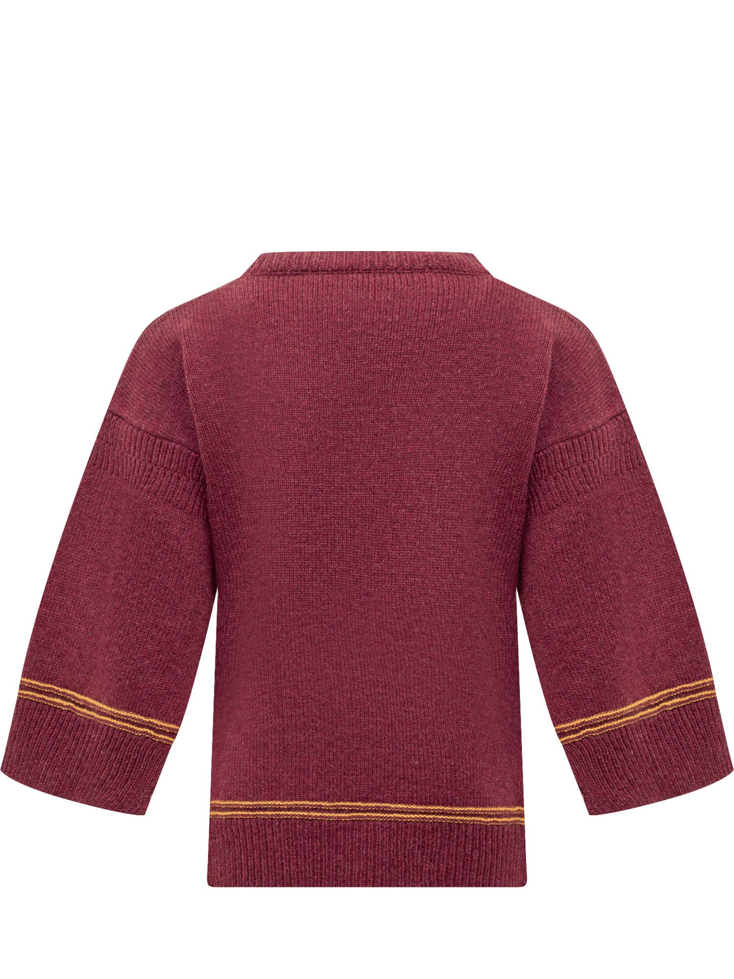 3/4 sleeved shirt. Crewneck. Ribbed striped edges. Embroidered logo on the front. Side slits.