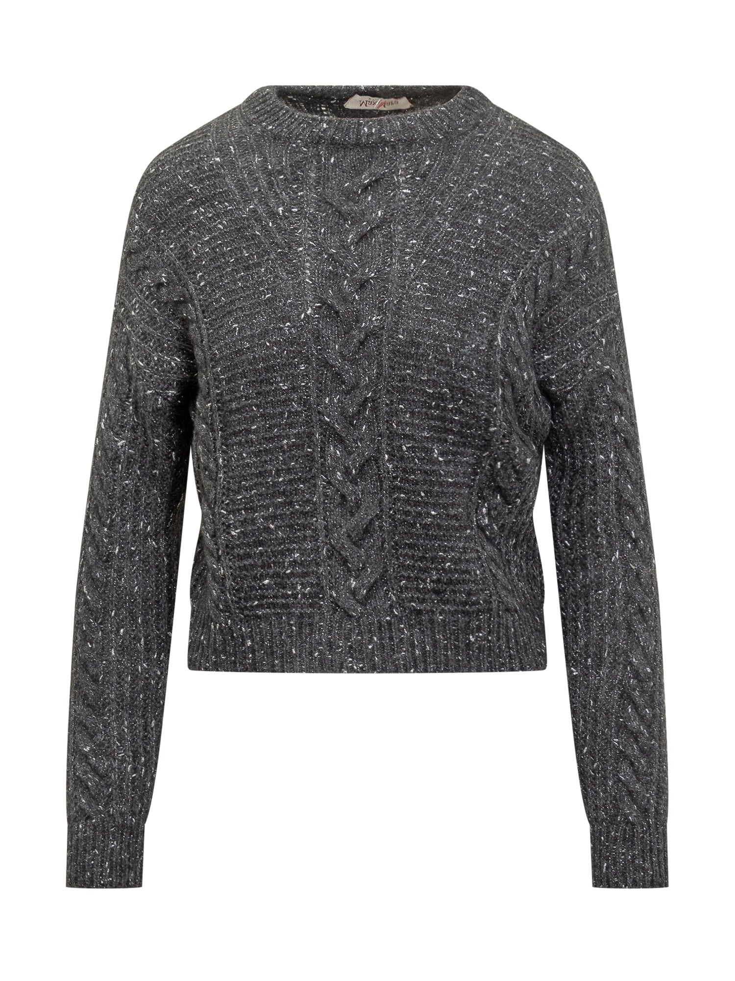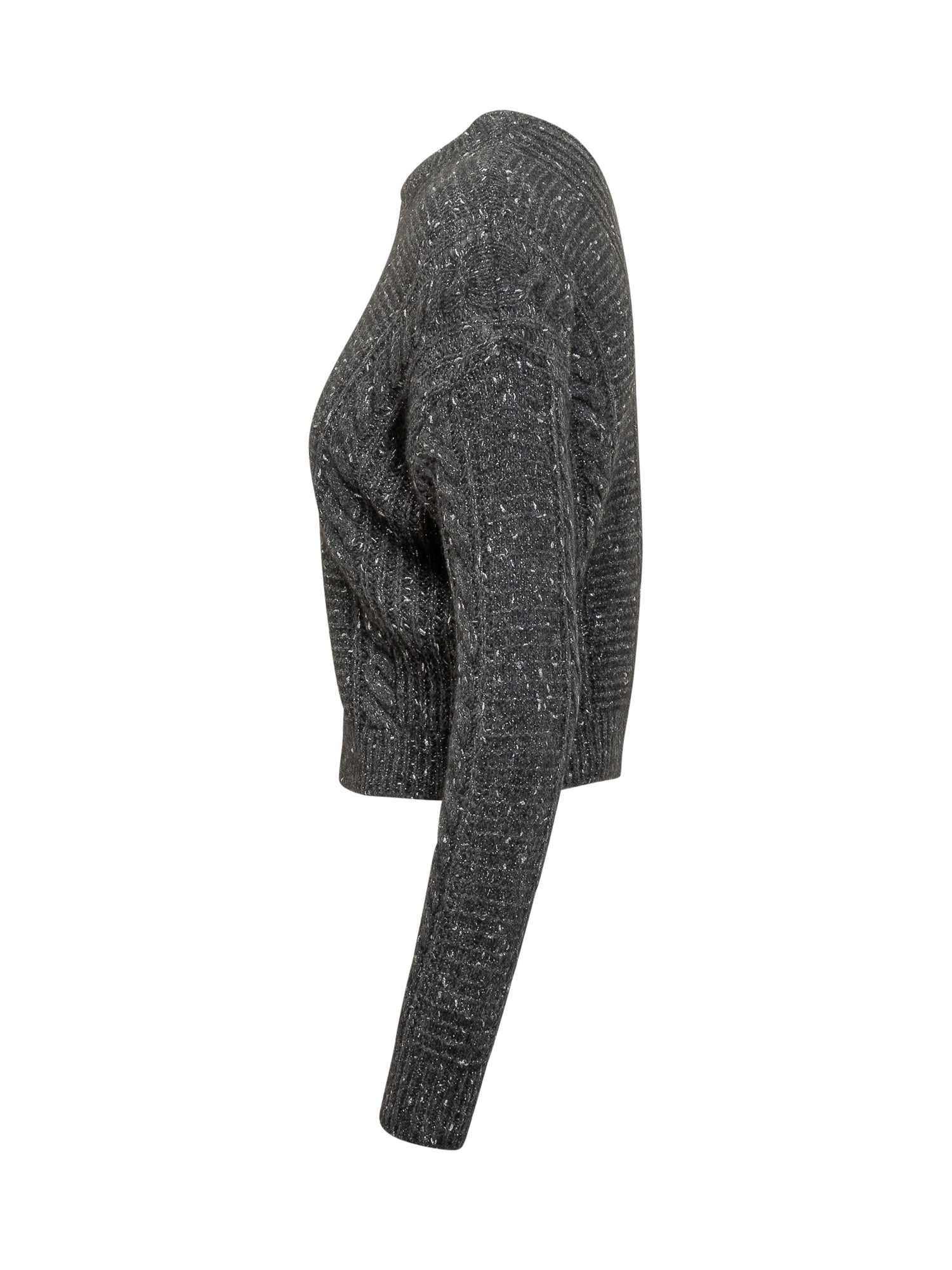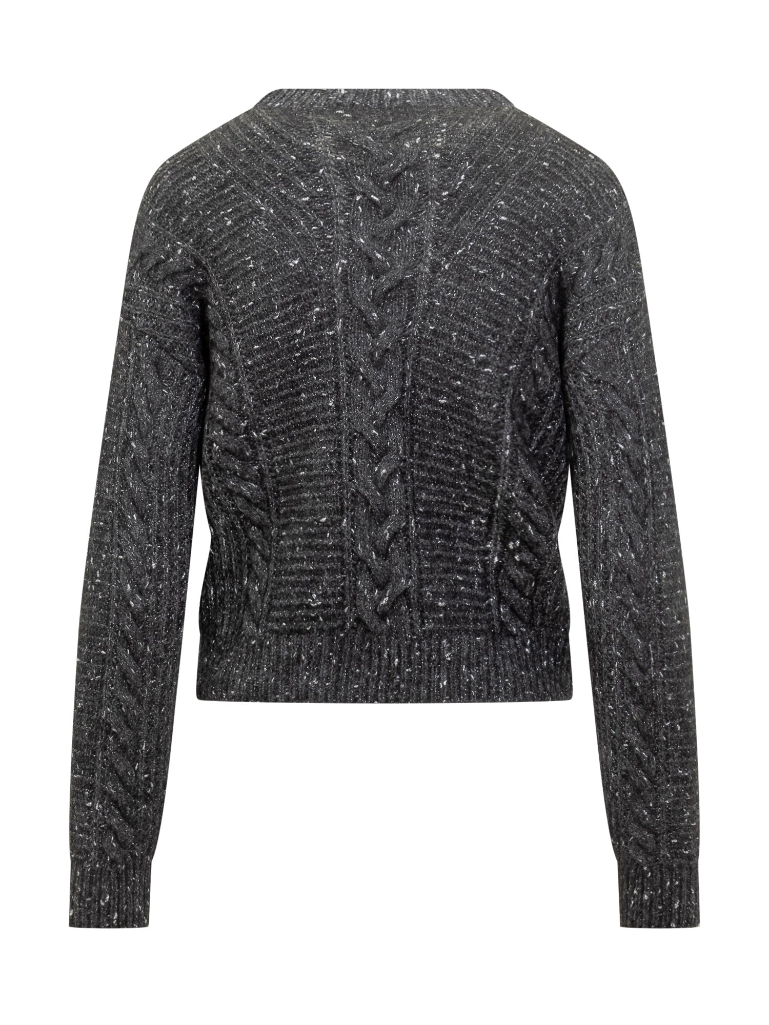 Max Mara Studio grey mélange sweater with cable-knit design. Crew neck with ribbed trims.