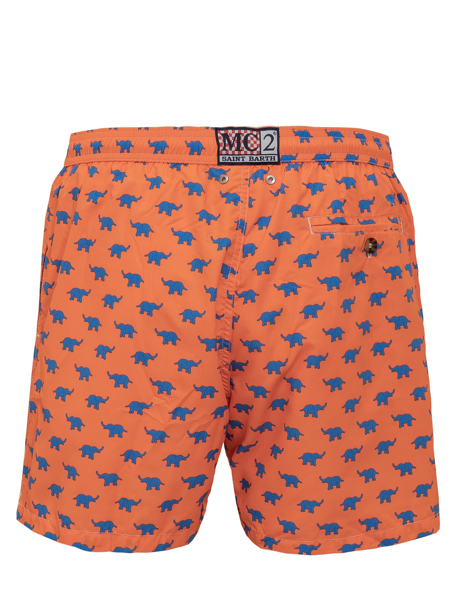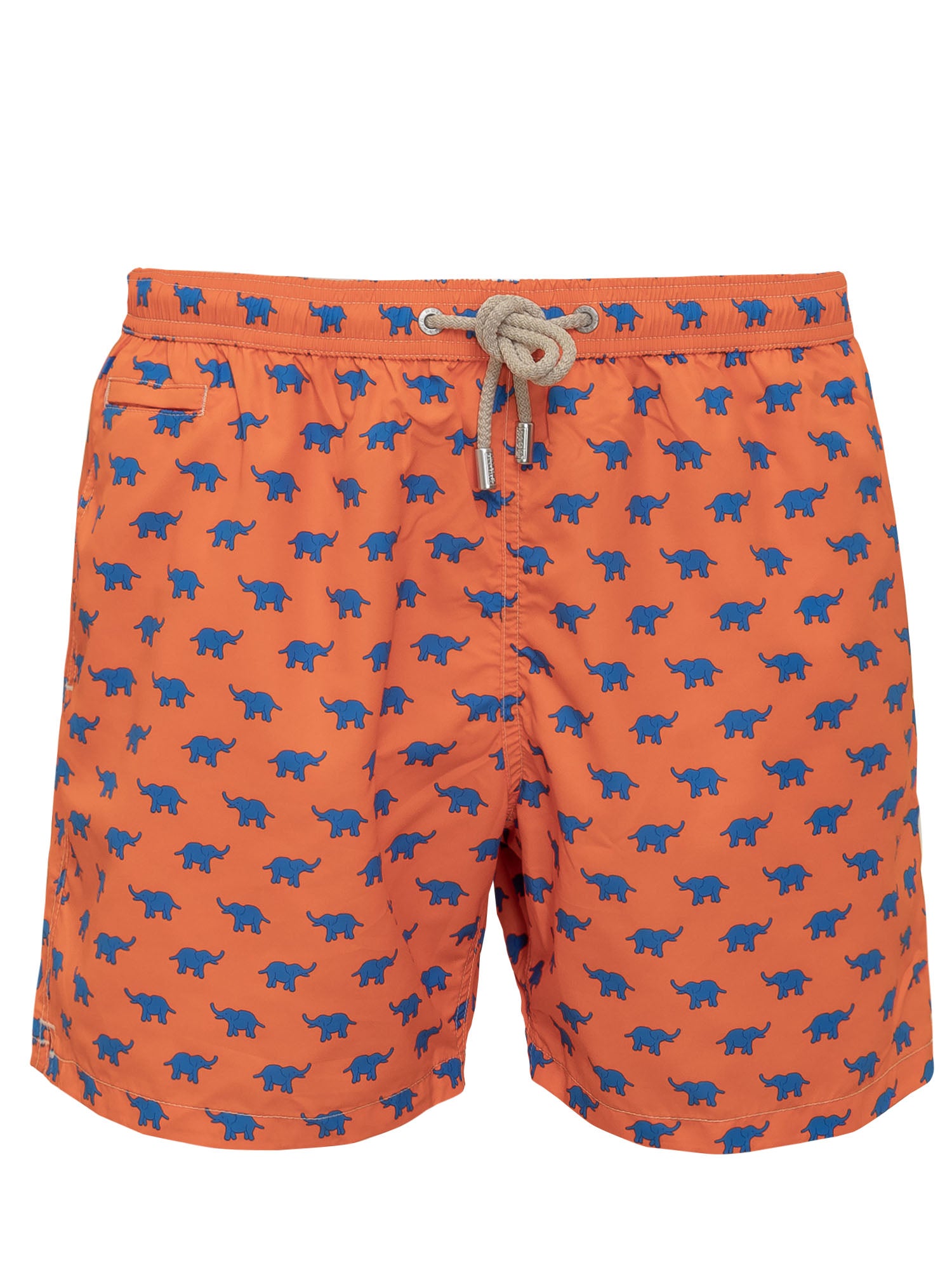 Shorts costume. Drawstring waist. Two side pockets, one on the back. Chest pocket on the front with fleece. Internal mesh. Elephant all-over pattern. Logo patch on the back.