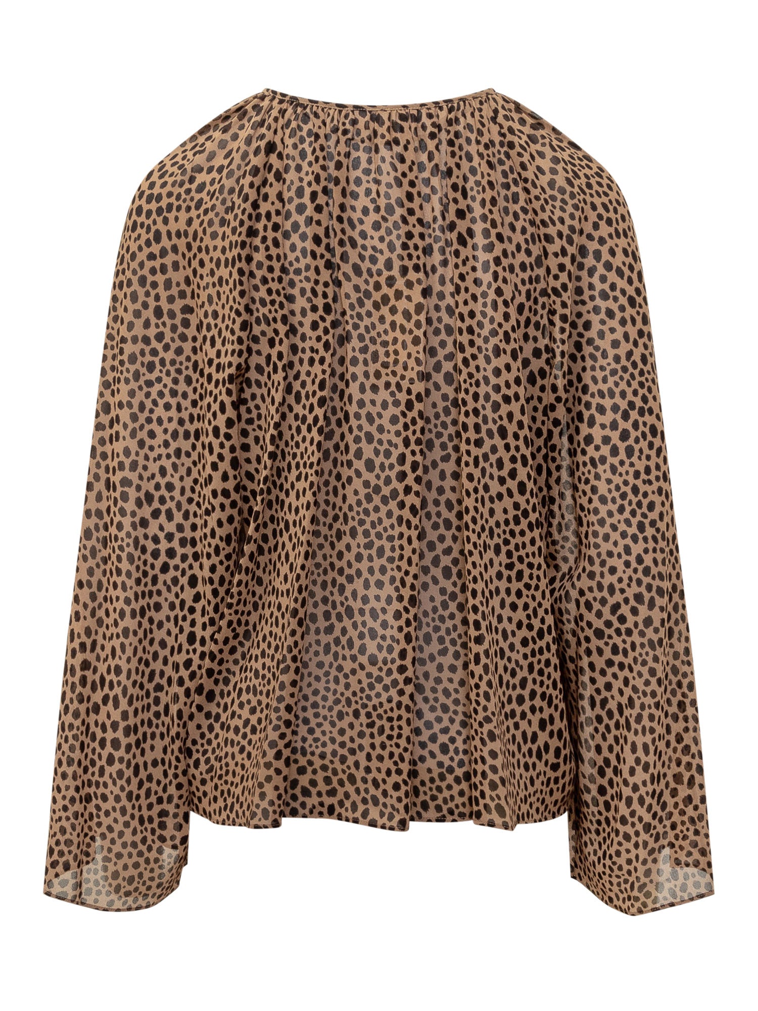 Brown top. V-neck. Tie fastening at neckline.