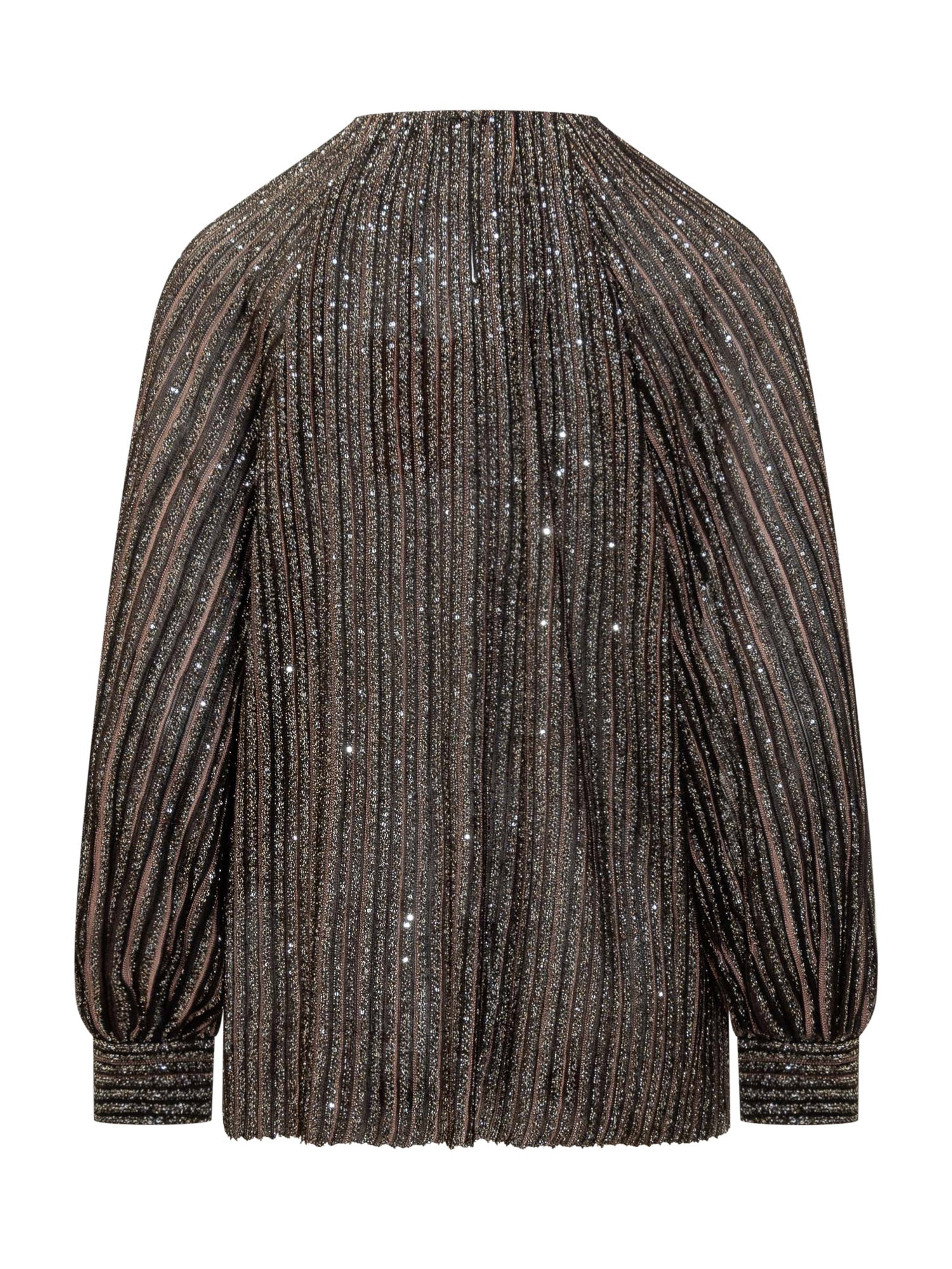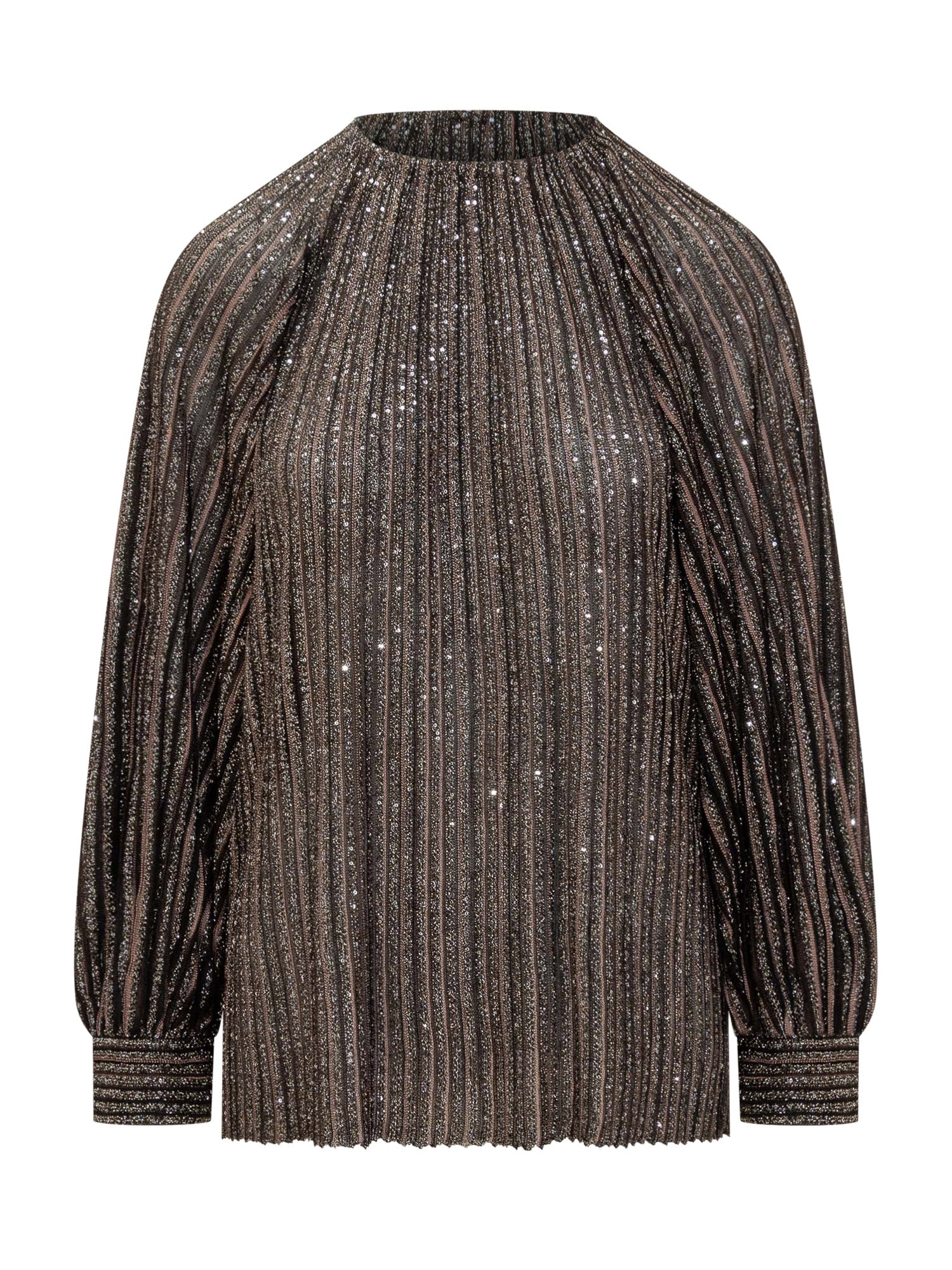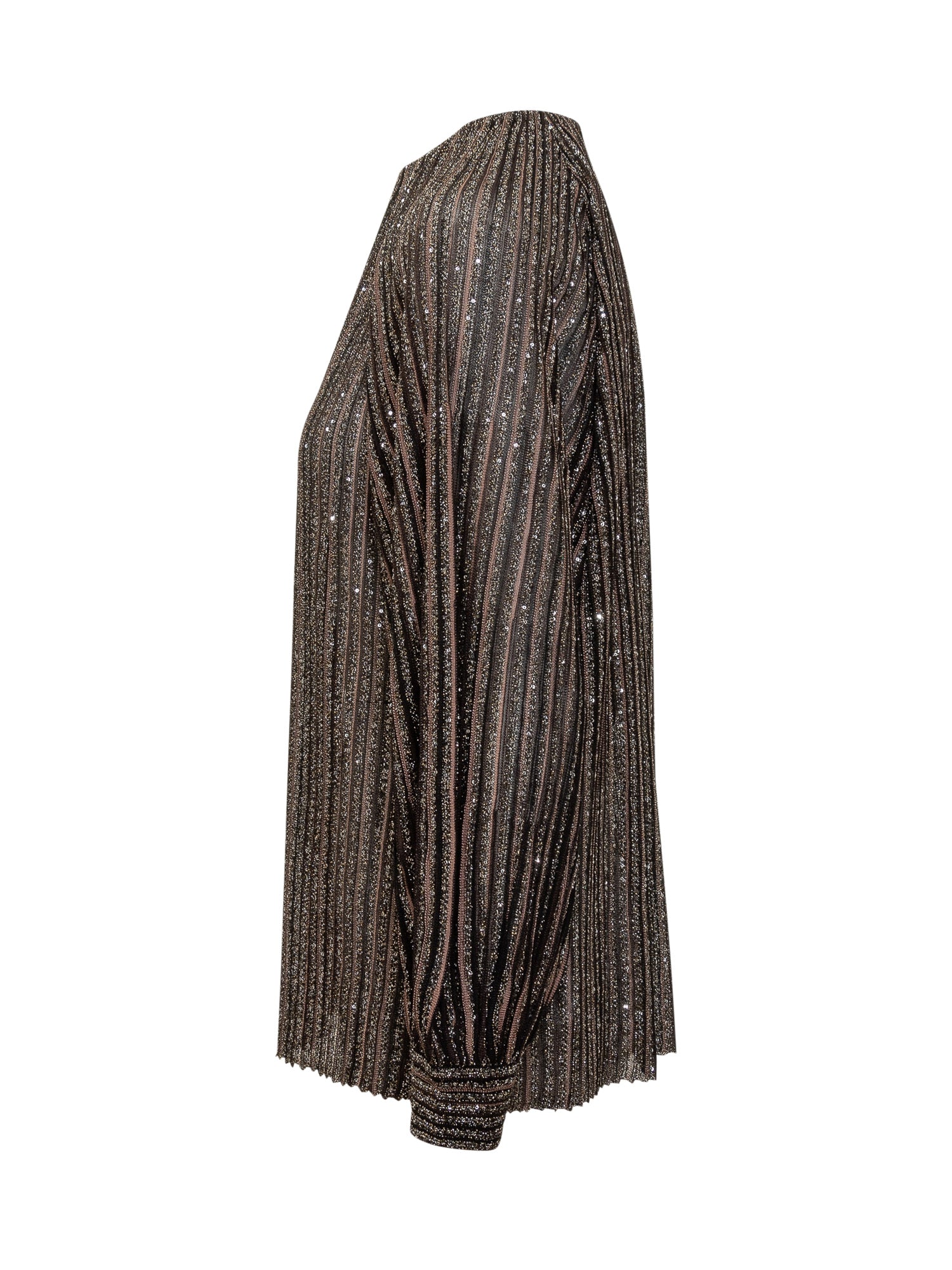 Missoni crewneck sweater in lurex with ribbed texture and glittery vertical stripes. Wide long sleeves with detailed cuffs.