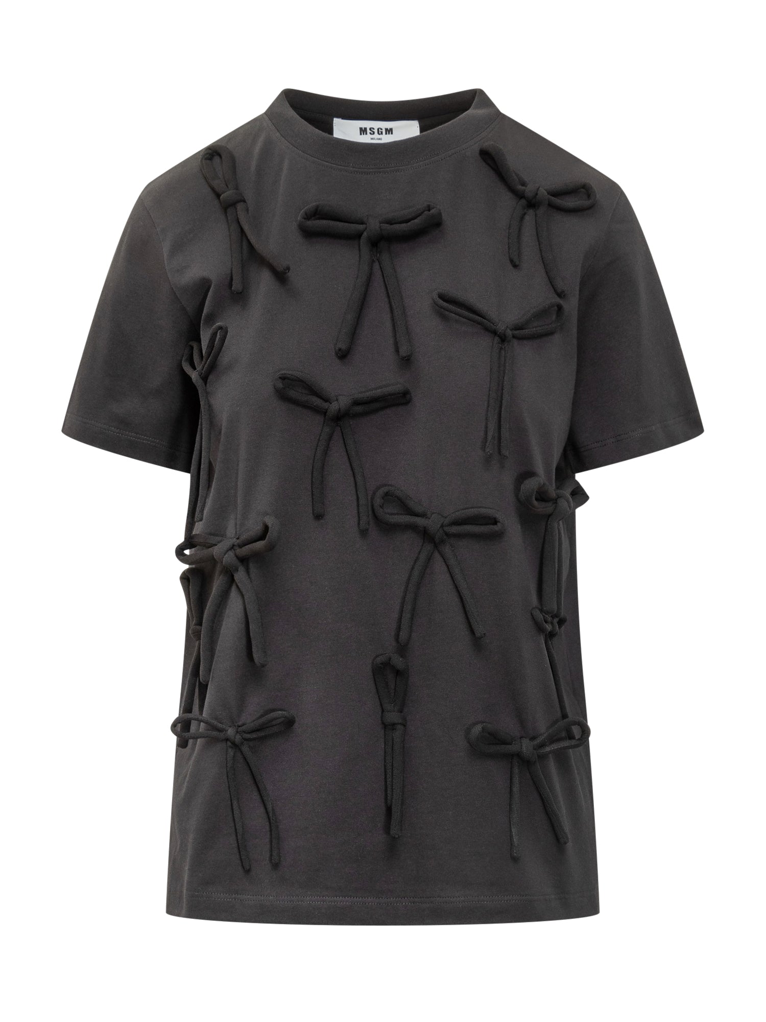 Black MSGM T-shirt with tone-on-tone applied bows.