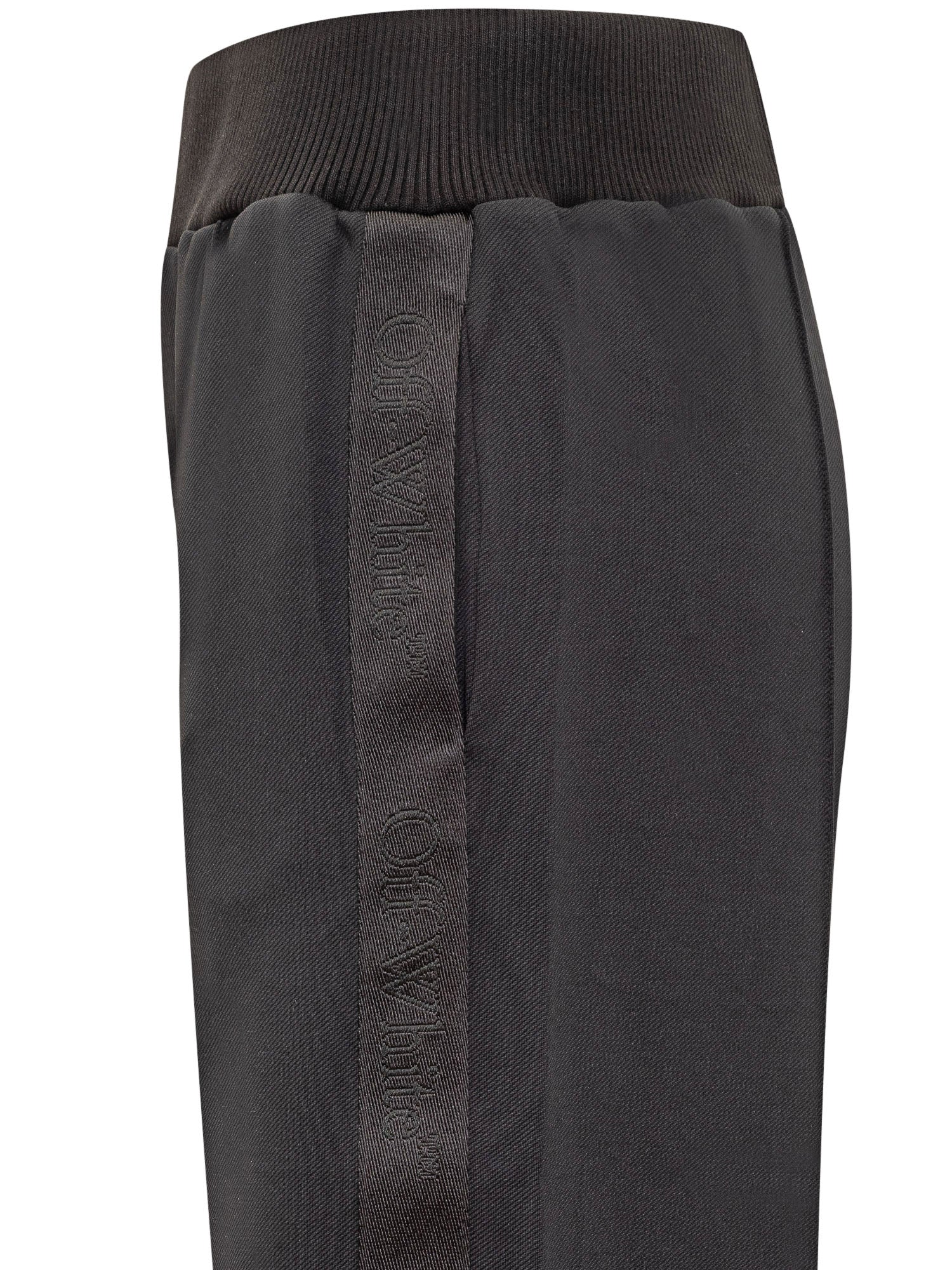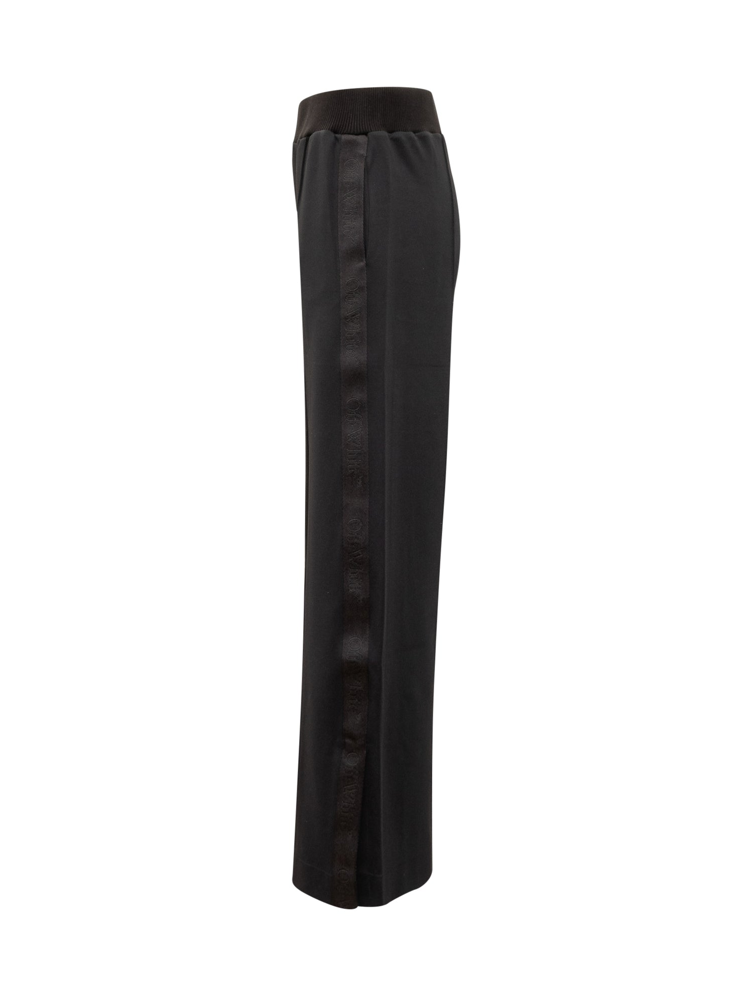 Pantaloni sportivi neri. Gamba ampia. Tasche ai lati. Tasca sul retro. Bande laterali con logo Off-White.