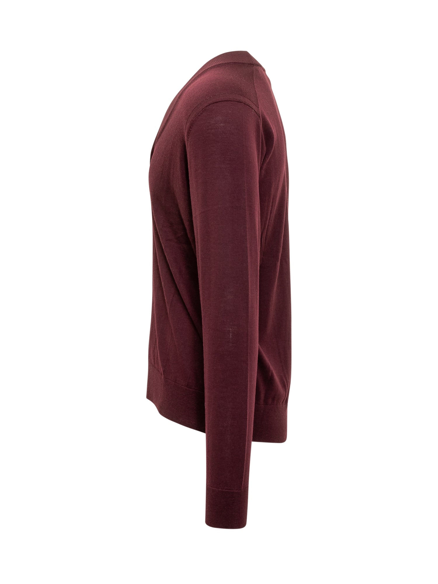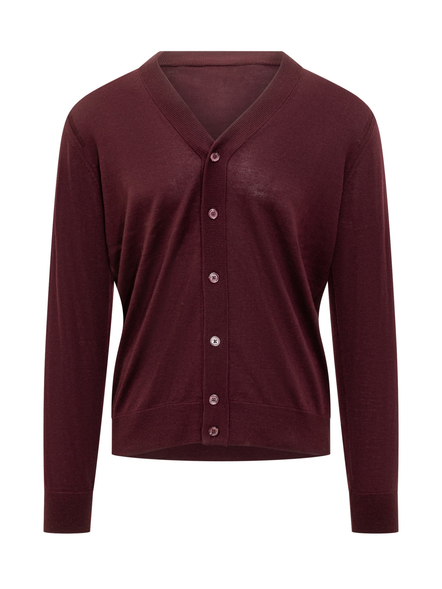 Paolo Pecora lightweight bordeaux wool cardigan with V-neck and button closure.